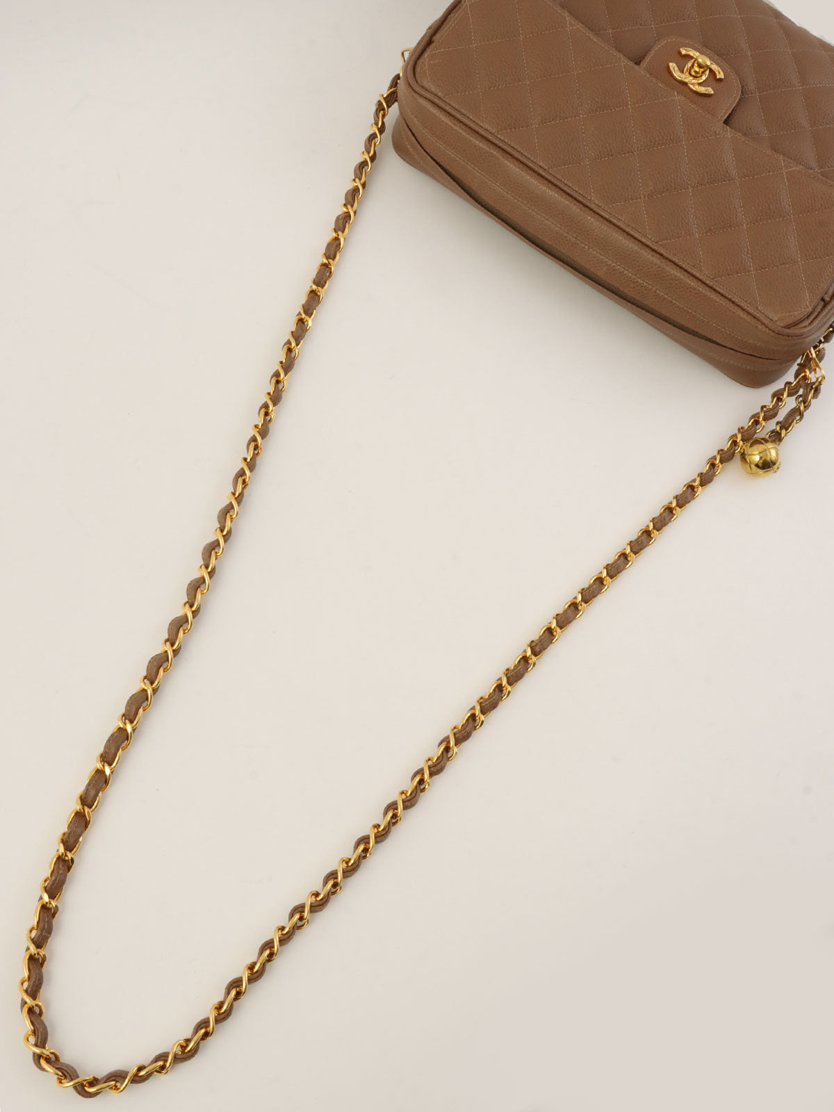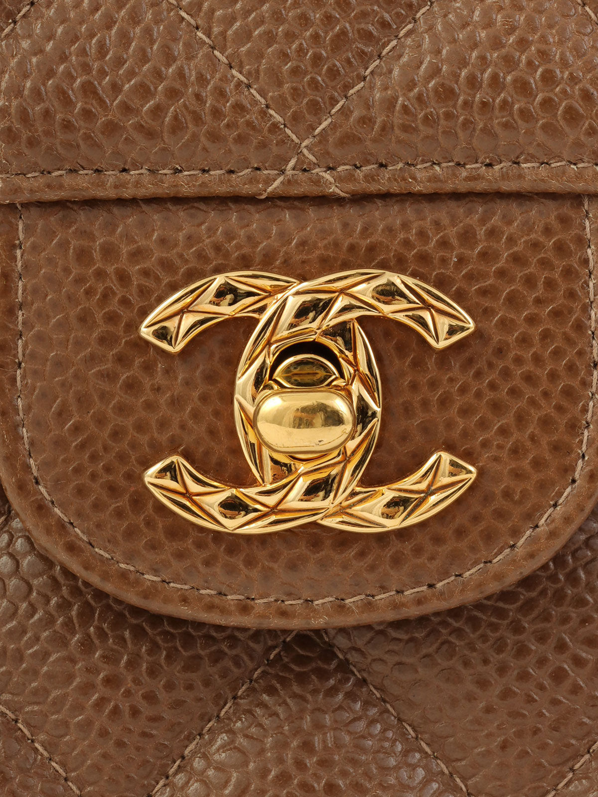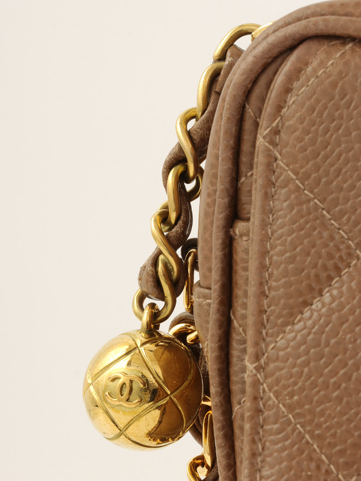 1995年頃製 キャビアスキンCCターンロックチェーンショルダーバッグ ブラウン