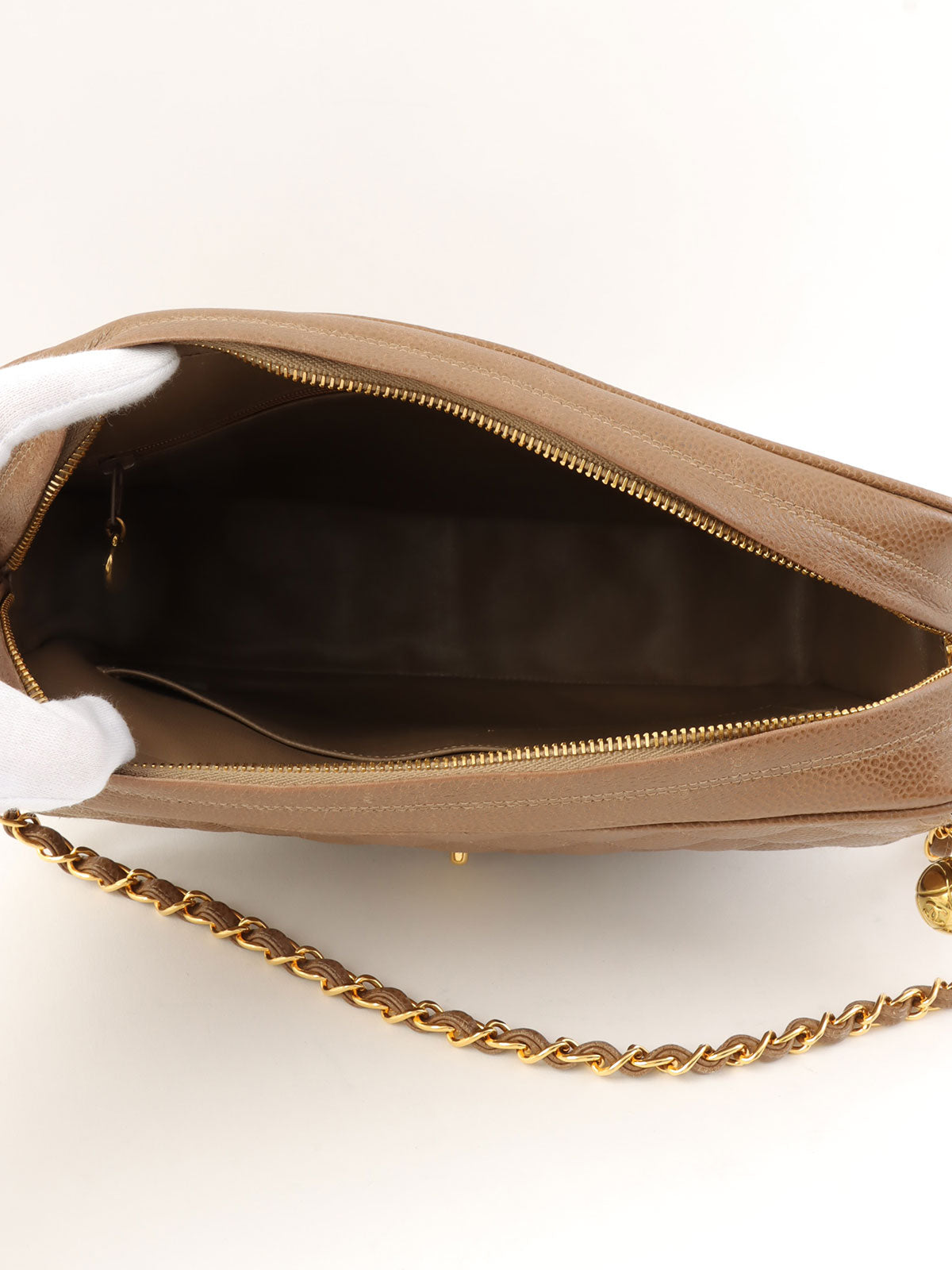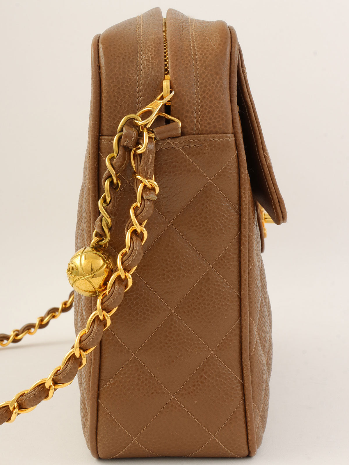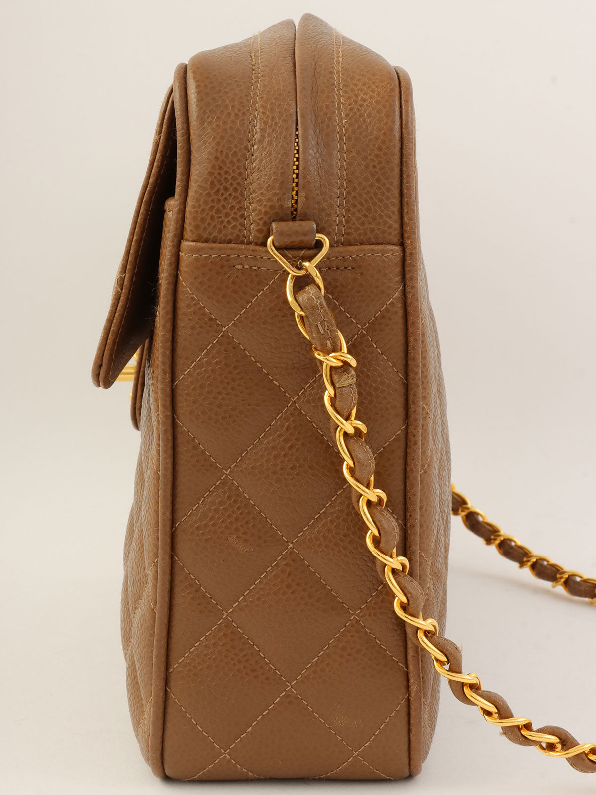 1995年頃製 キャビアスキンCCターンロックチェーンショルダーバッグ ブラウン