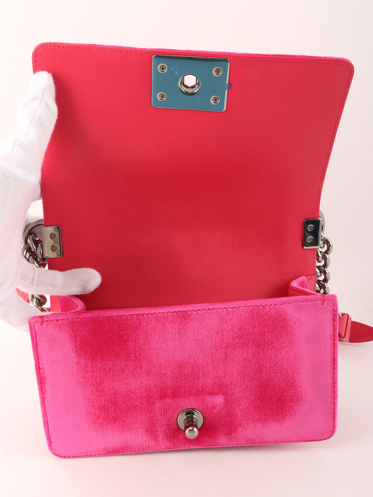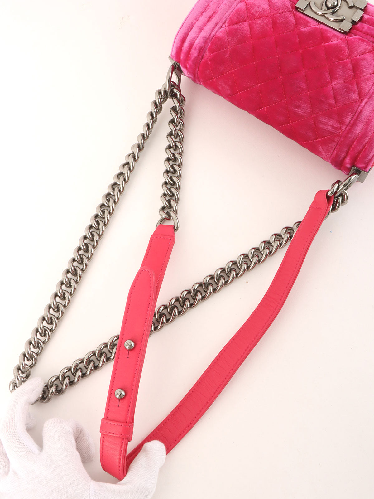2015年頃製 ベロアボーイシャネルチェーンショルダーバッグ ピンク