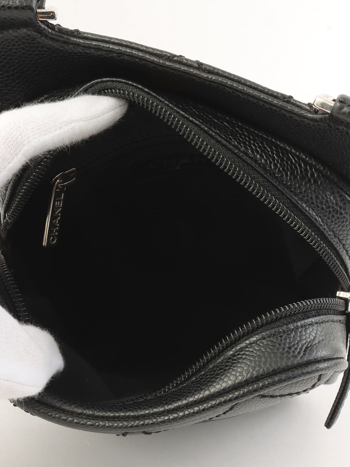 2005年頃製 キャビアスキンCCマークステッチショルダーバッグ ブラック