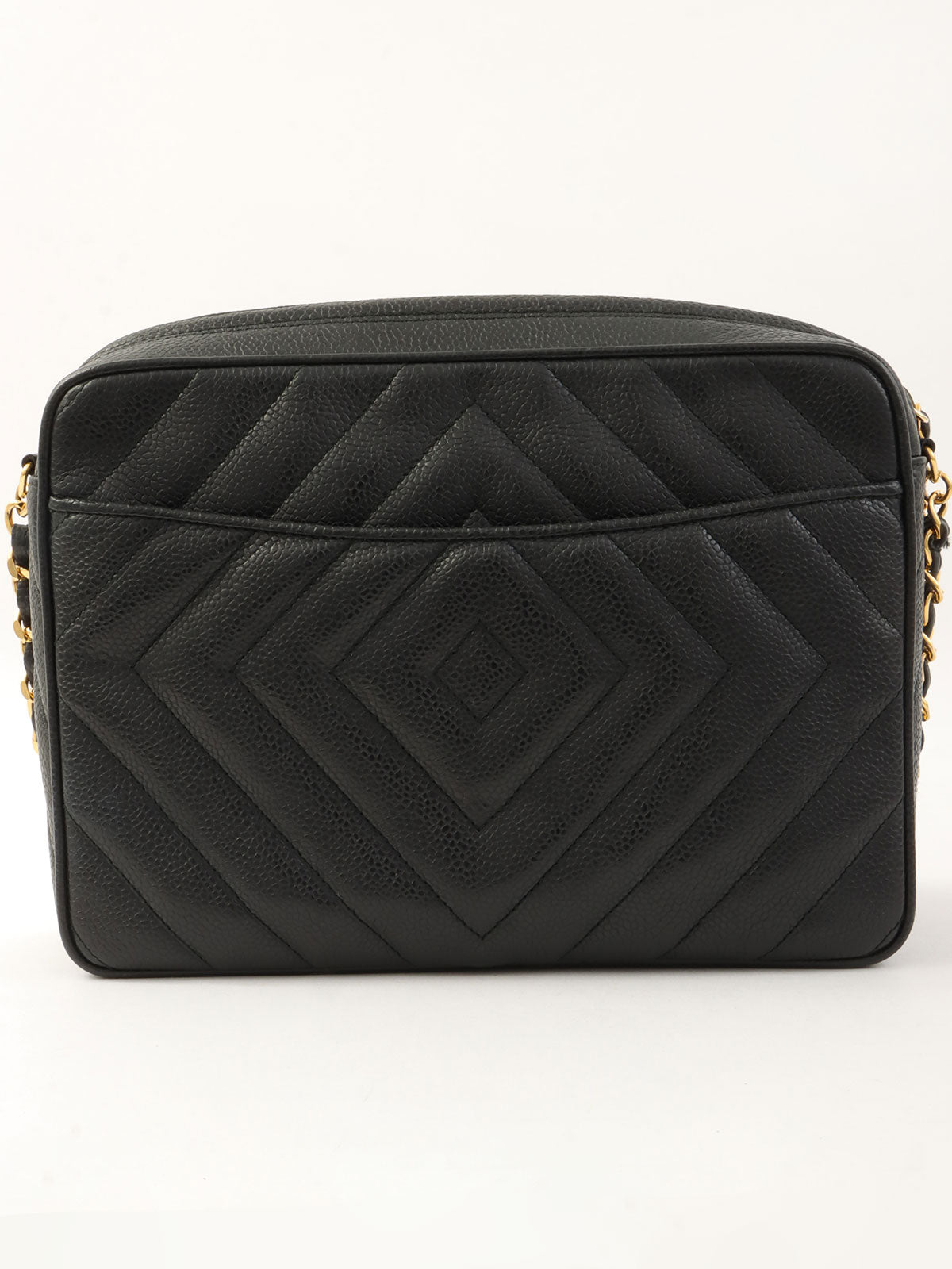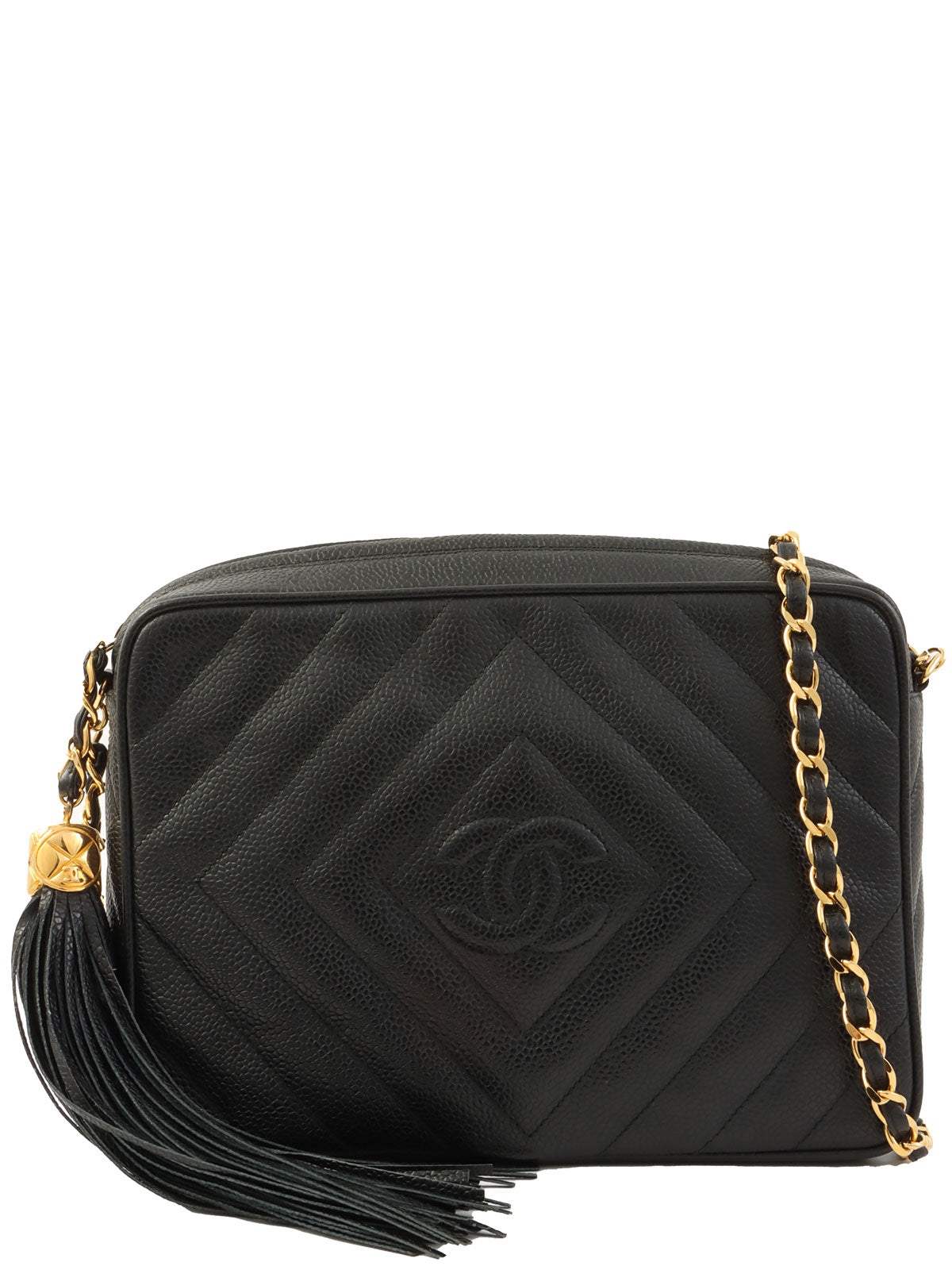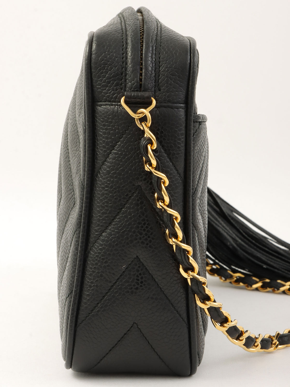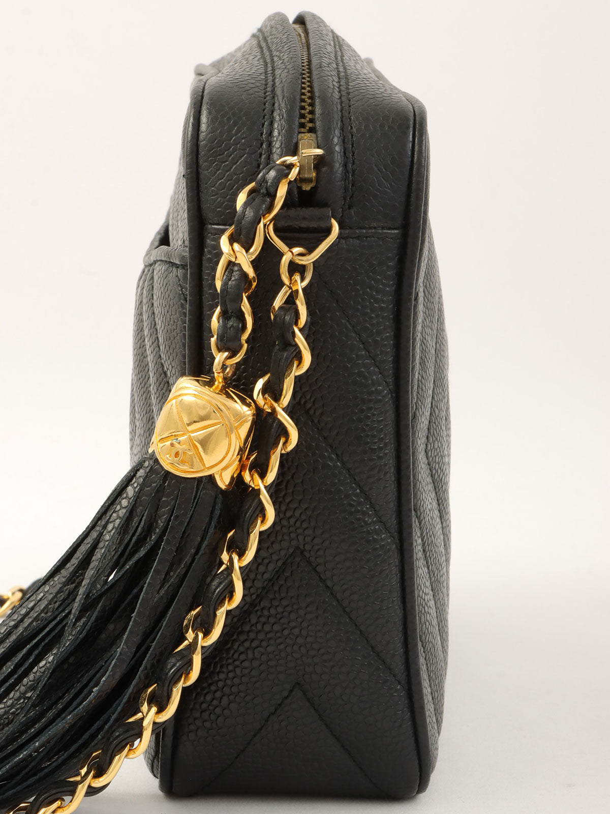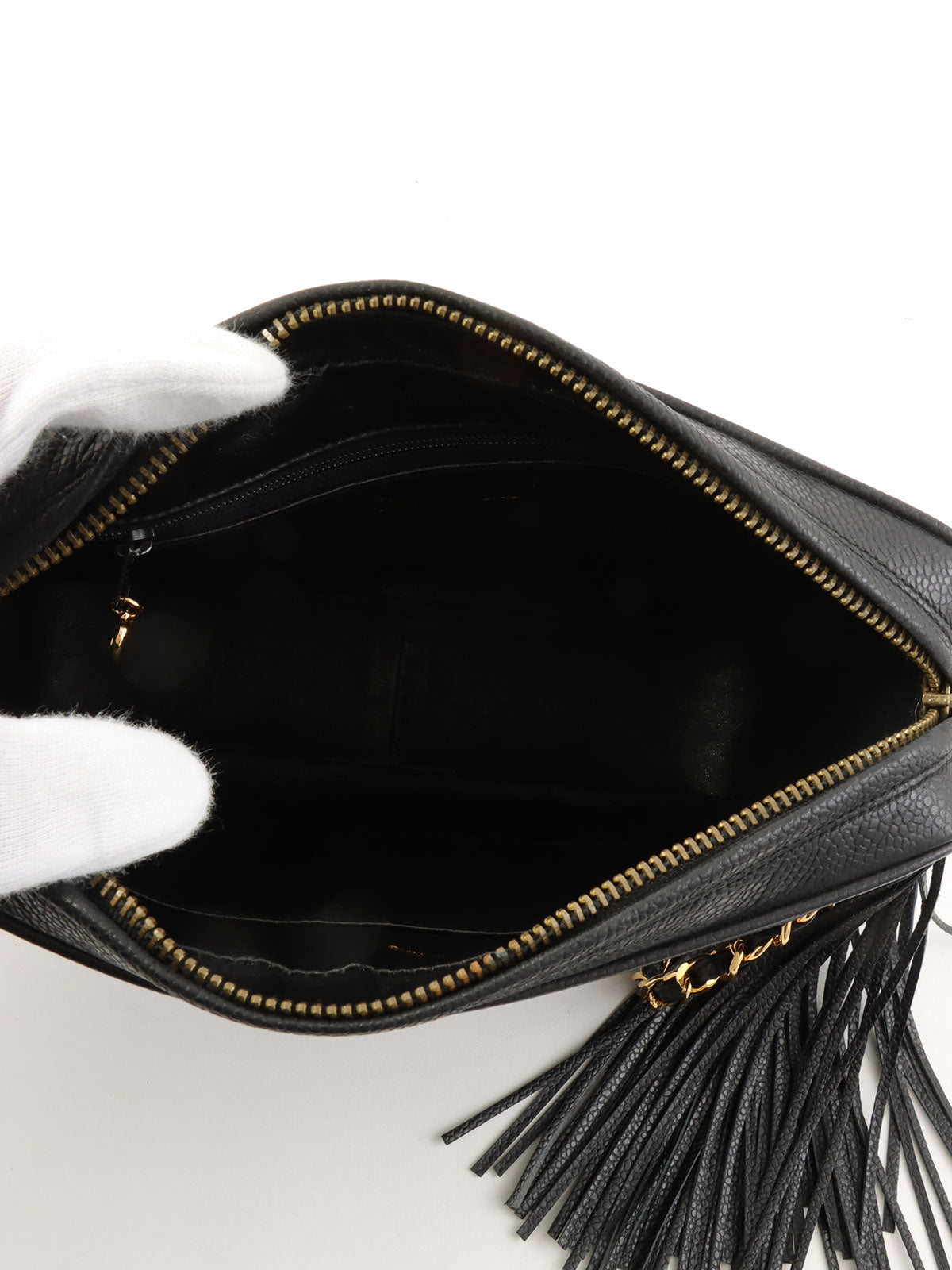 1992年頃製 キャビアスキンCCマークタッセルチェーンショルダーバッグ ブラック