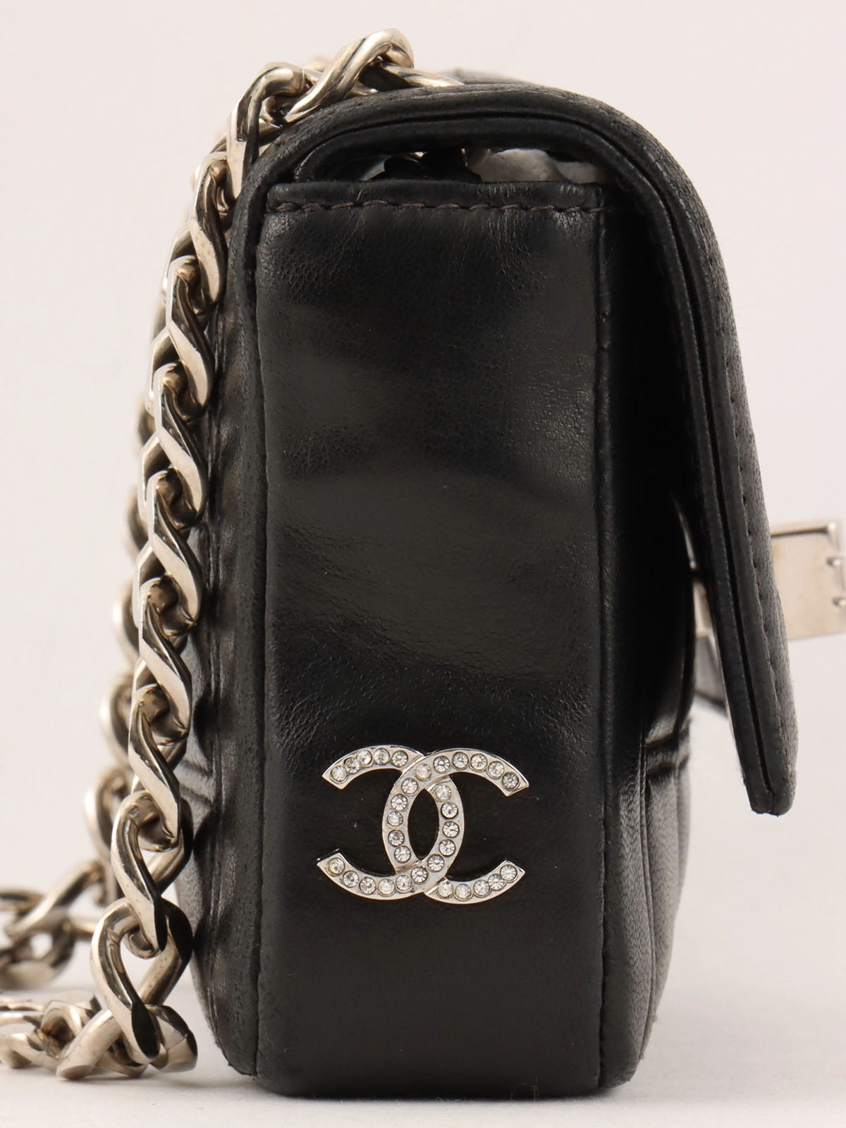 2000年頃製 チョコバー2.55ラインストーンCCマークミニチェーンバッグ ブラック