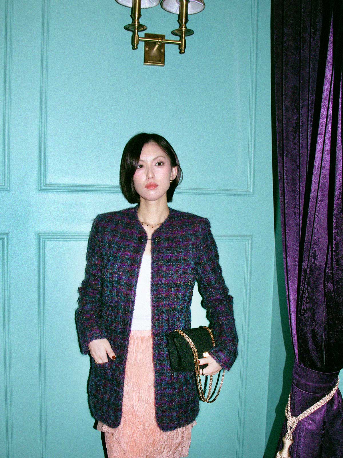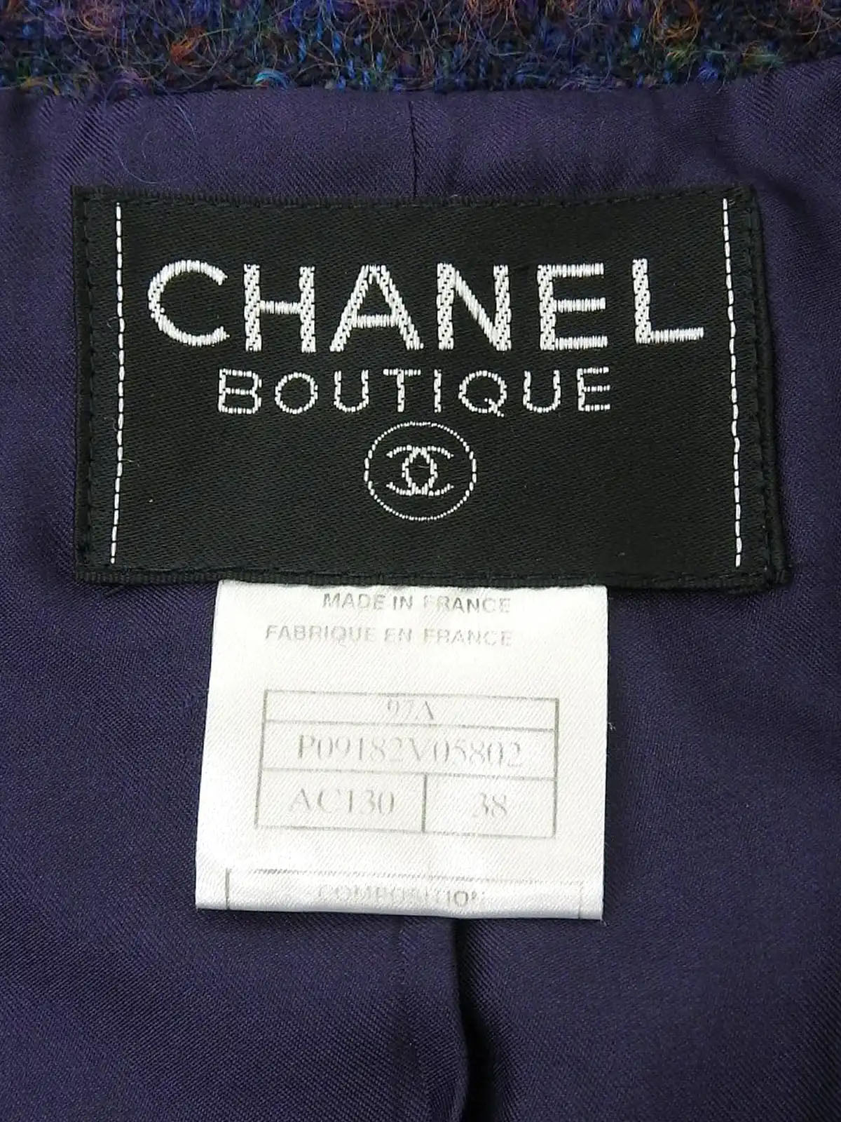1997年製 CCマークボタンツイードジャケット パープル/マルチ