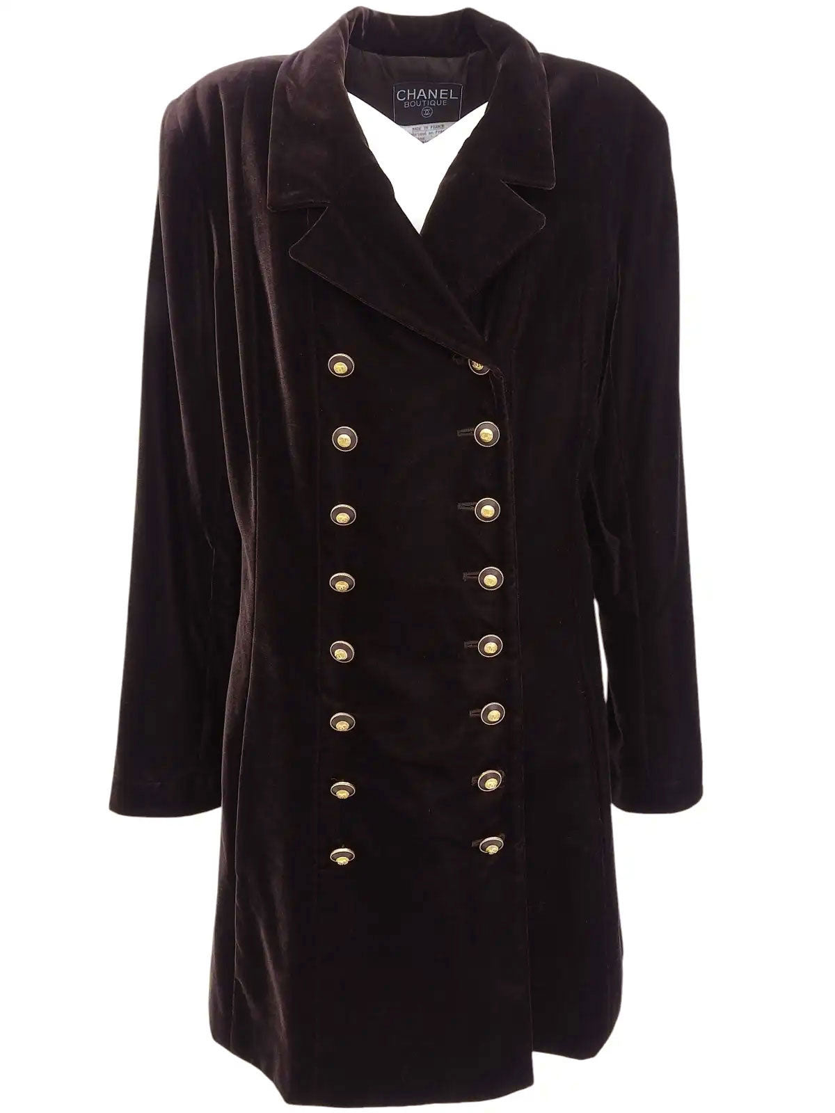 1993年製 ベルベットCCマークボタンダブルブレストコート ダークブラウン
