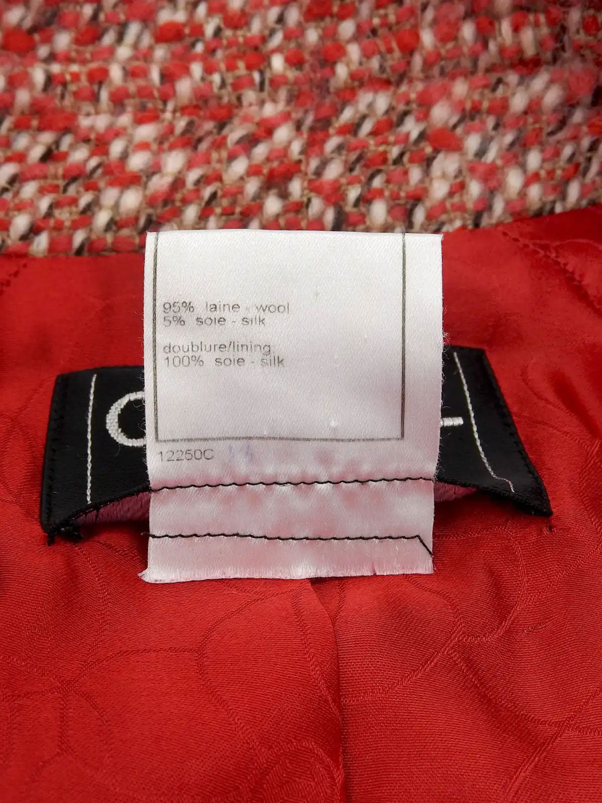 2001年製 ツイードCCマークボタンロングコート レッド/マルチ