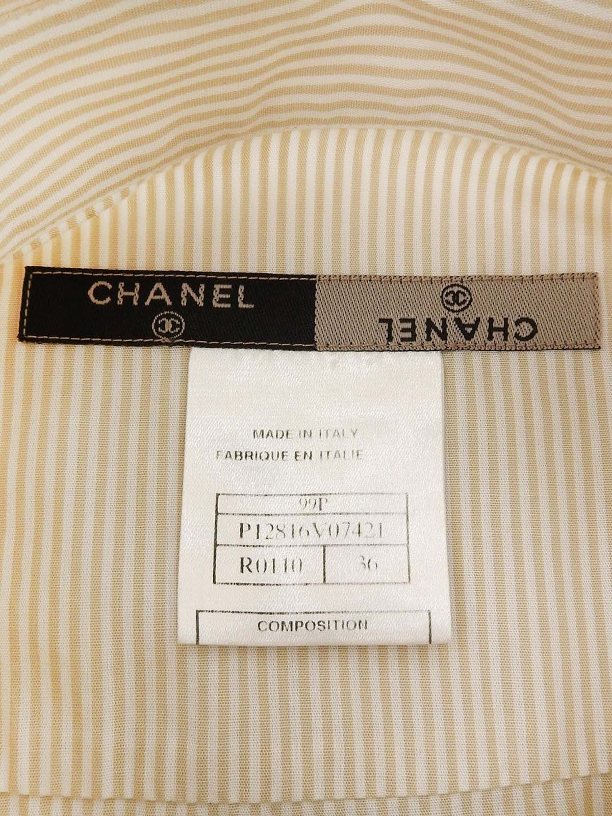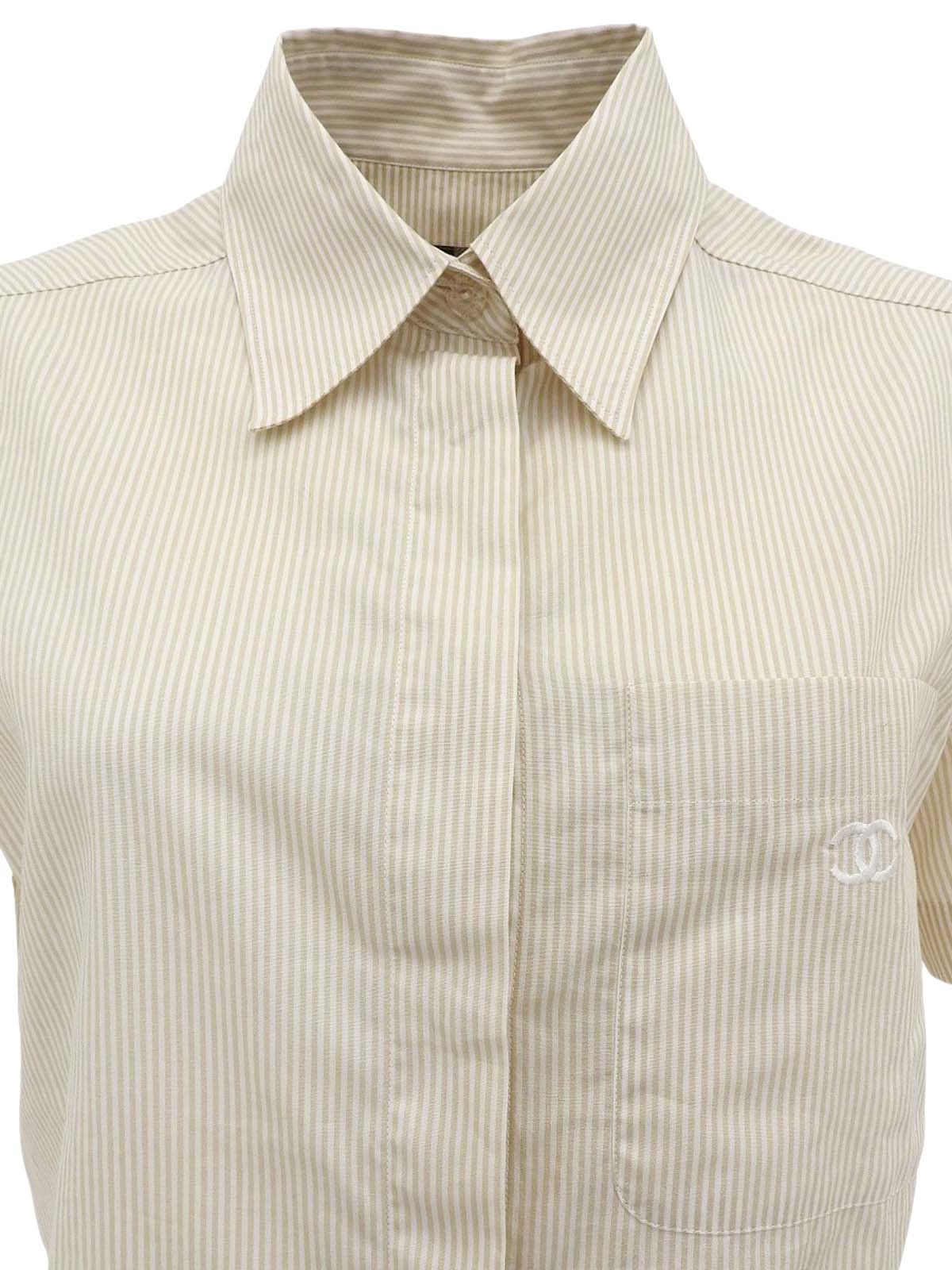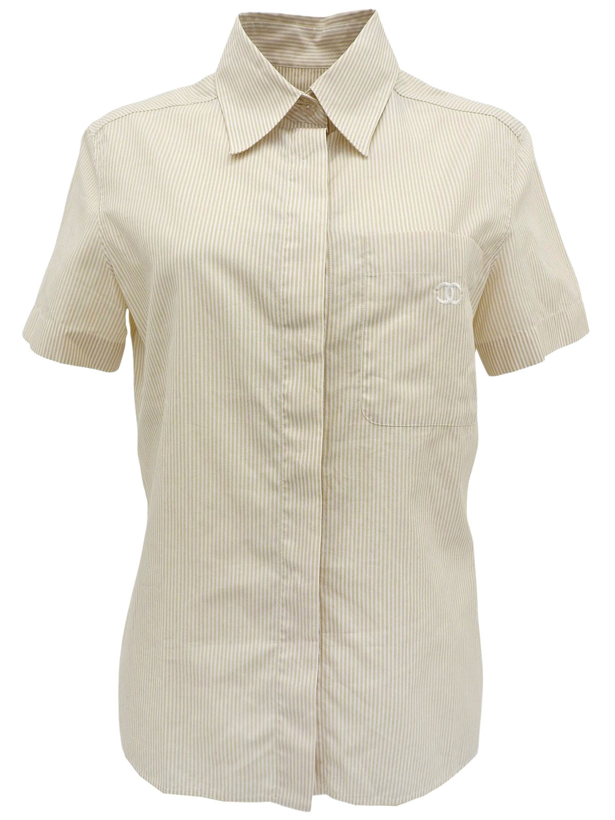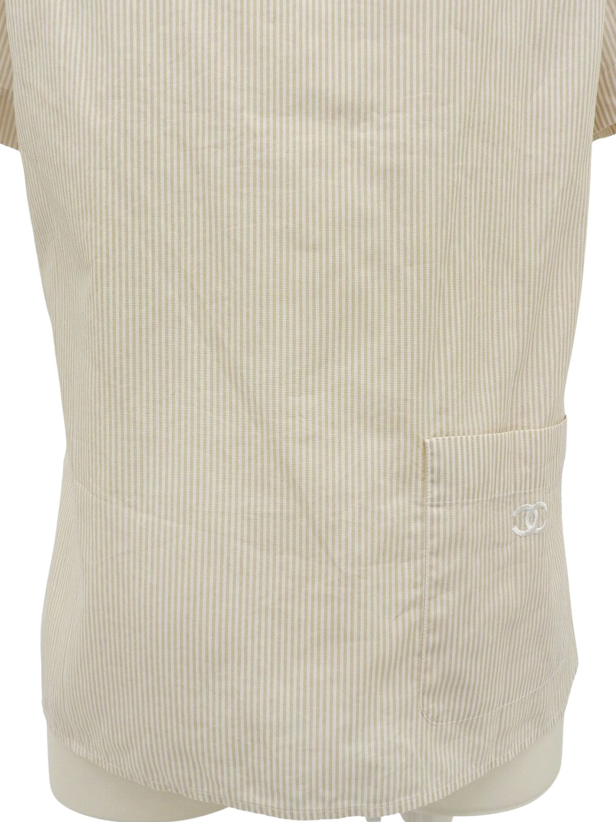 1999年製 ストライプパターンCCマーク刺繍半袖シャツ ベージュ/ホワイト