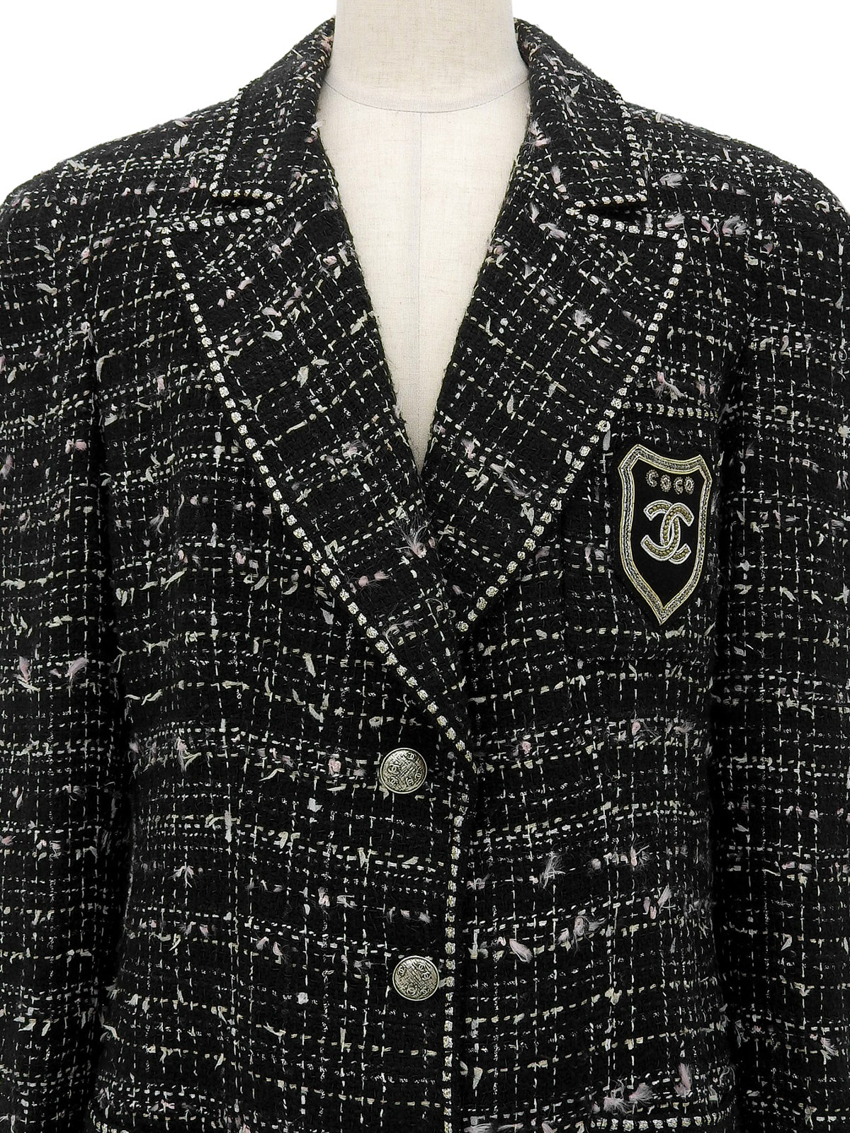 2005年製 ツイードCCマークエンブレムワッペンジャケット ブラック/マルチ