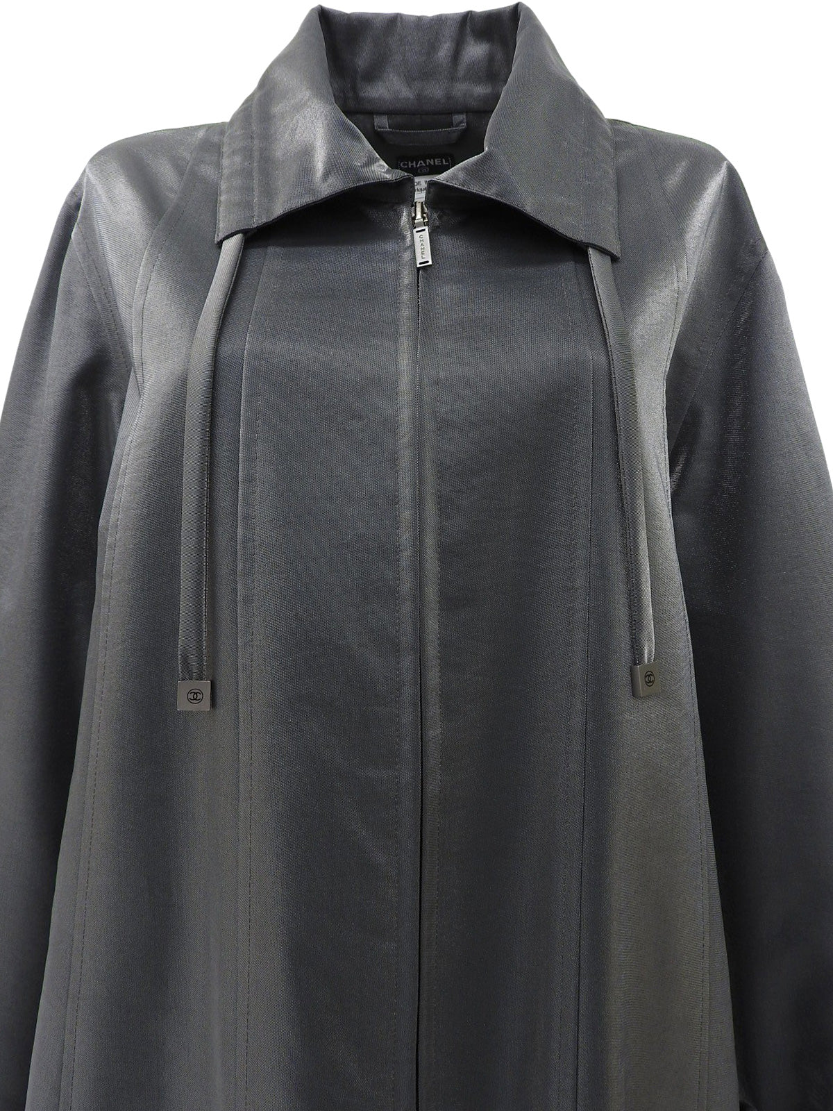 1999年製 ロゴジップアップロングコート メタリックグレー
