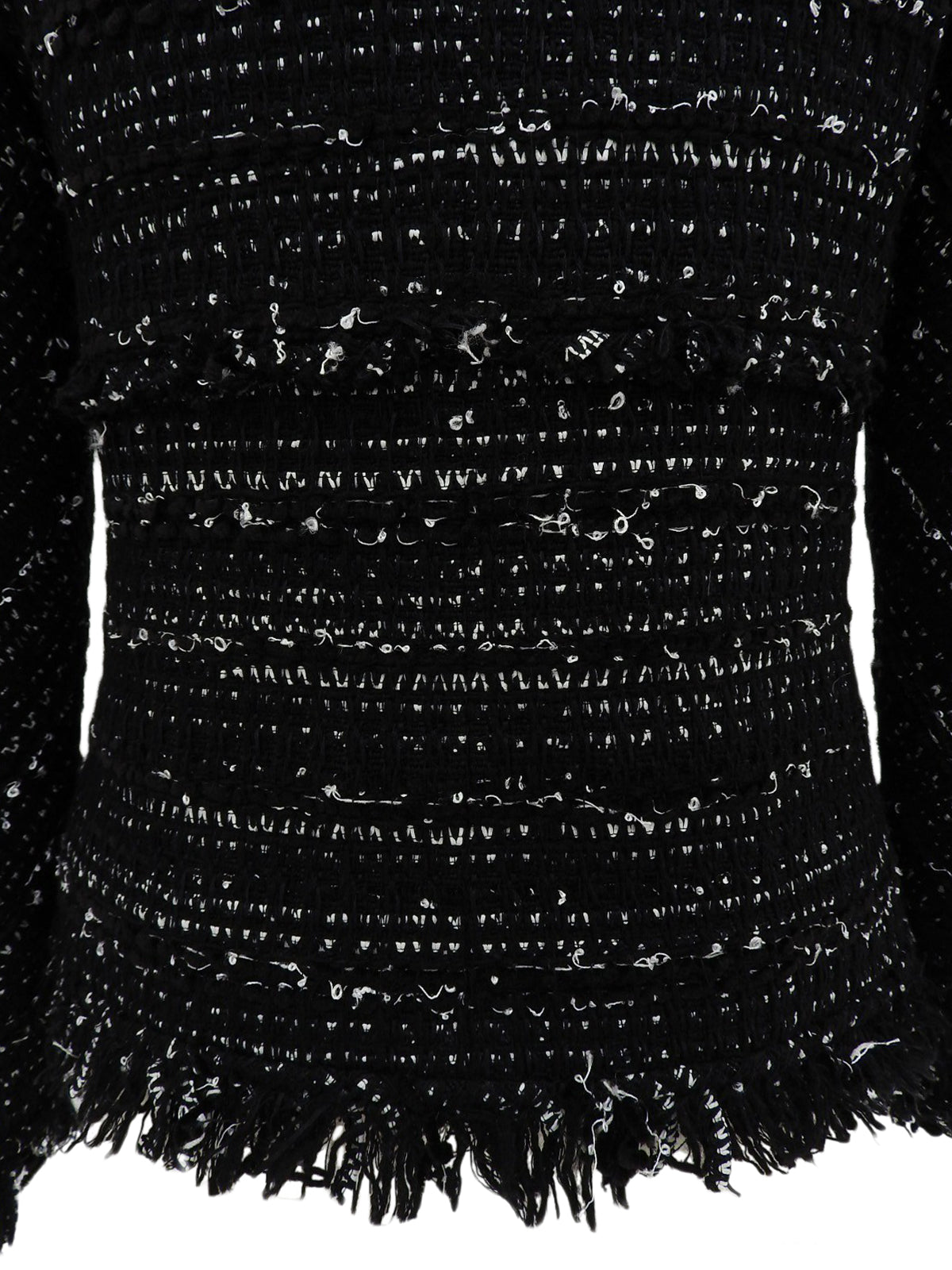 ツイードCCマークボタンノーカラージャケット ブラック/ホワイト