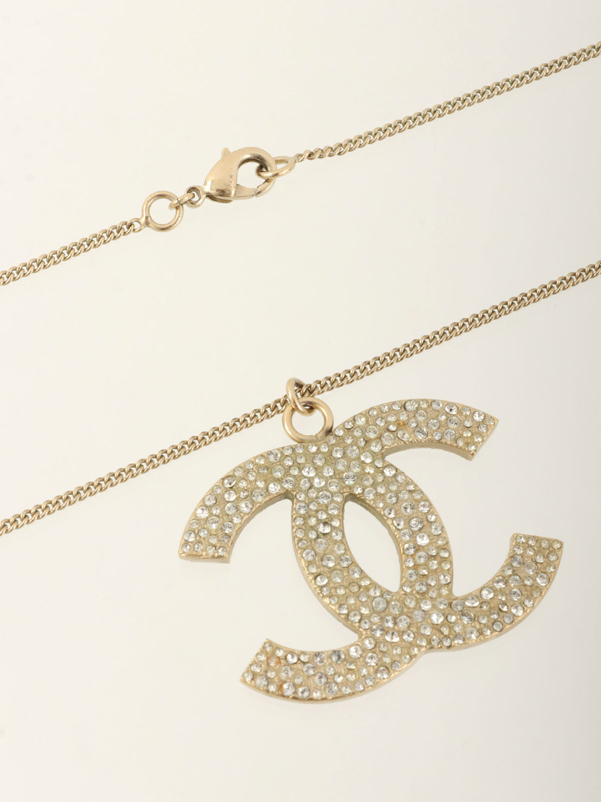 2008年製 ラインストーンCCマークプレートネックレス ゴールド