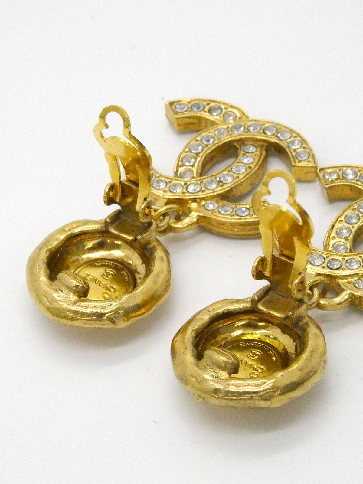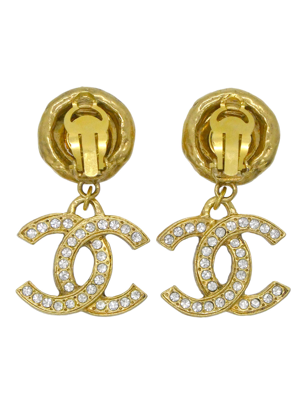 ラインストーンCCマークスウィングイヤリング ゴールド