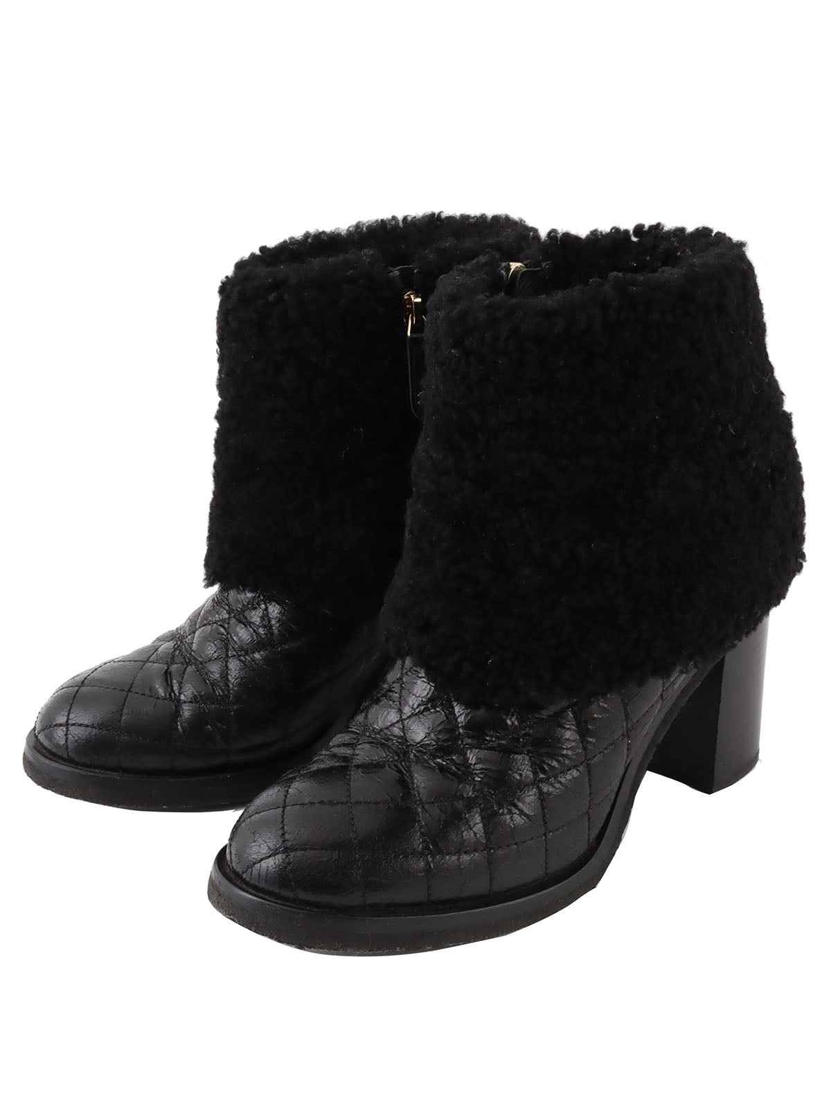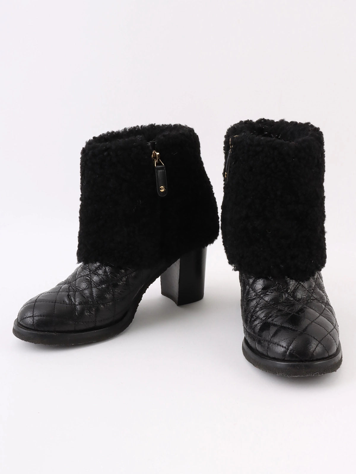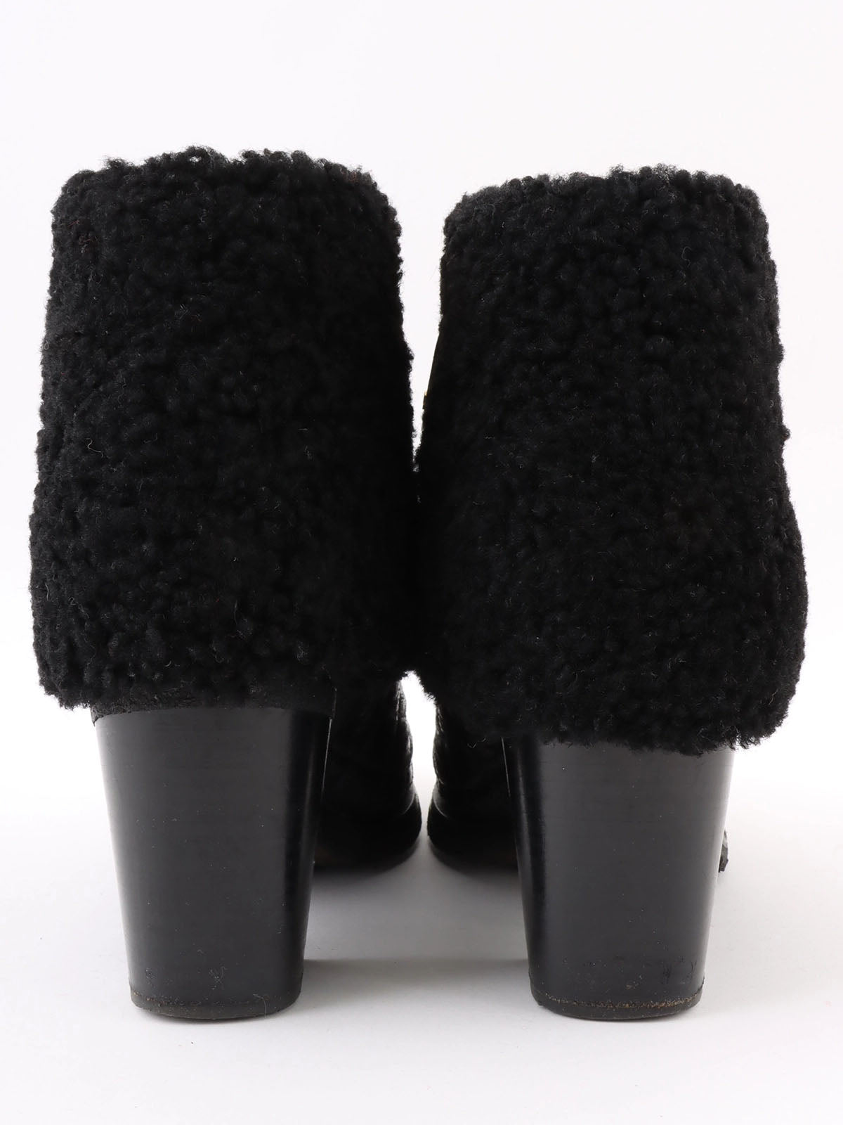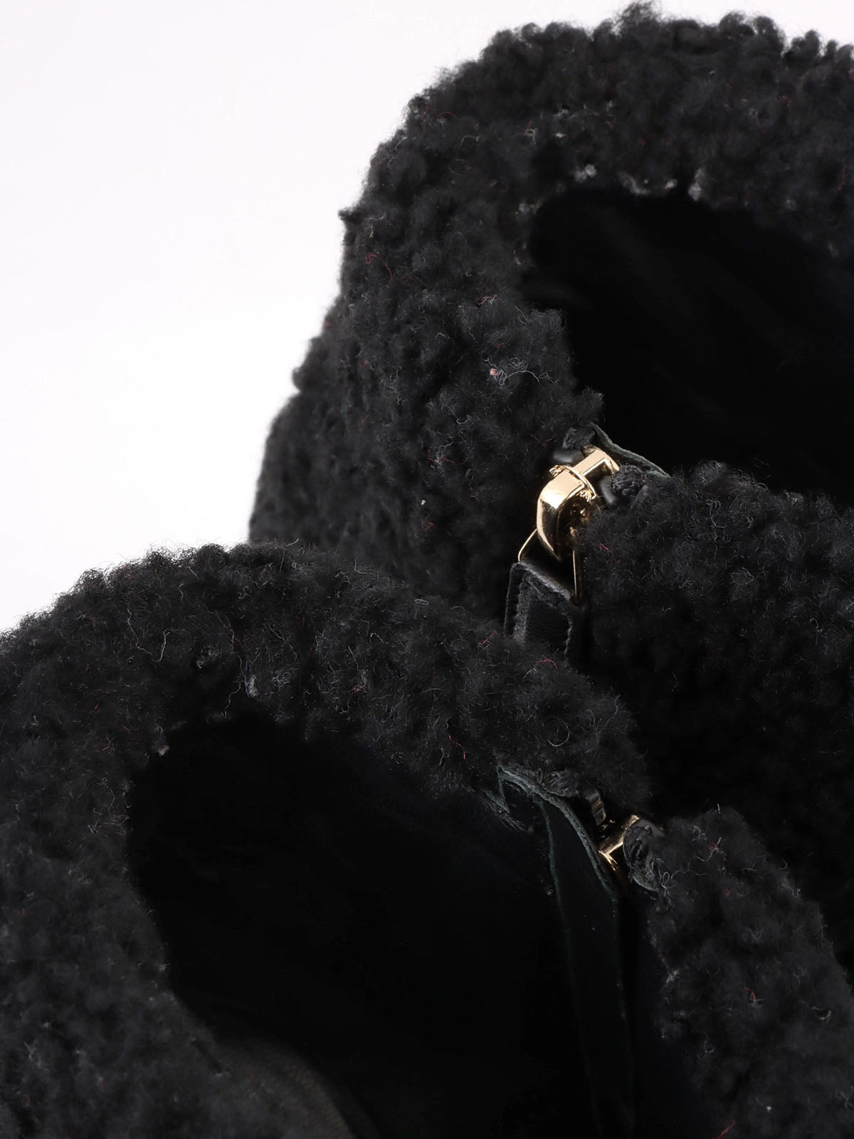 ムートンレザーコンビCCマークジップアップショートブーツ ブラック