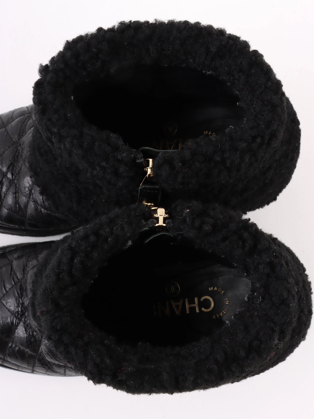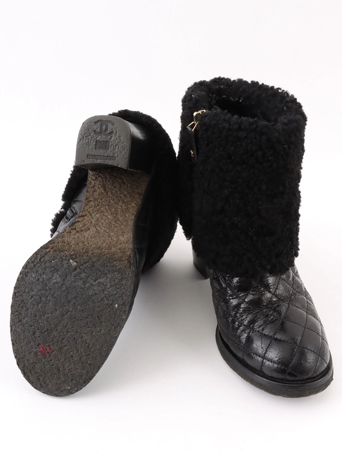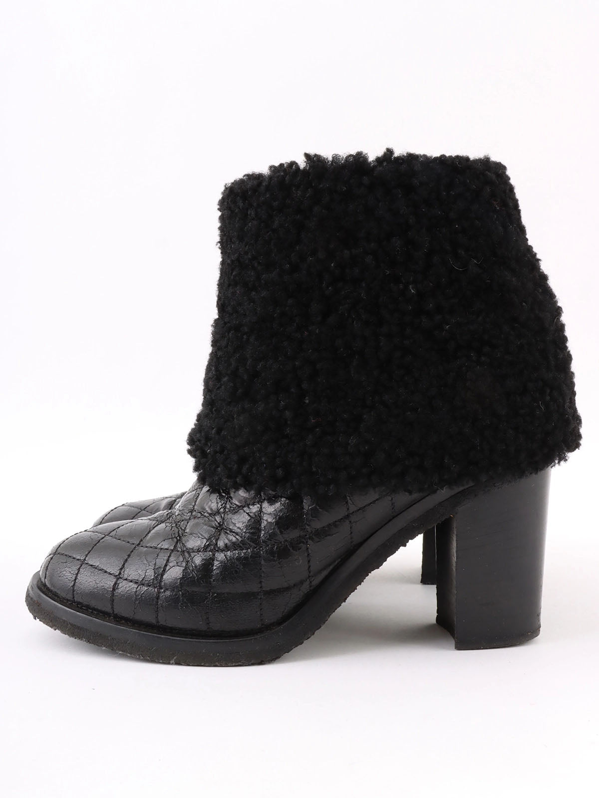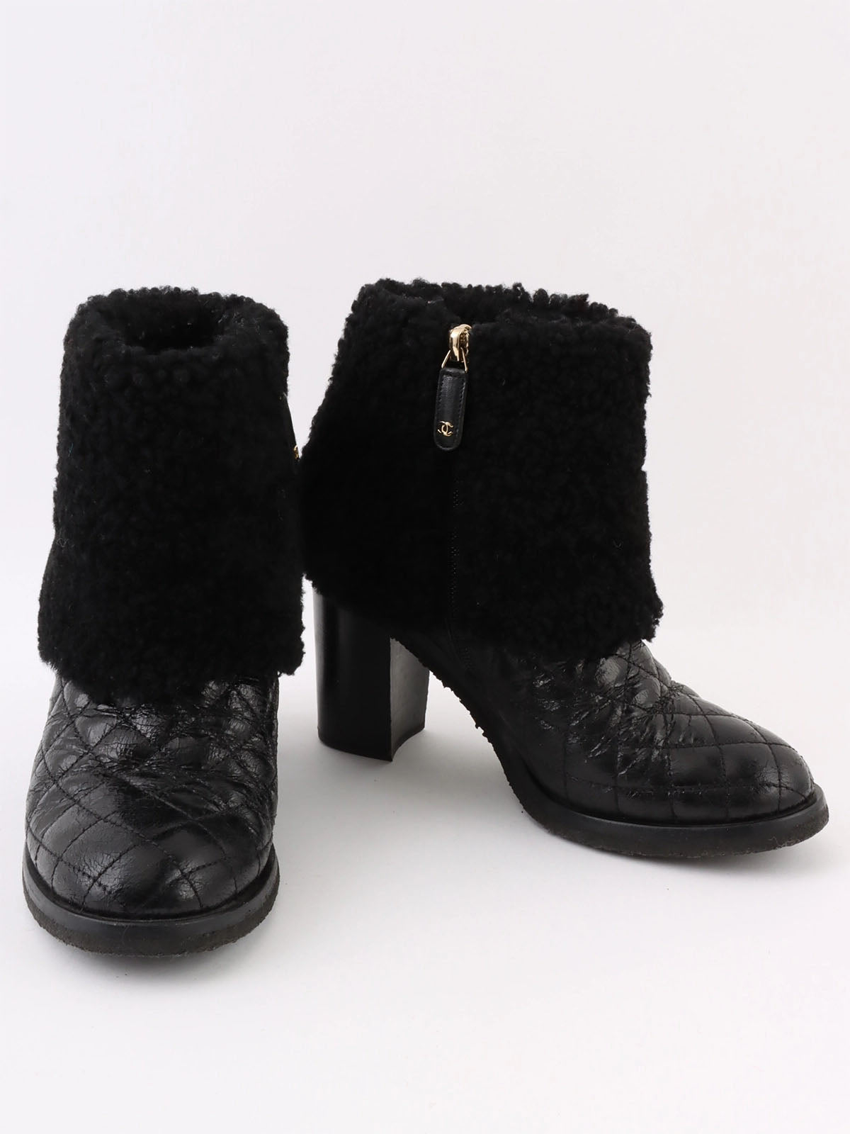 ムートンレザーコンビCCマークジップアップショートブーツ ブラック