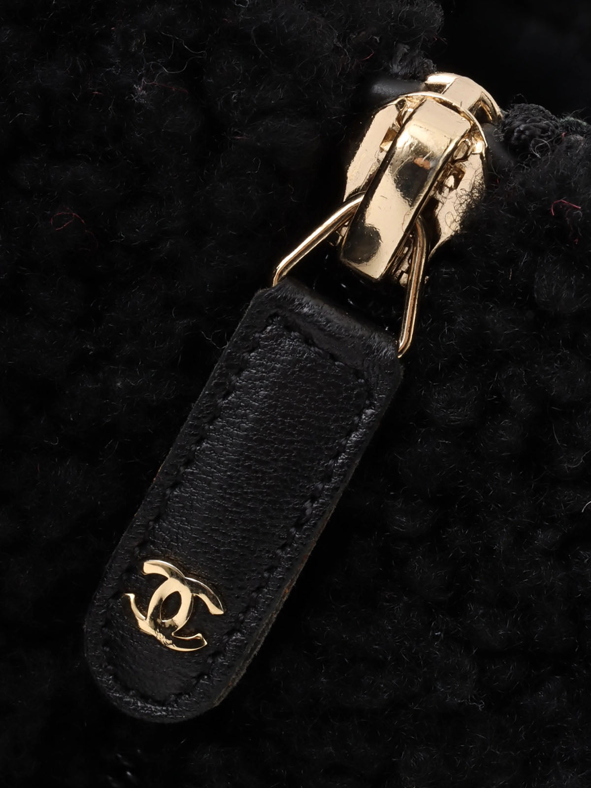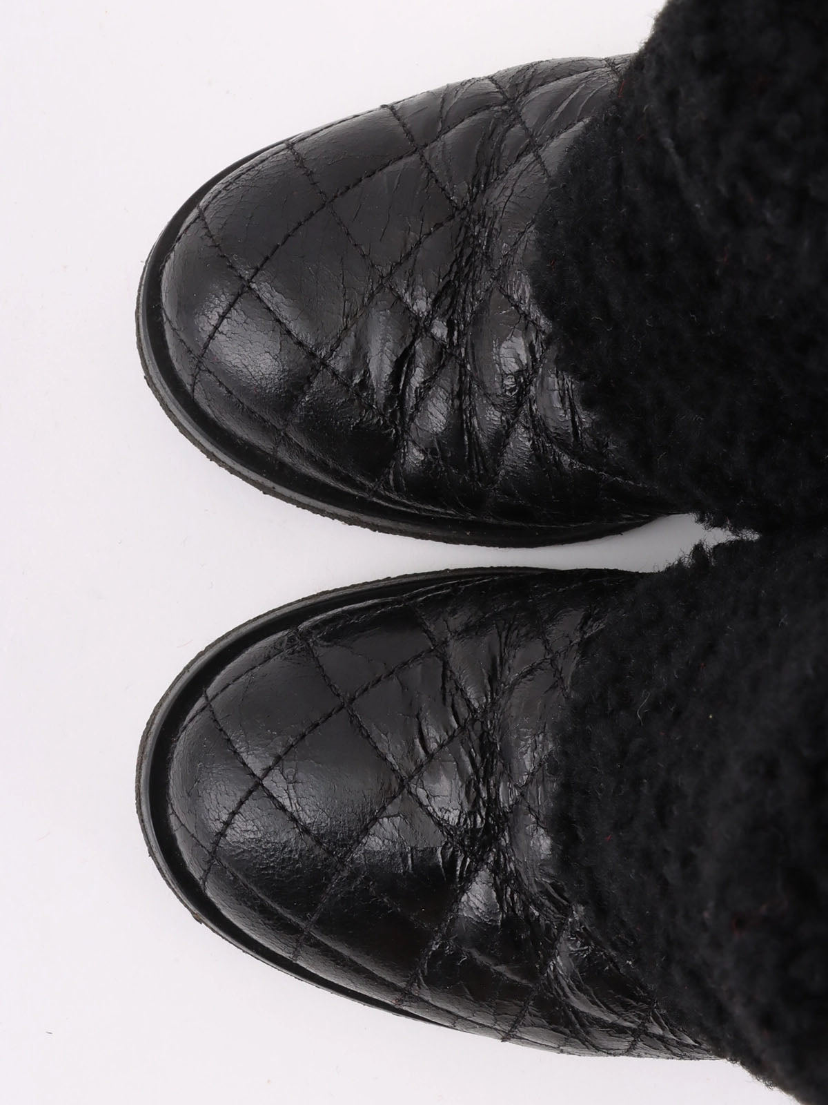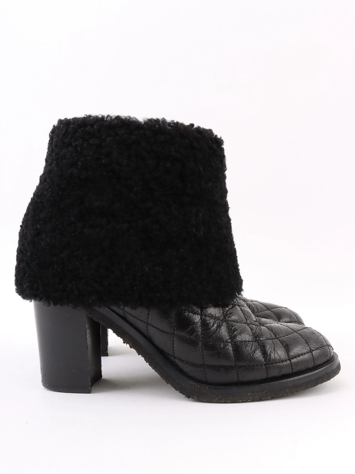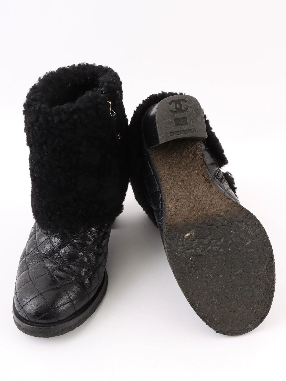 ムートンレザーコンビCCマークジップアップショートブーツ ブラック