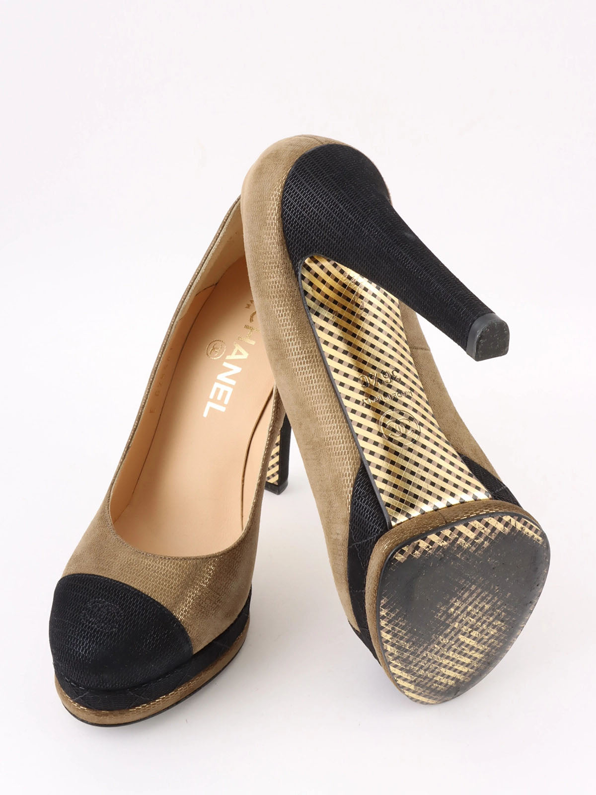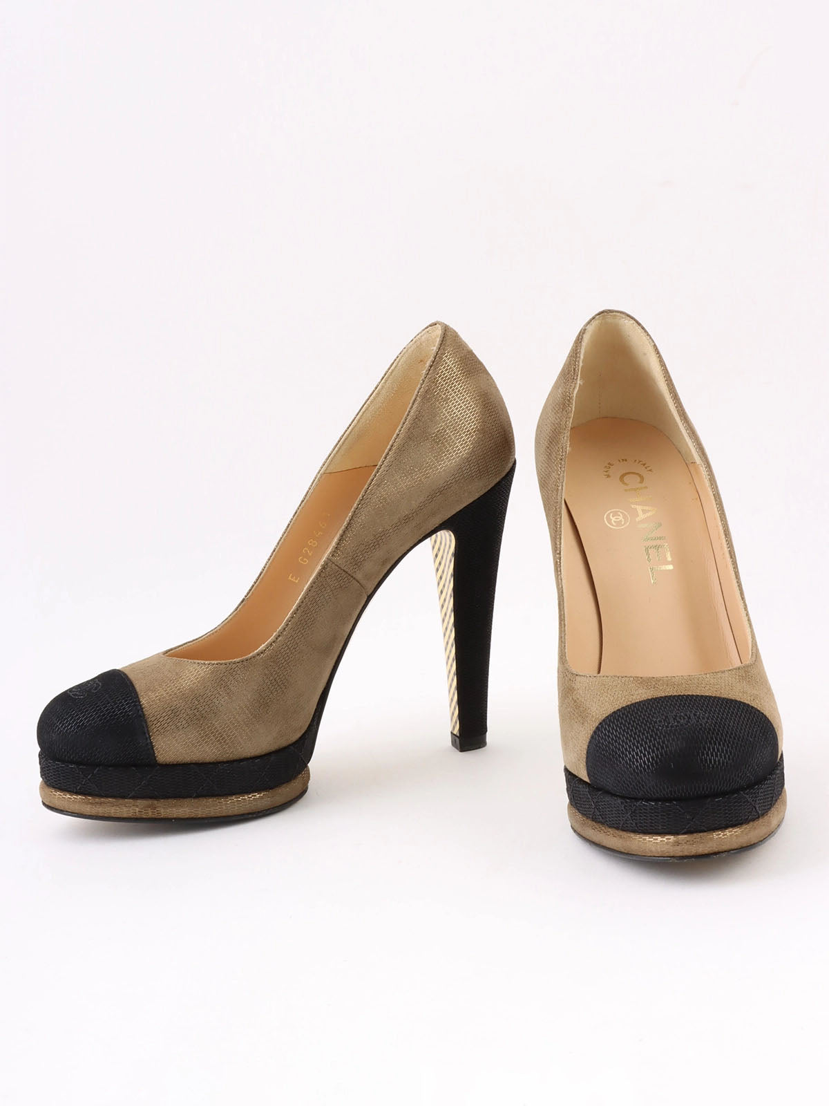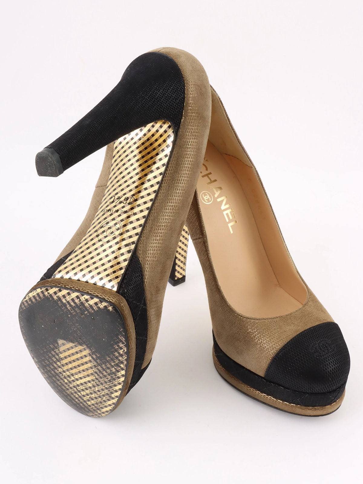 バイカラーCCマークステッチパンプス ブロンズ/ブラック