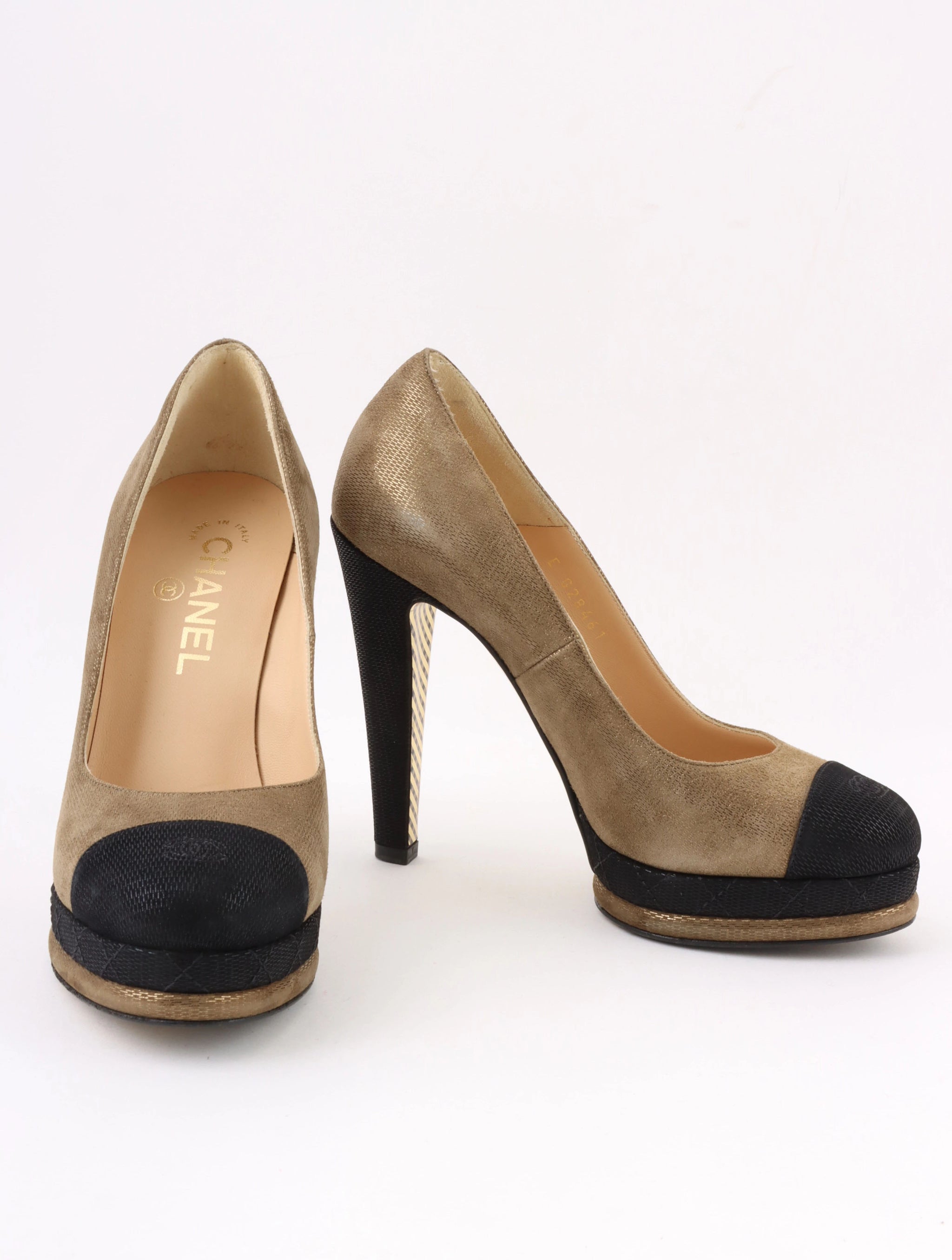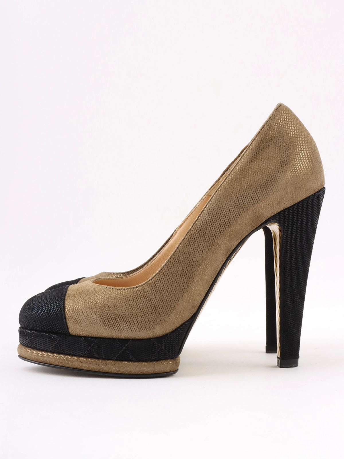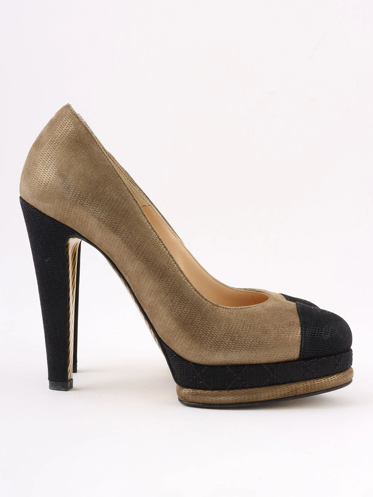バイカラーCCマークステッチパンプス ブロンズ/ブラック