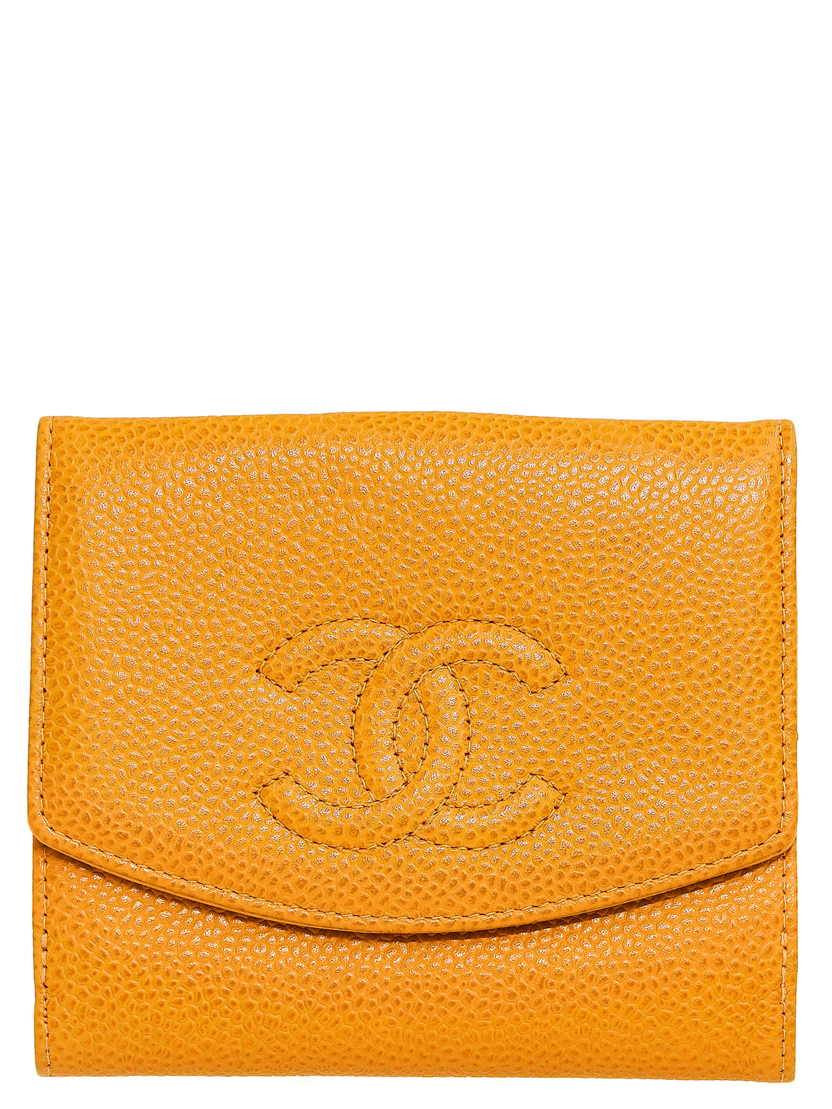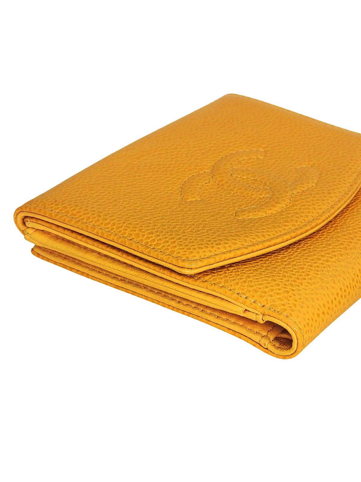 2000年頃製 キャビアスキンCCマークステッチウォレット マスタード
