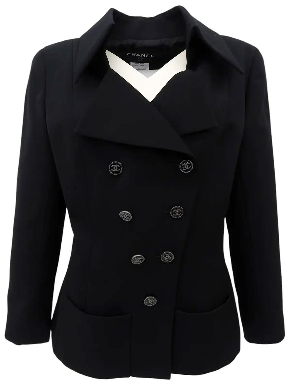 2001年製 ウールCCマークボタンダブルブレストジャケット ブラック