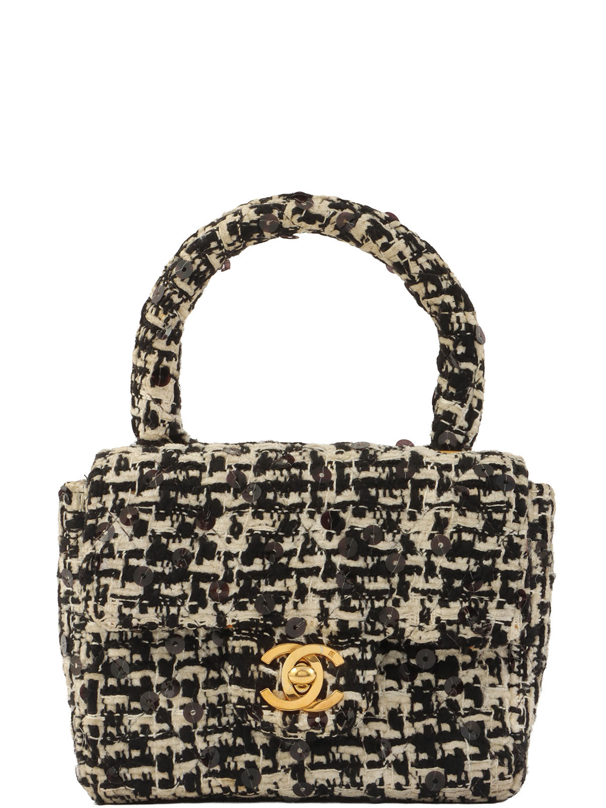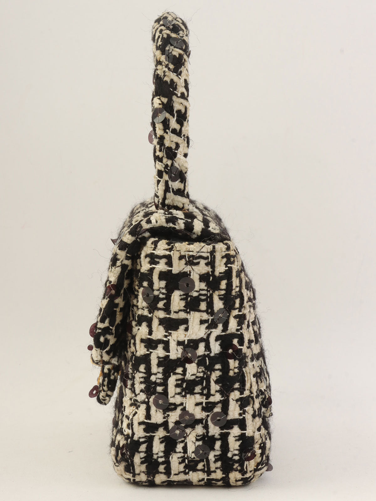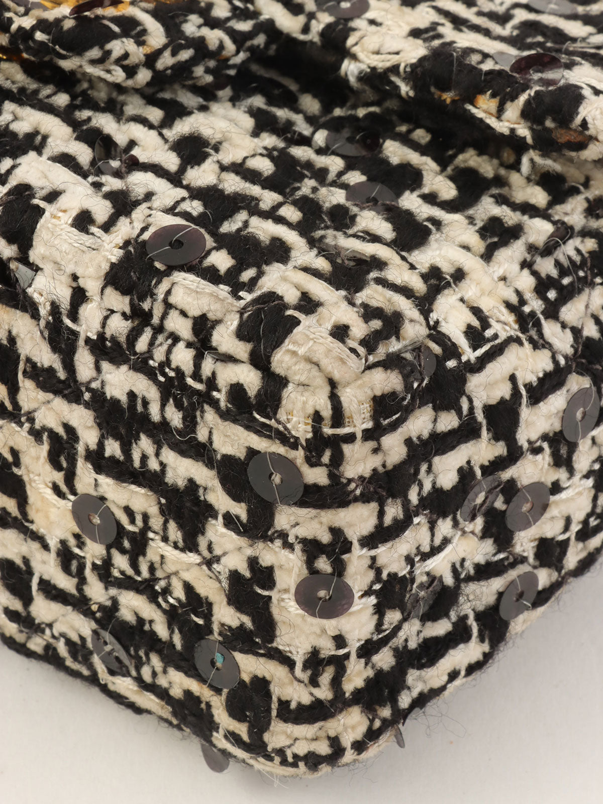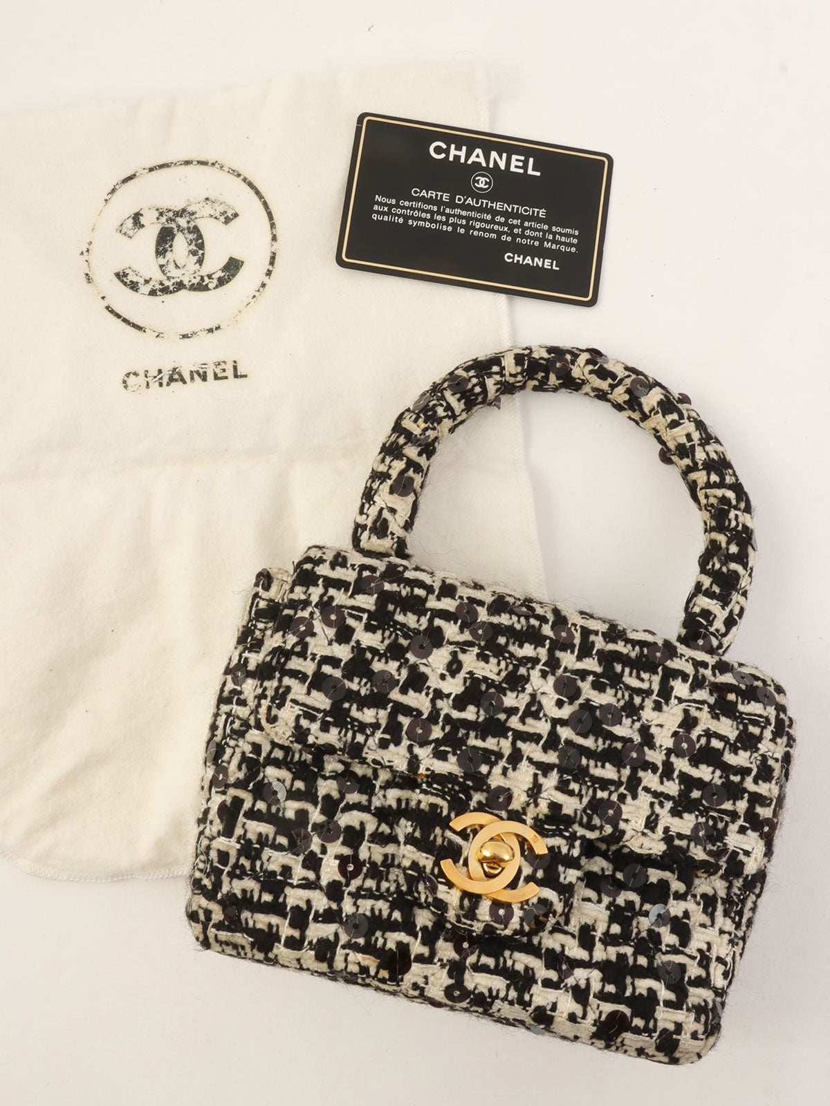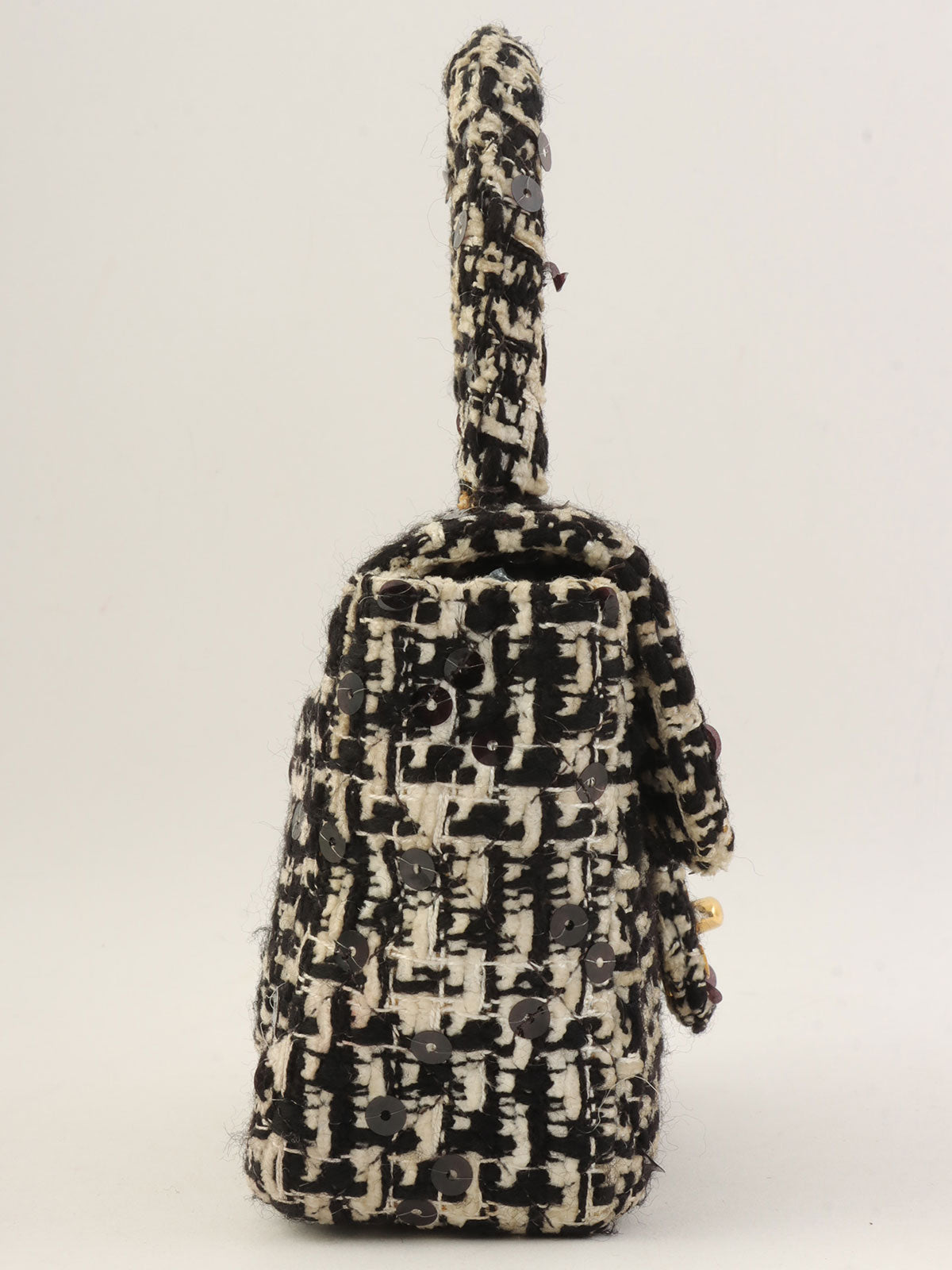 1992年頃製 ツイードスパンコールCCターンロックハンドバッグミニ ブラック/ホワイト