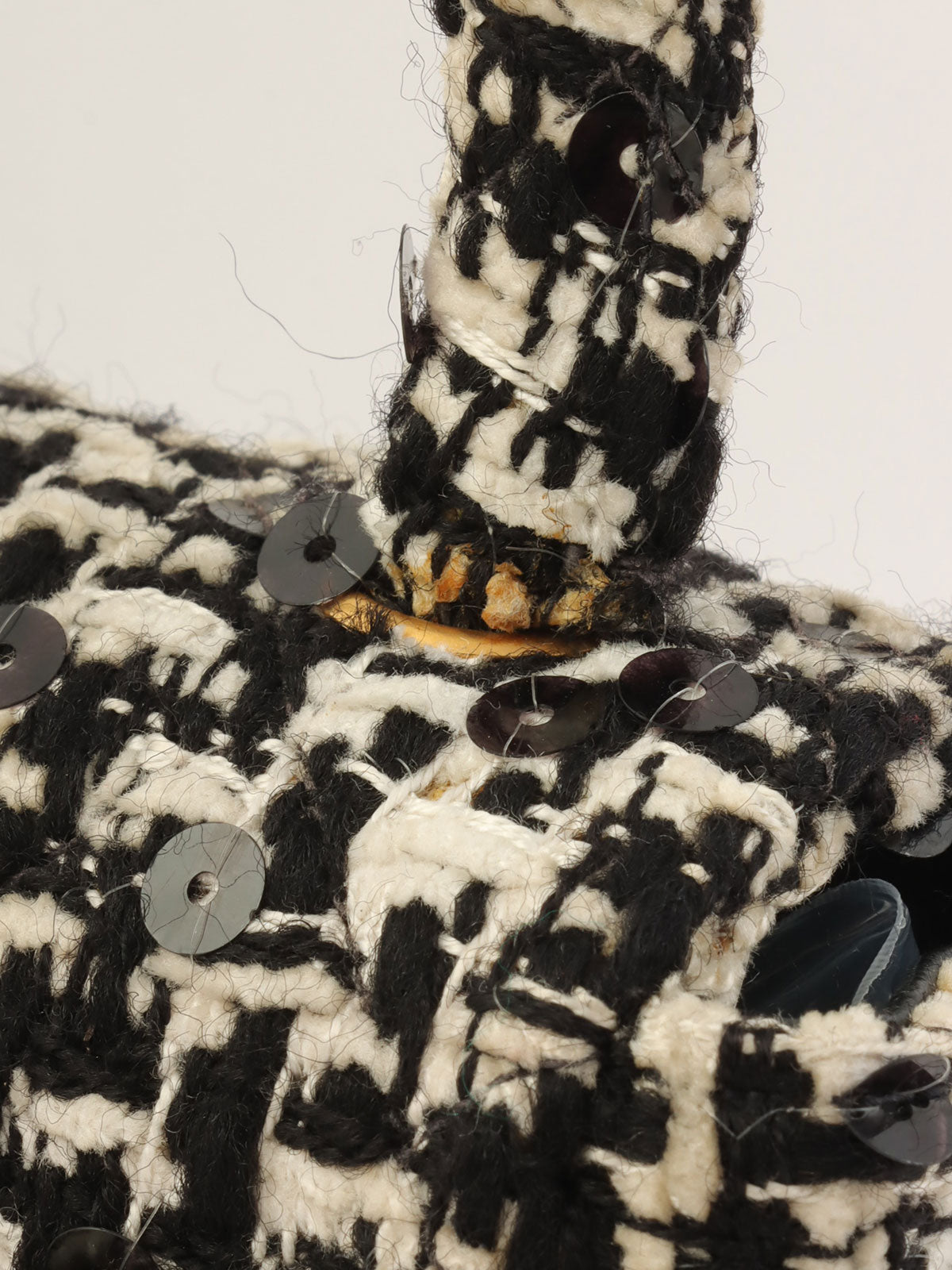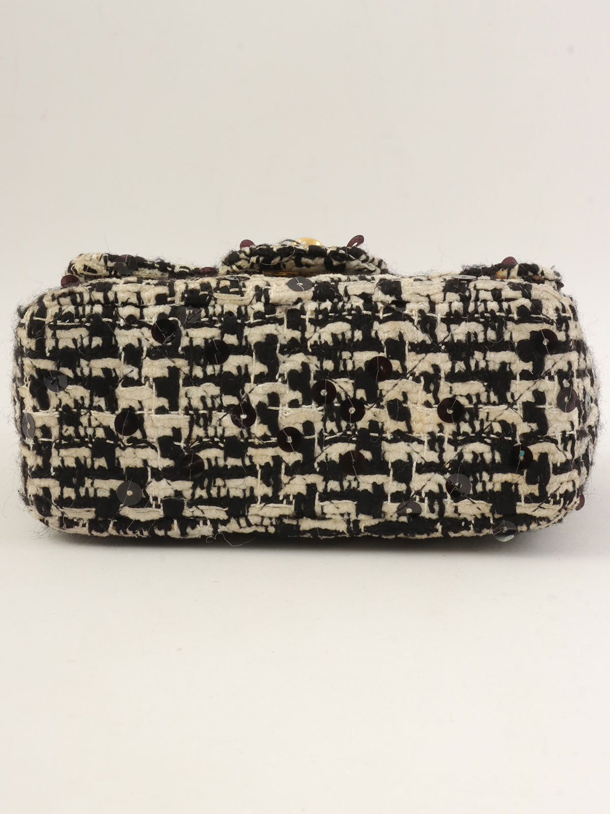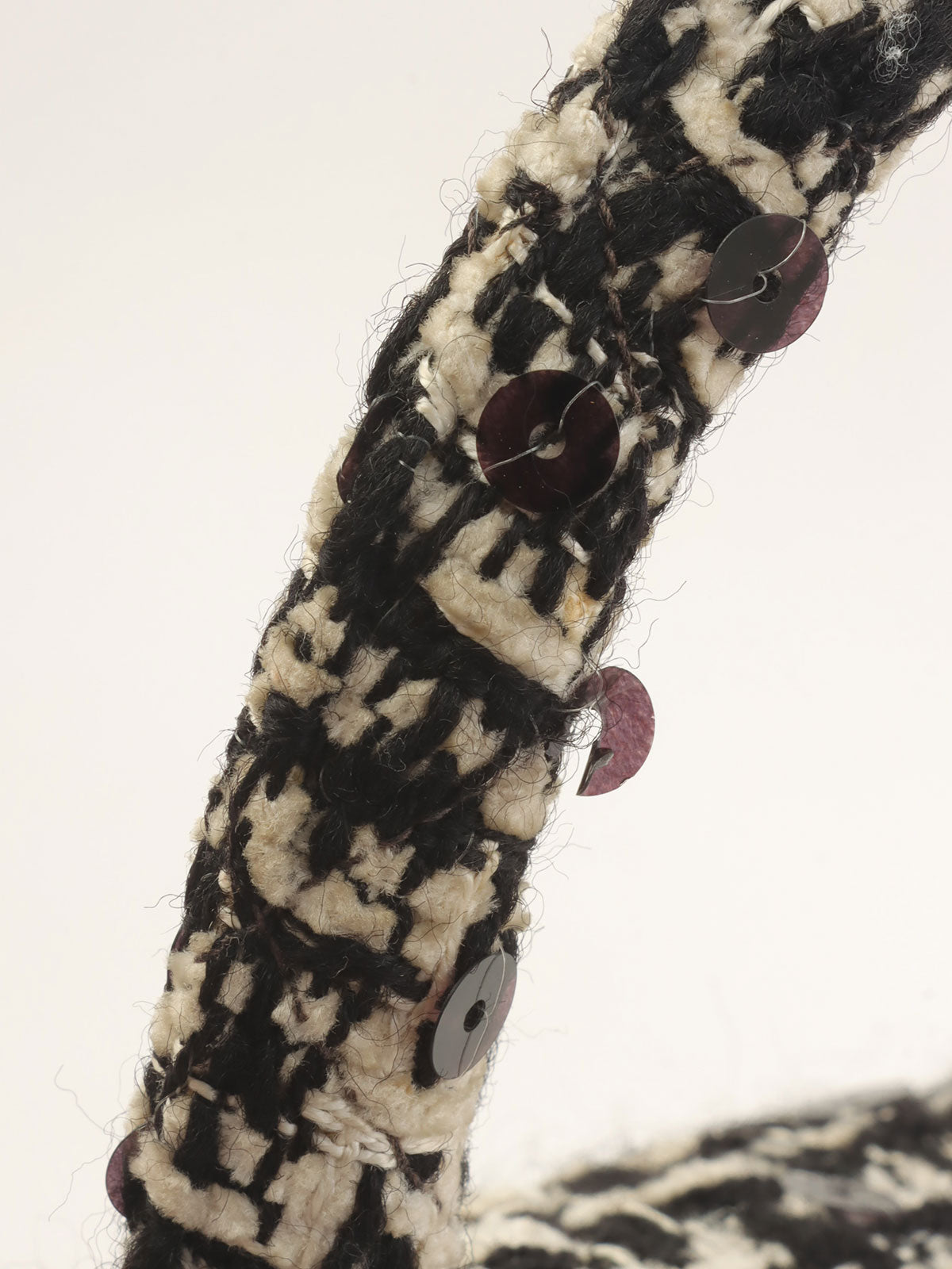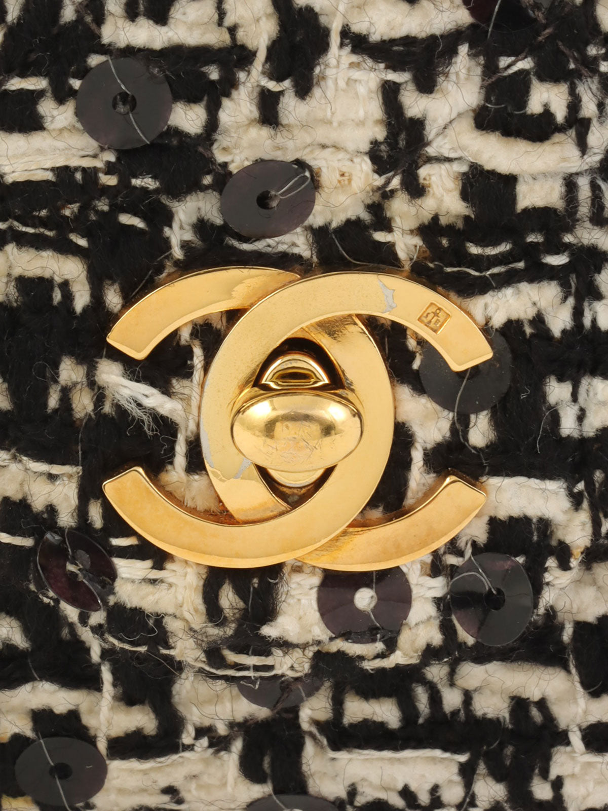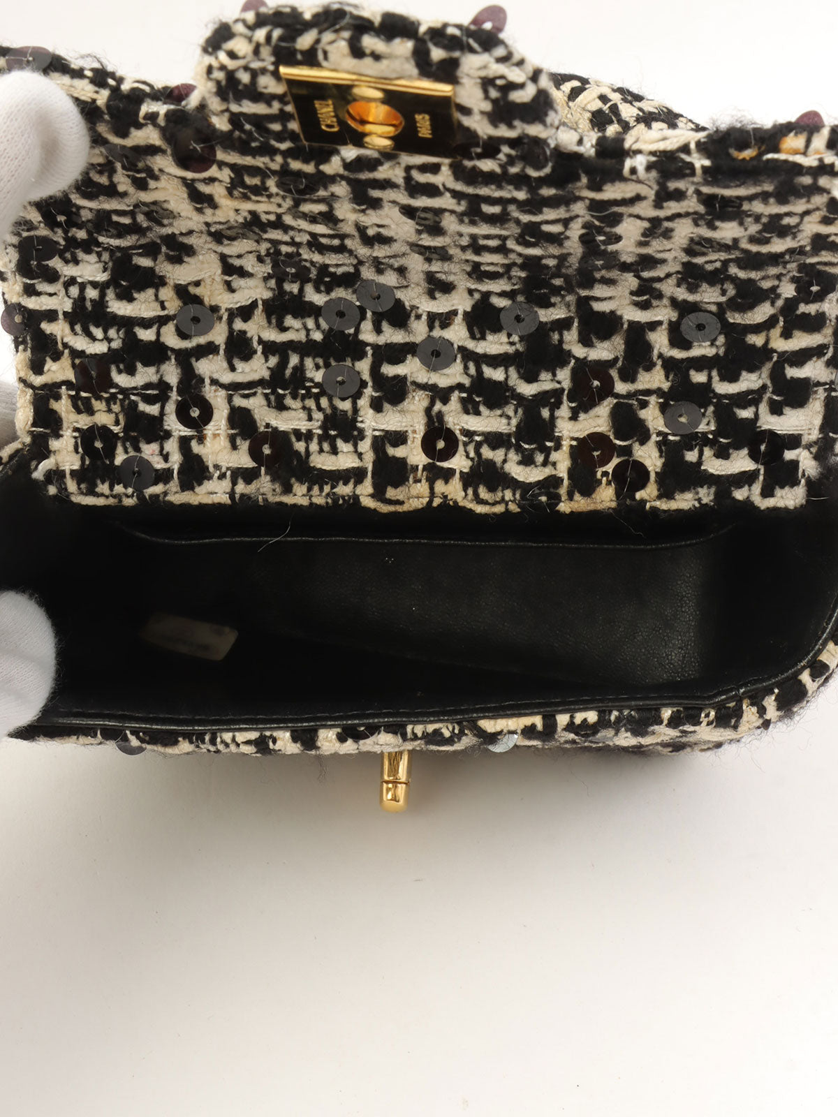 1992年頃製 ツイードスパンコールCCターンロックハンドバッグミニ ブラック/ホワイト