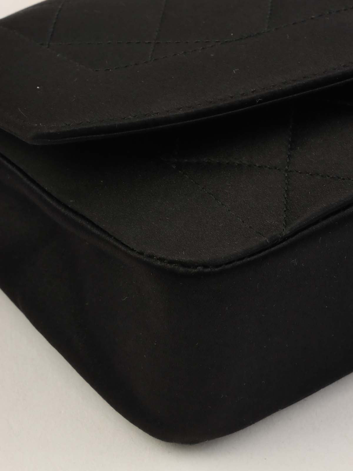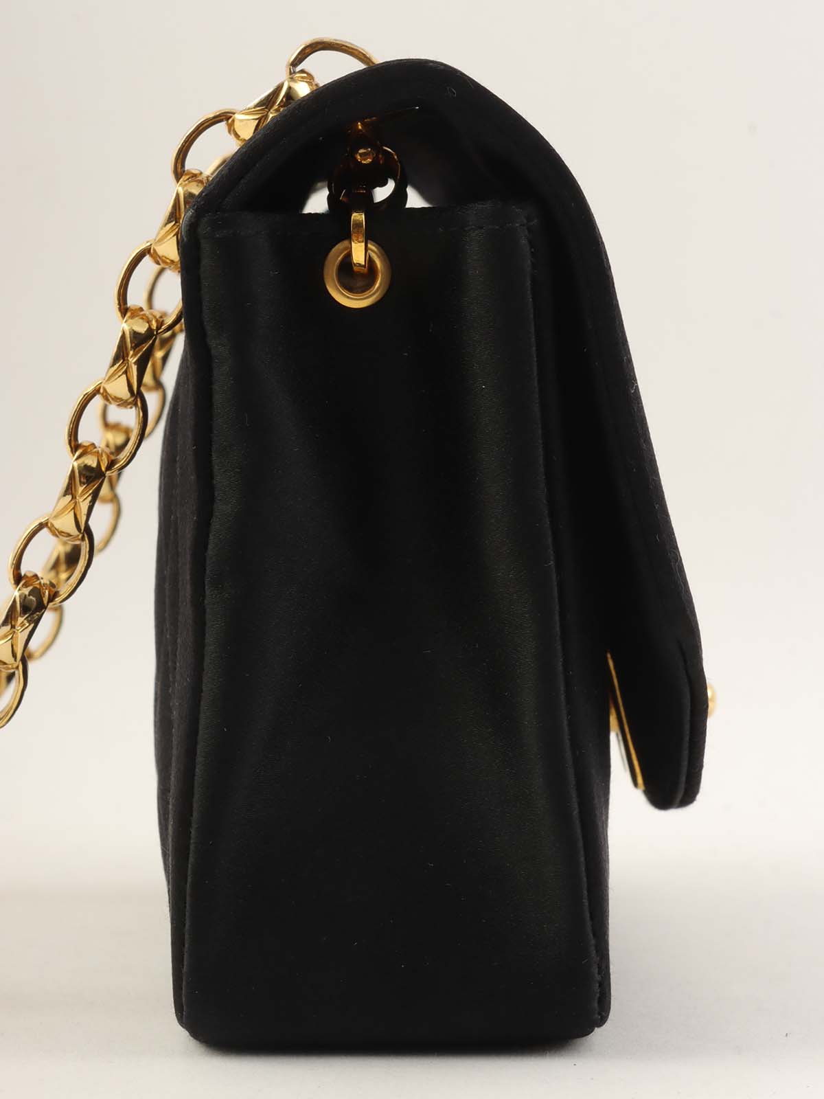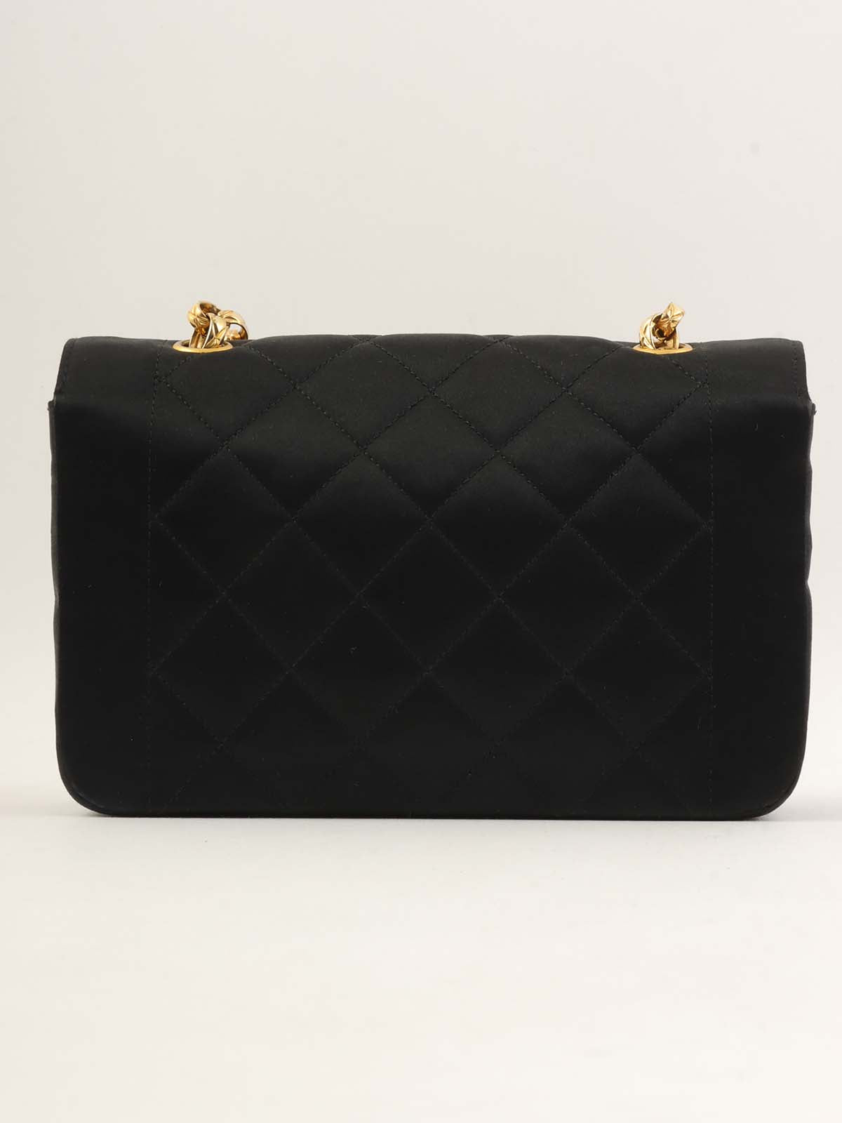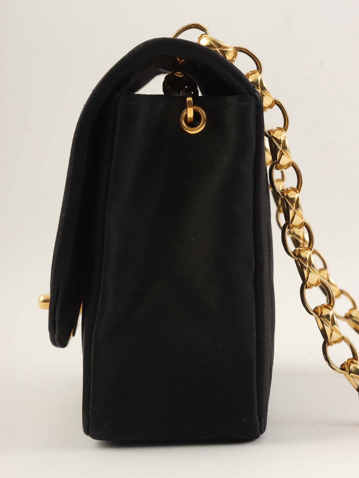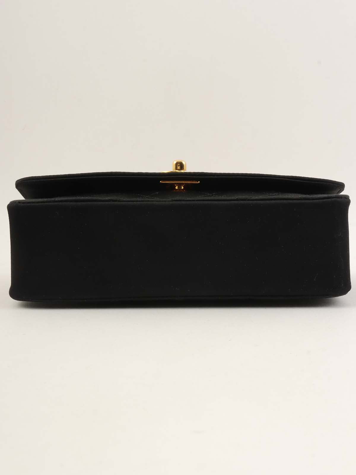 1990年頃製 サテンダイアナフラップビジューチェーンショルダーバッグ20cm ブラック