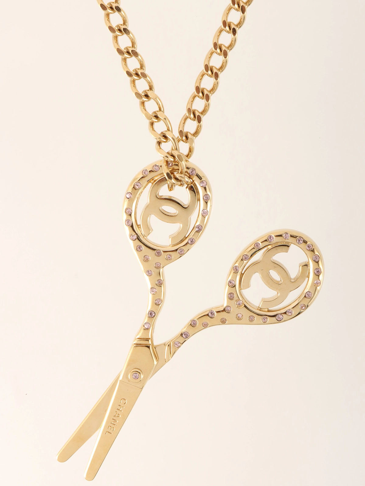 2002年製 ラインストーンシザーモチーフCCマークネックレス ゴールド