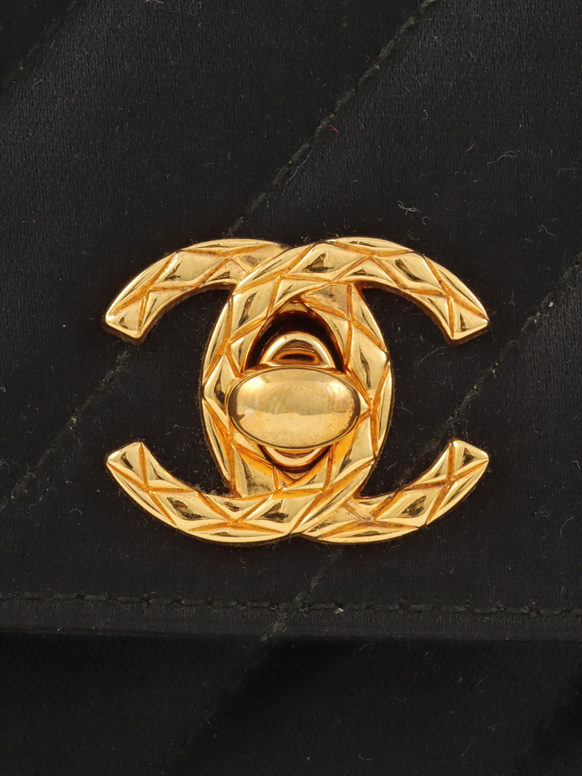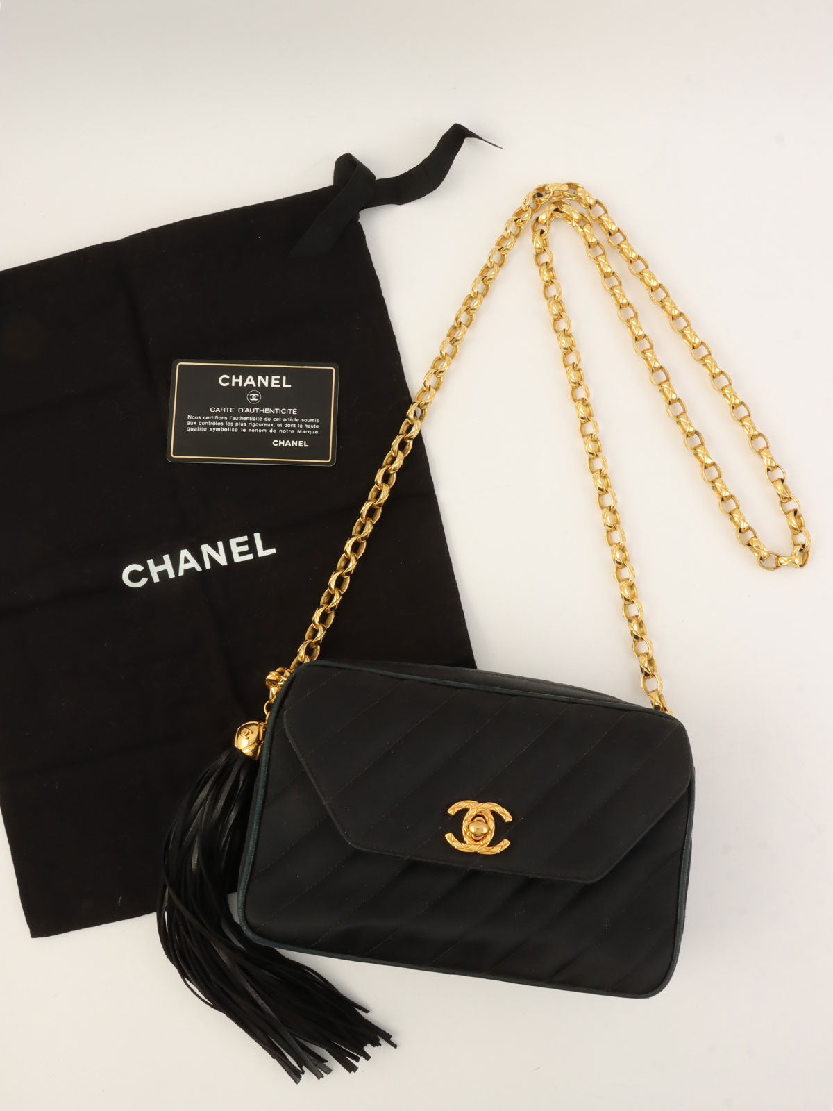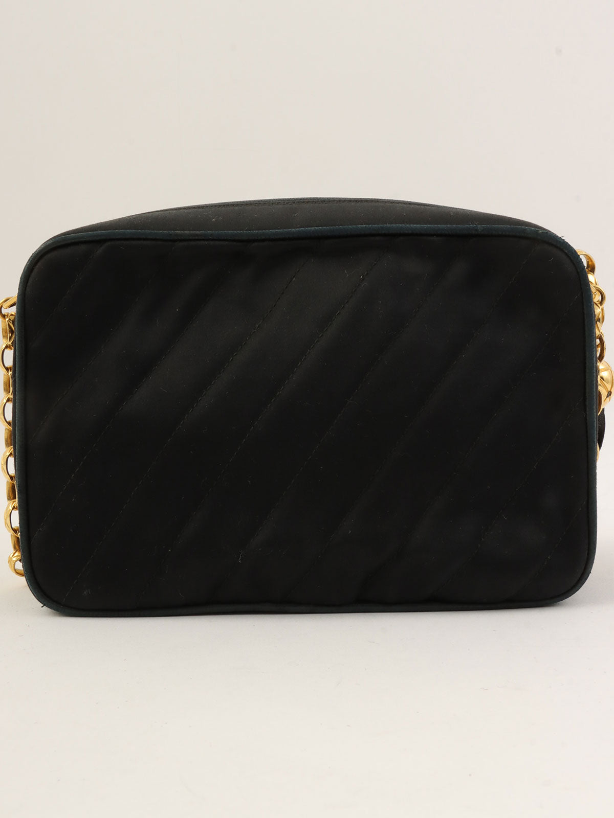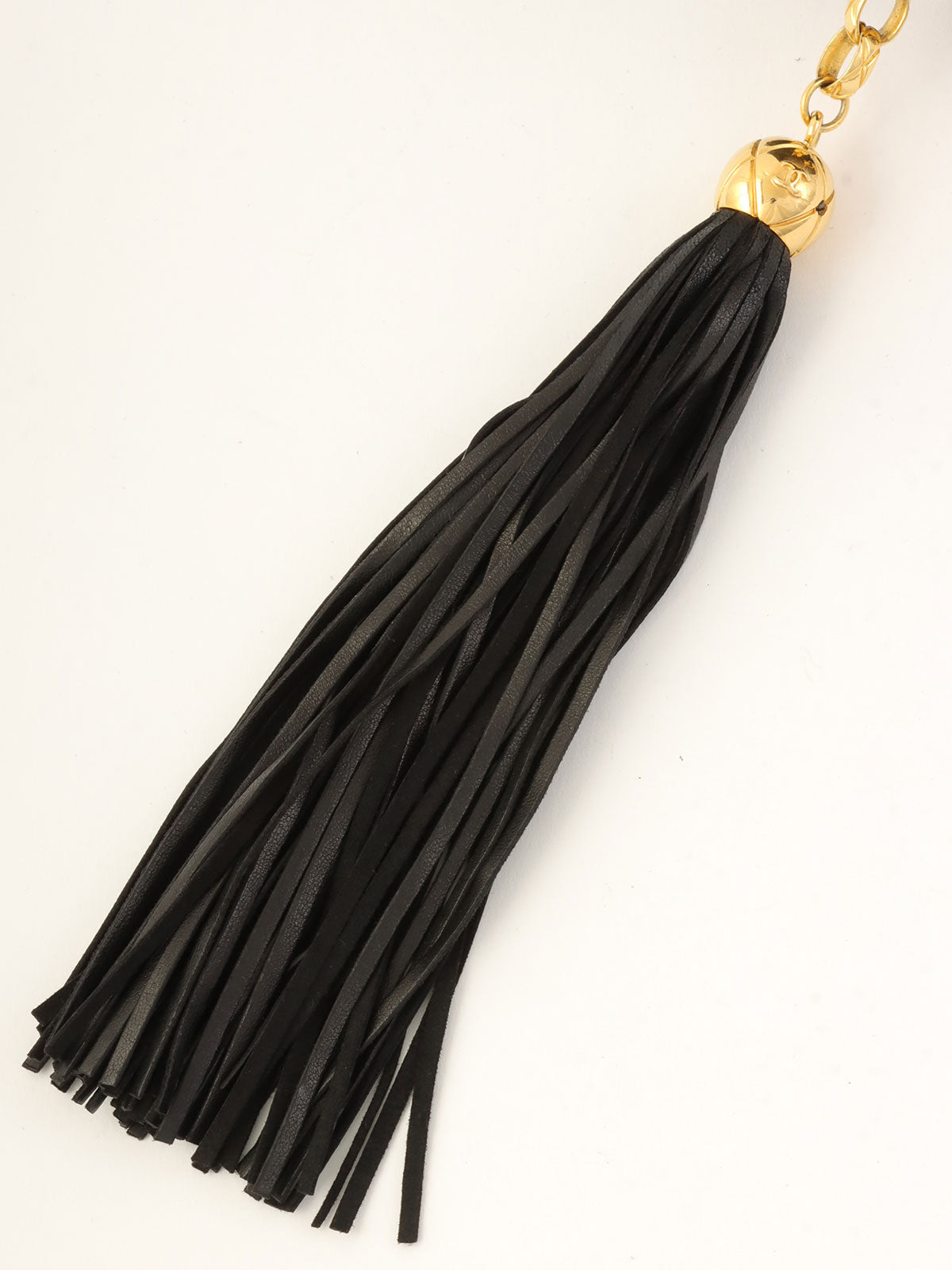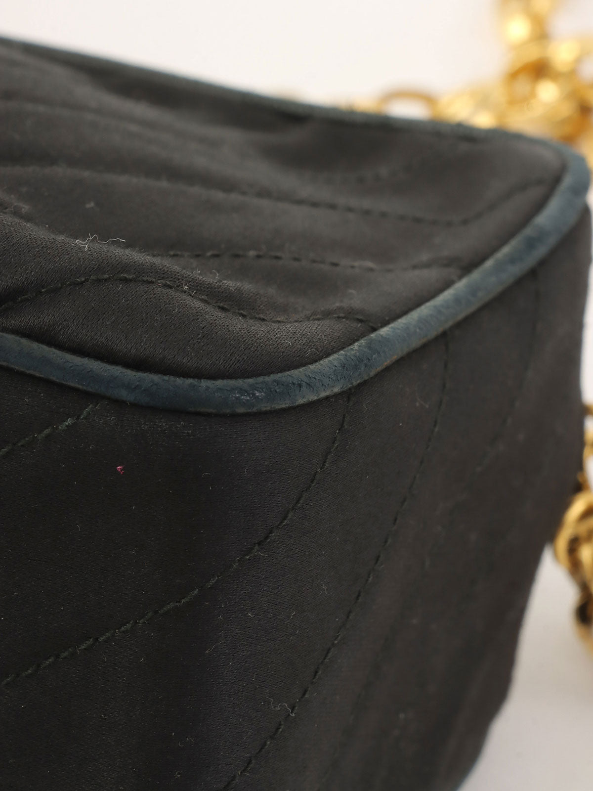 1992年製 サテンCCターンロックフリンジチェーンショルダーバッグ ブラック