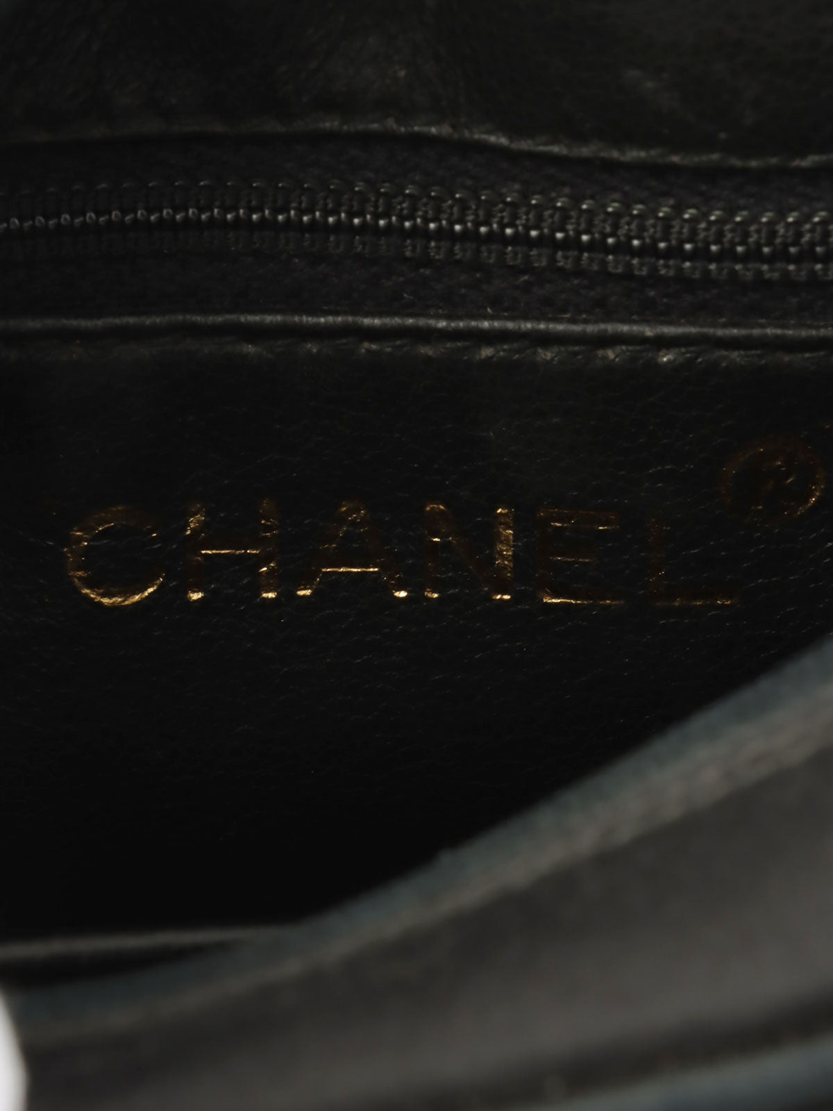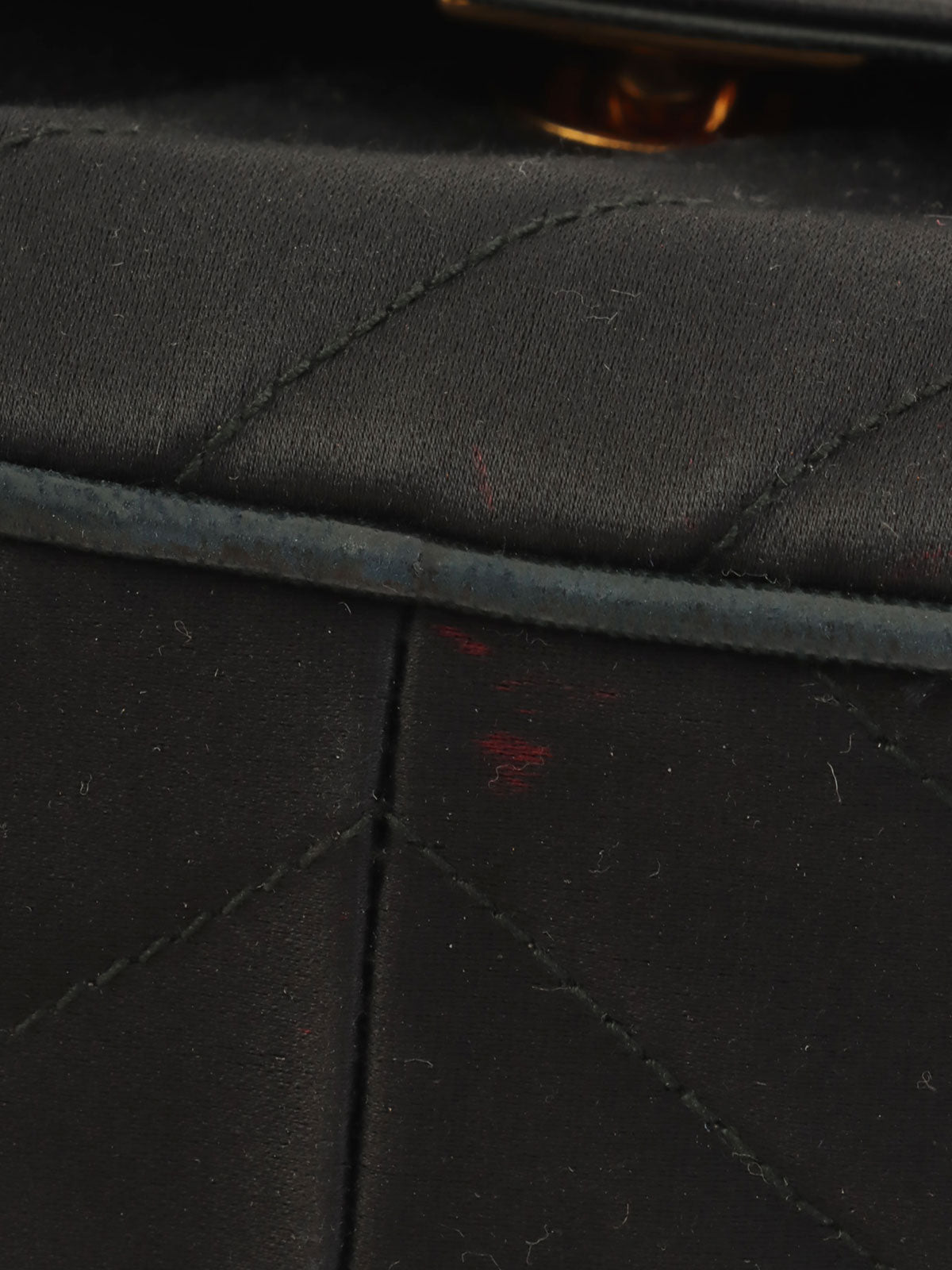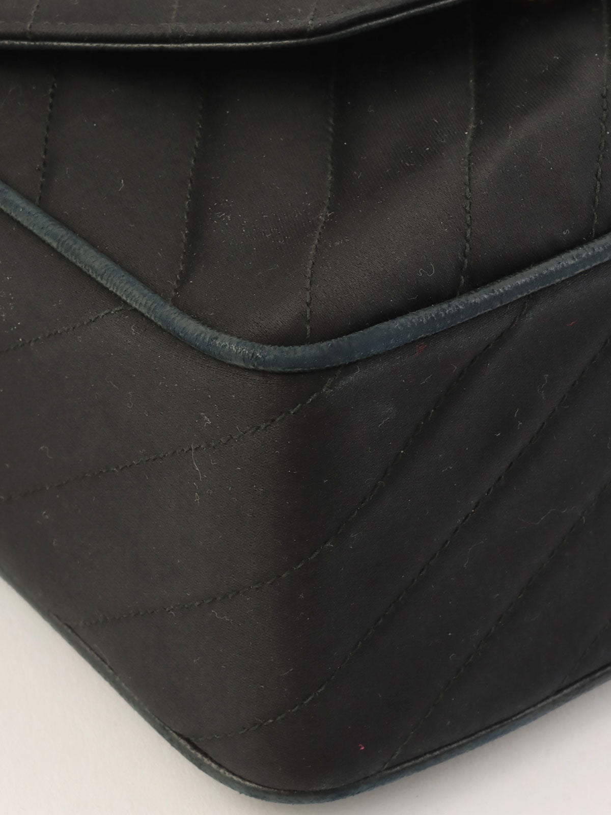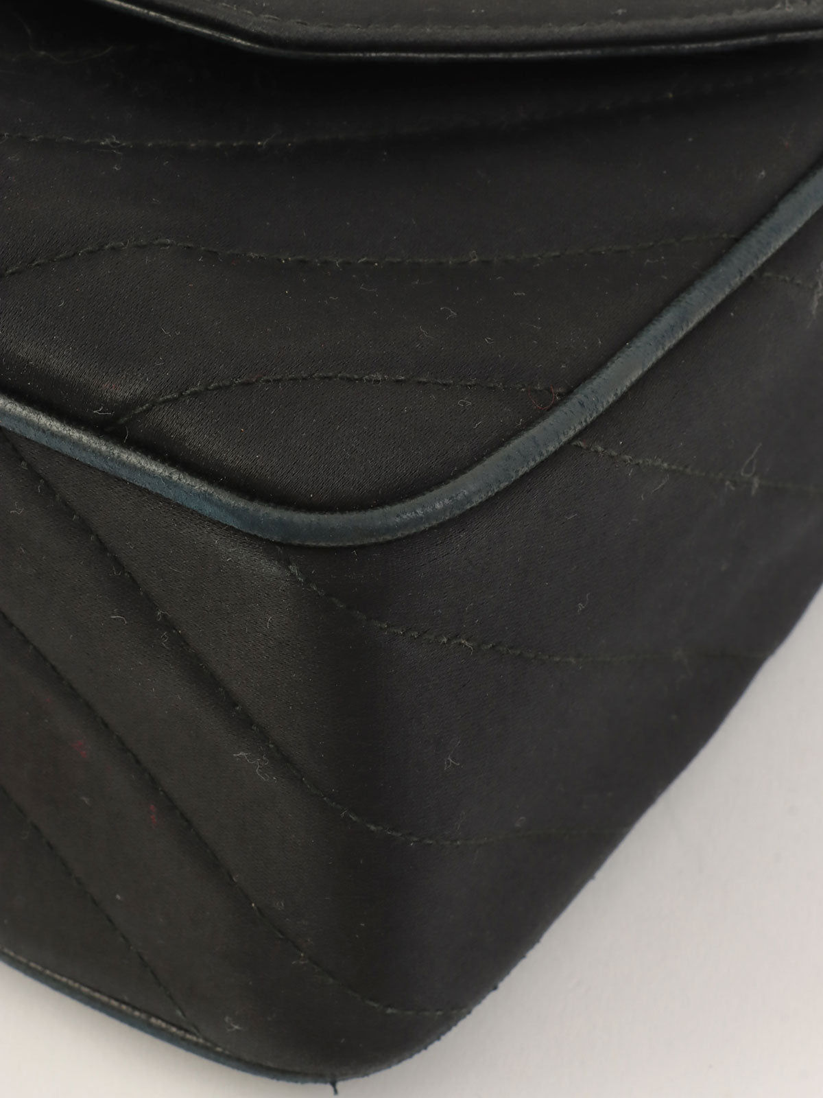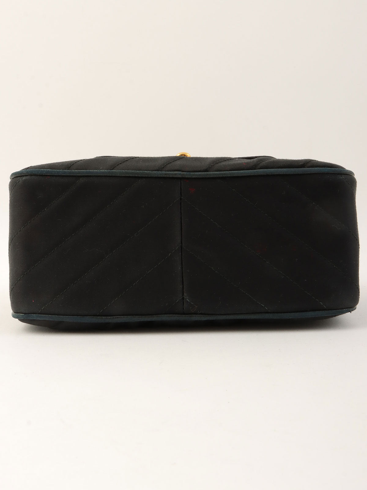 1992年製 サテンCCターンロックフリンジチェーンショルダーバッグ ブラック