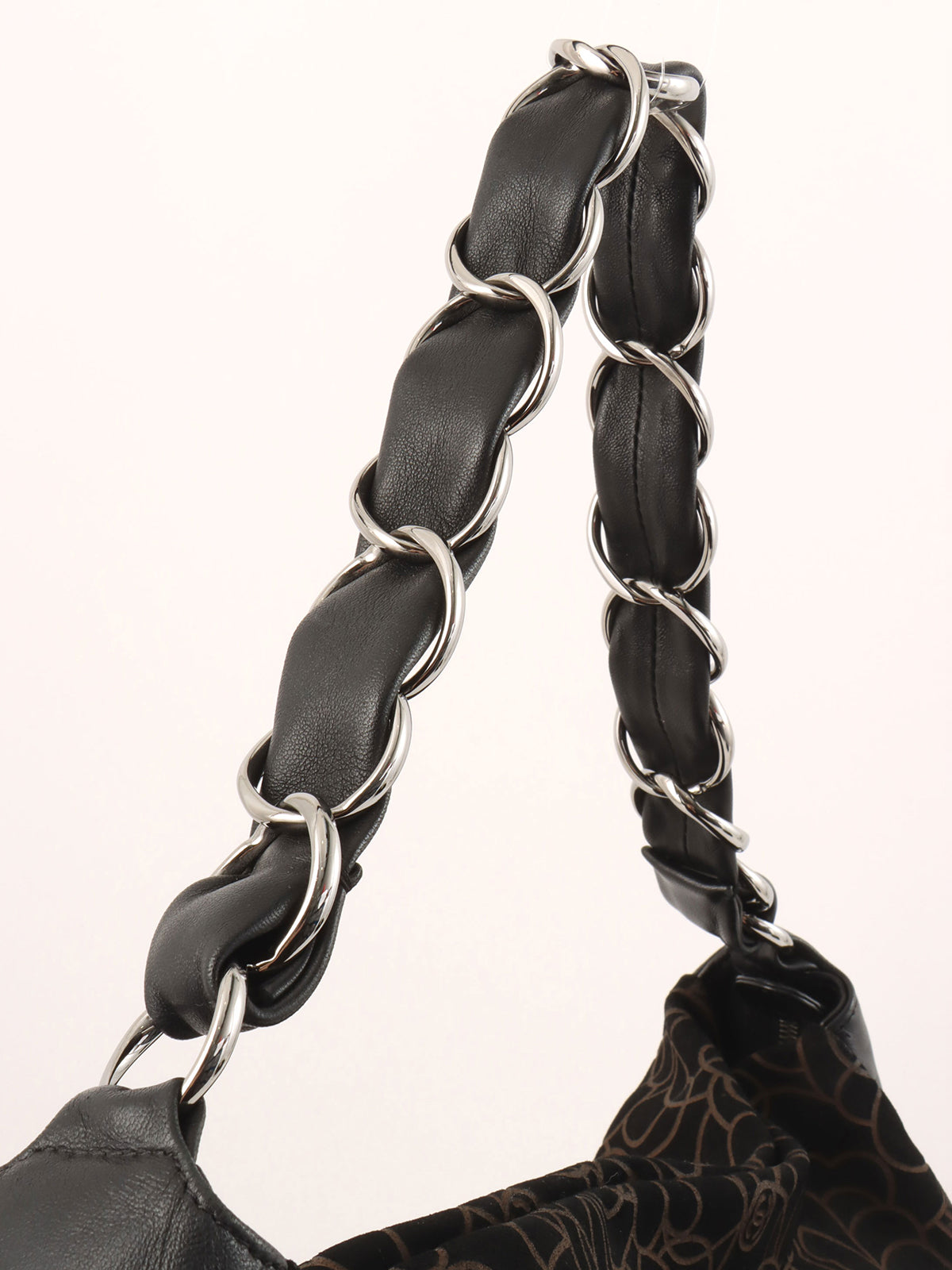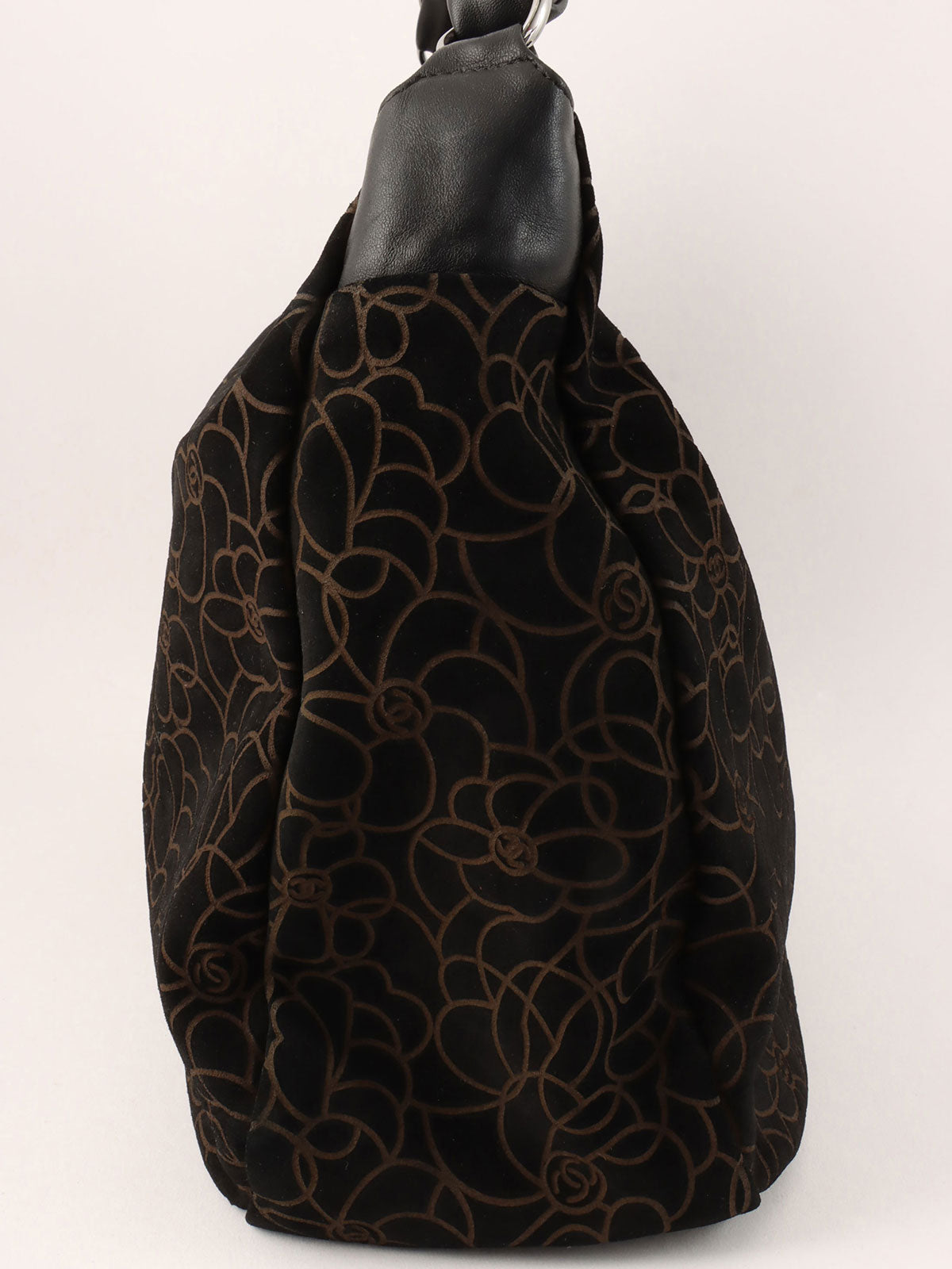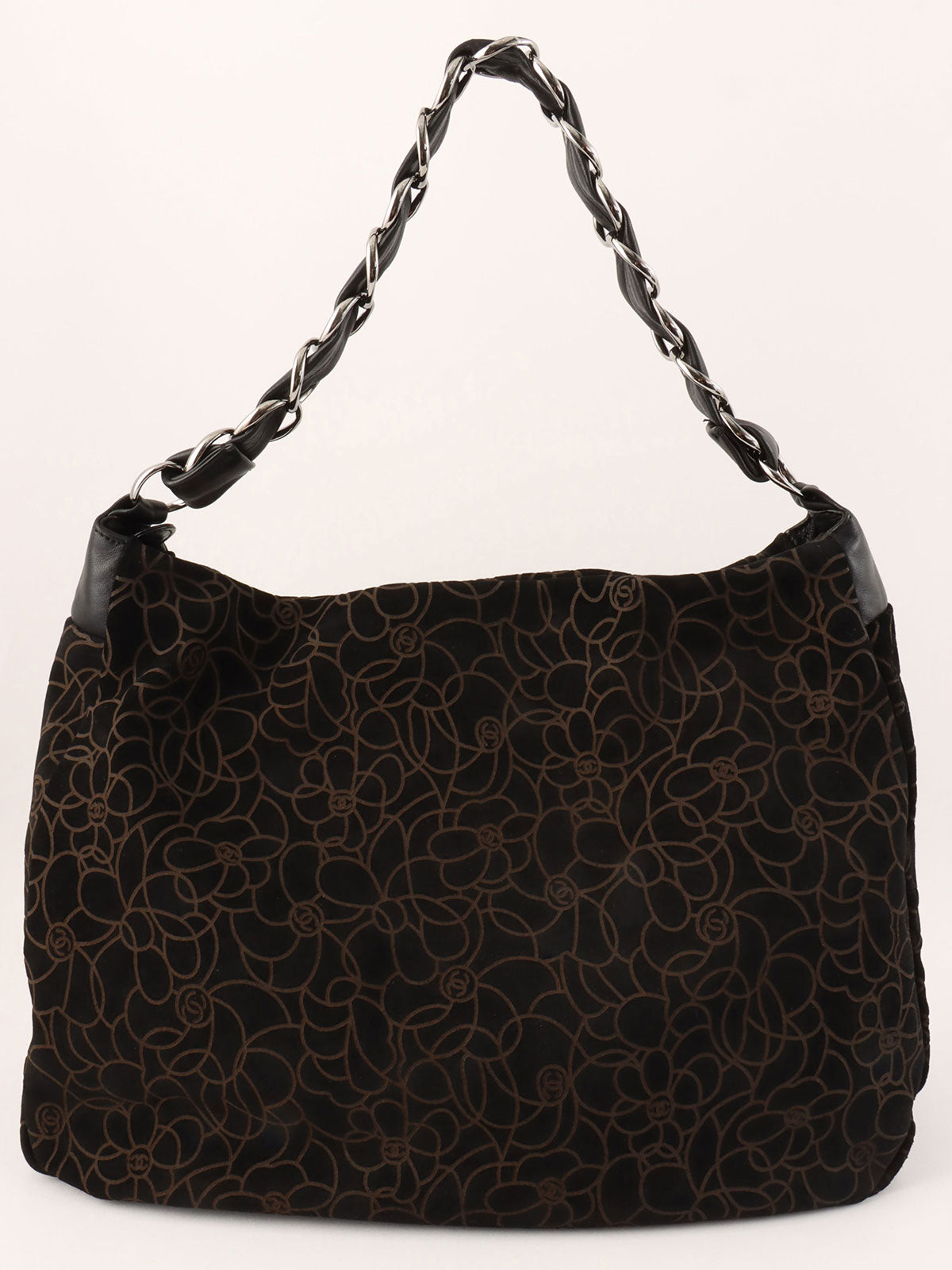 2004年頃製 スエードカメリアパターンCCマークプレートチェーンショルダーバッグ ブラック