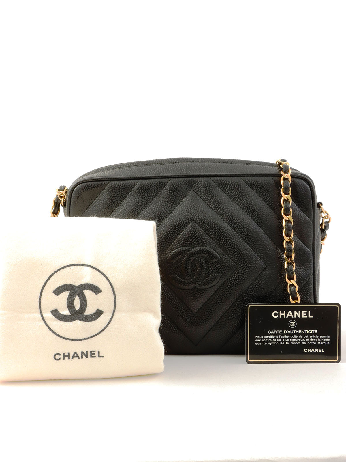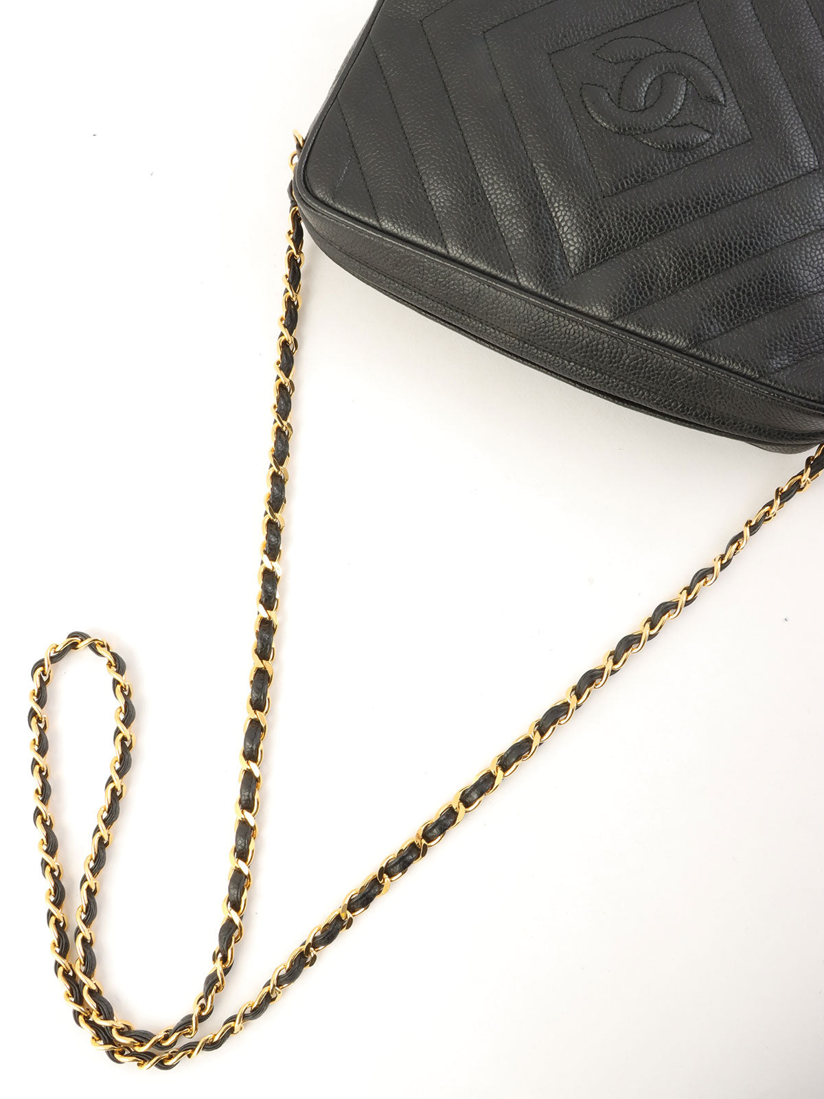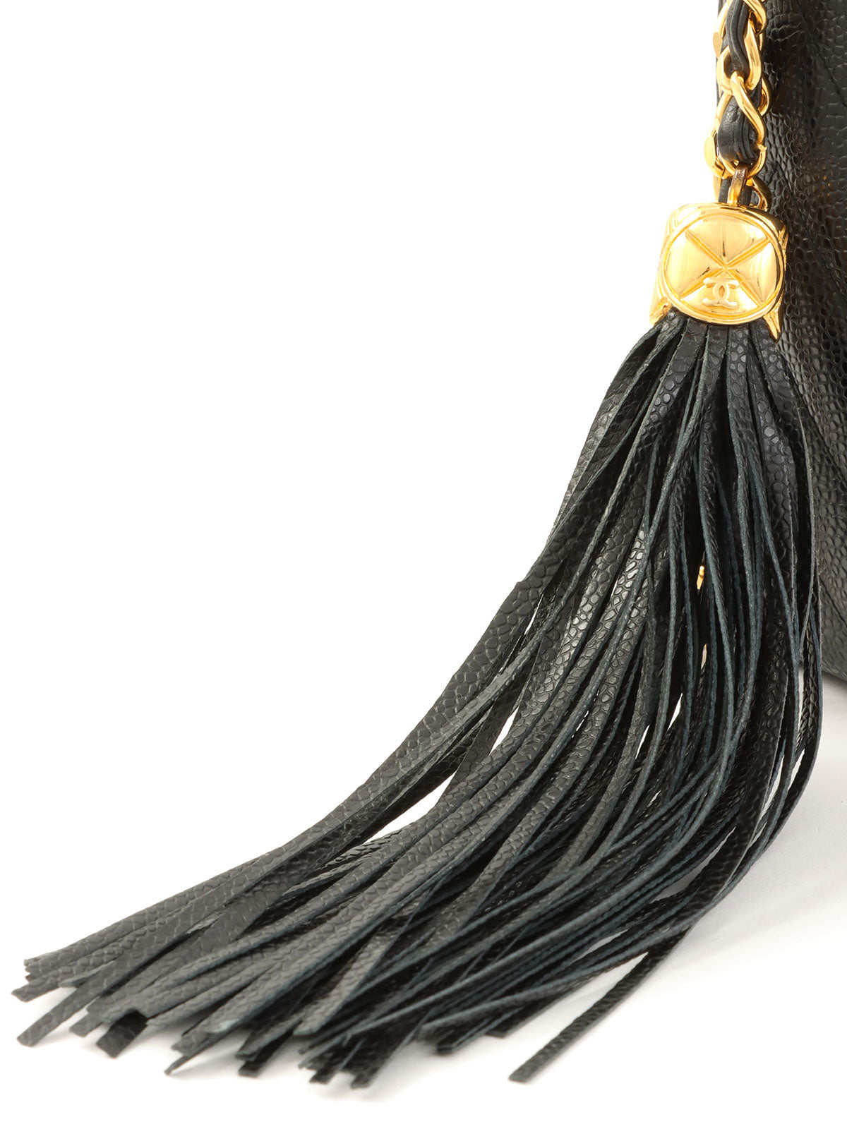 1992年頃製 キャビアスキンCCマークタッセルチェーンショルダーバッグ ブラック