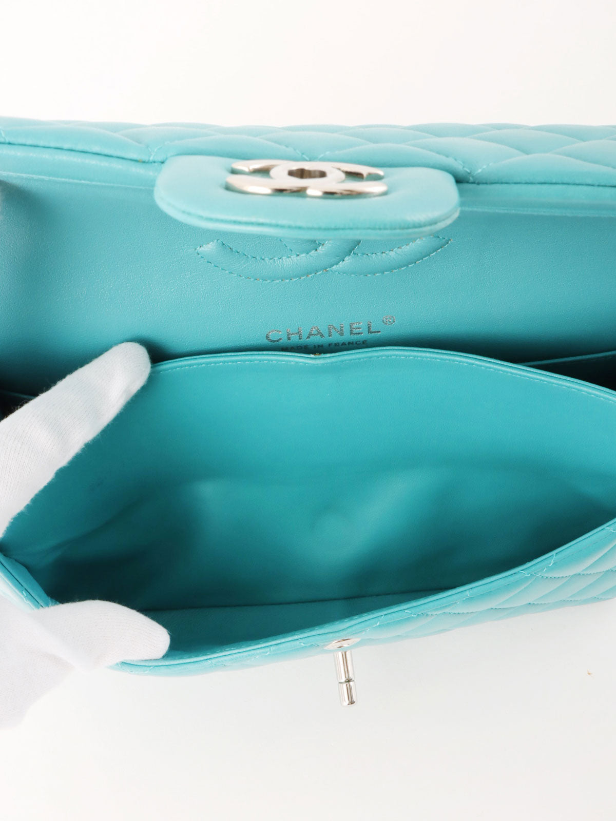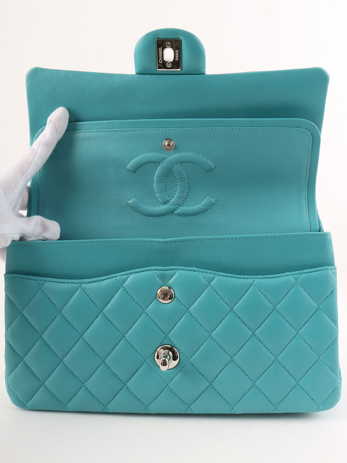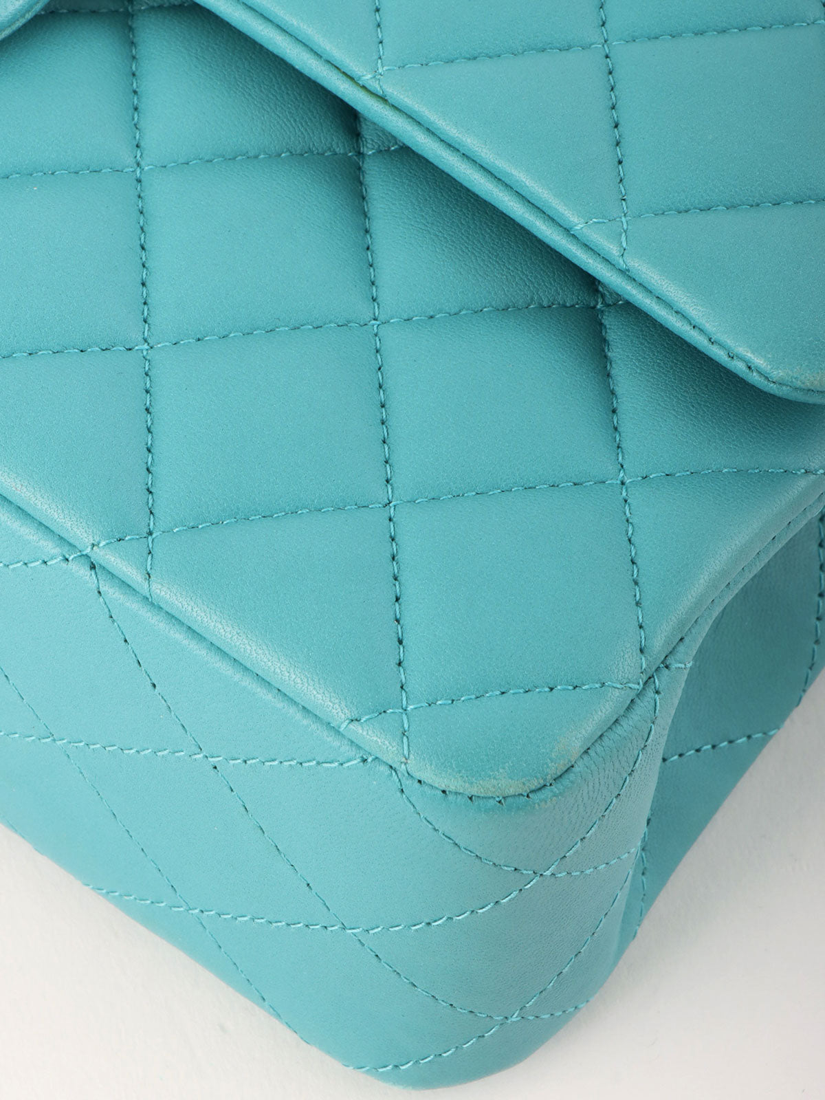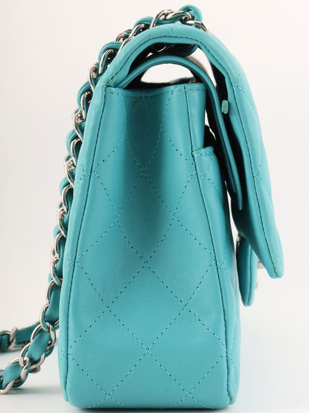 2014年頃製 クラシックフラップチェーンバッグ25cm ターコイズブルー