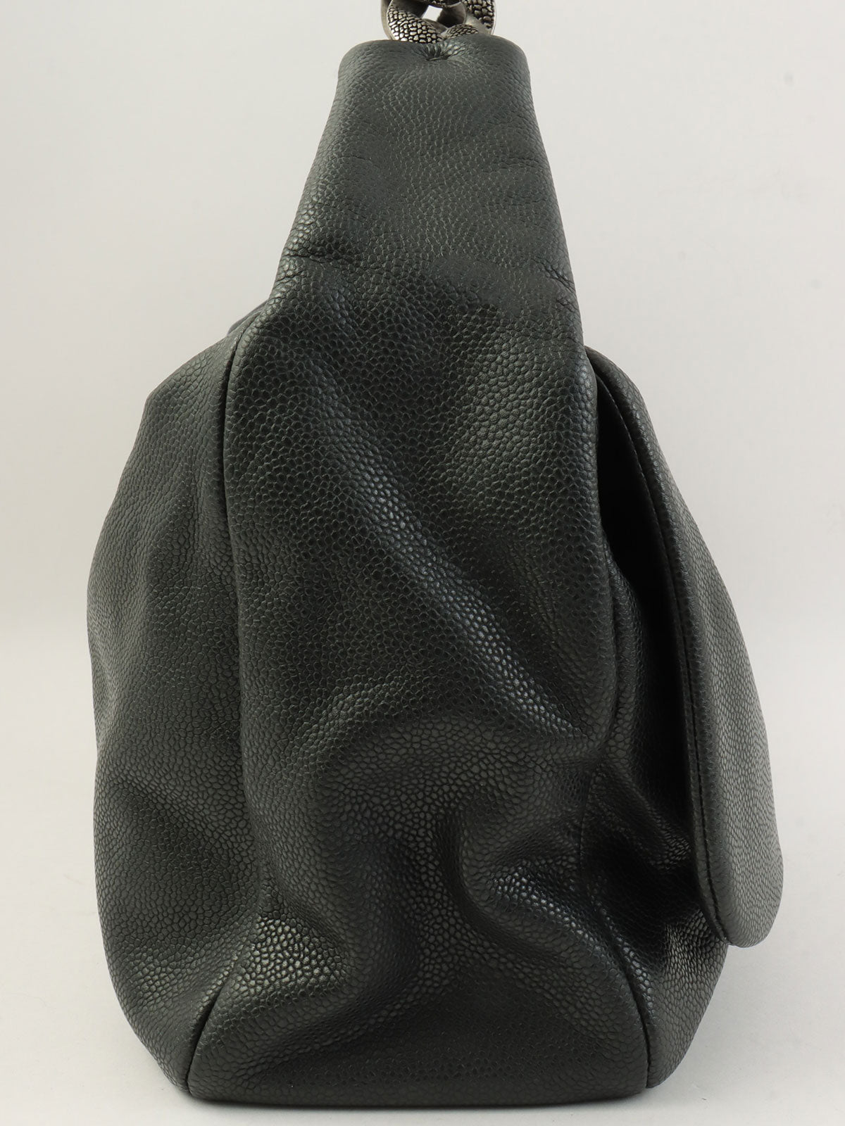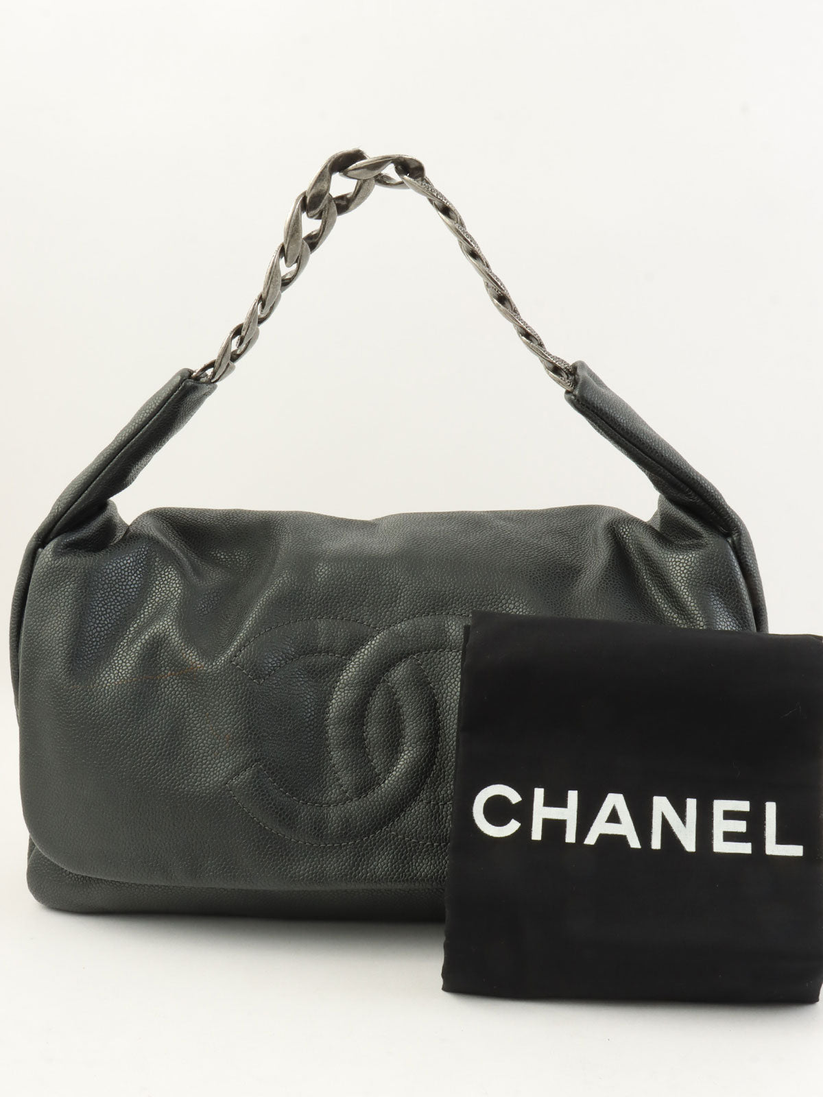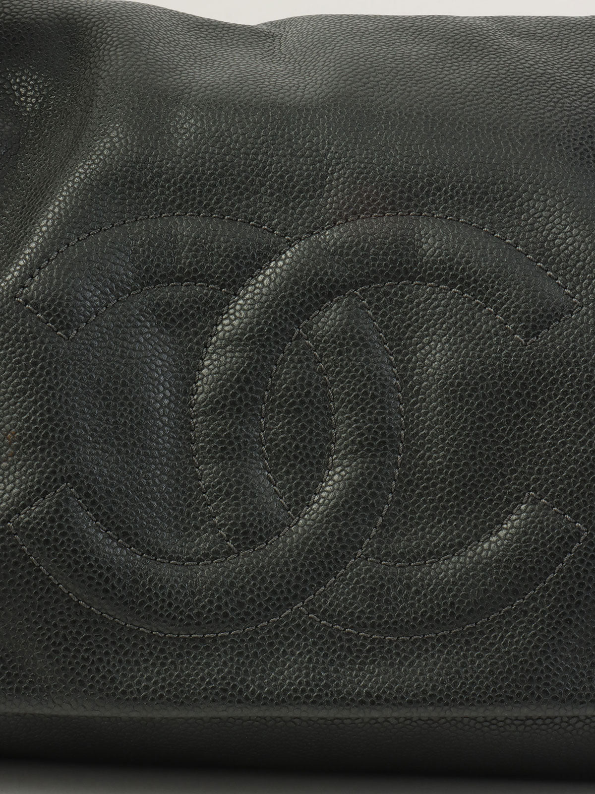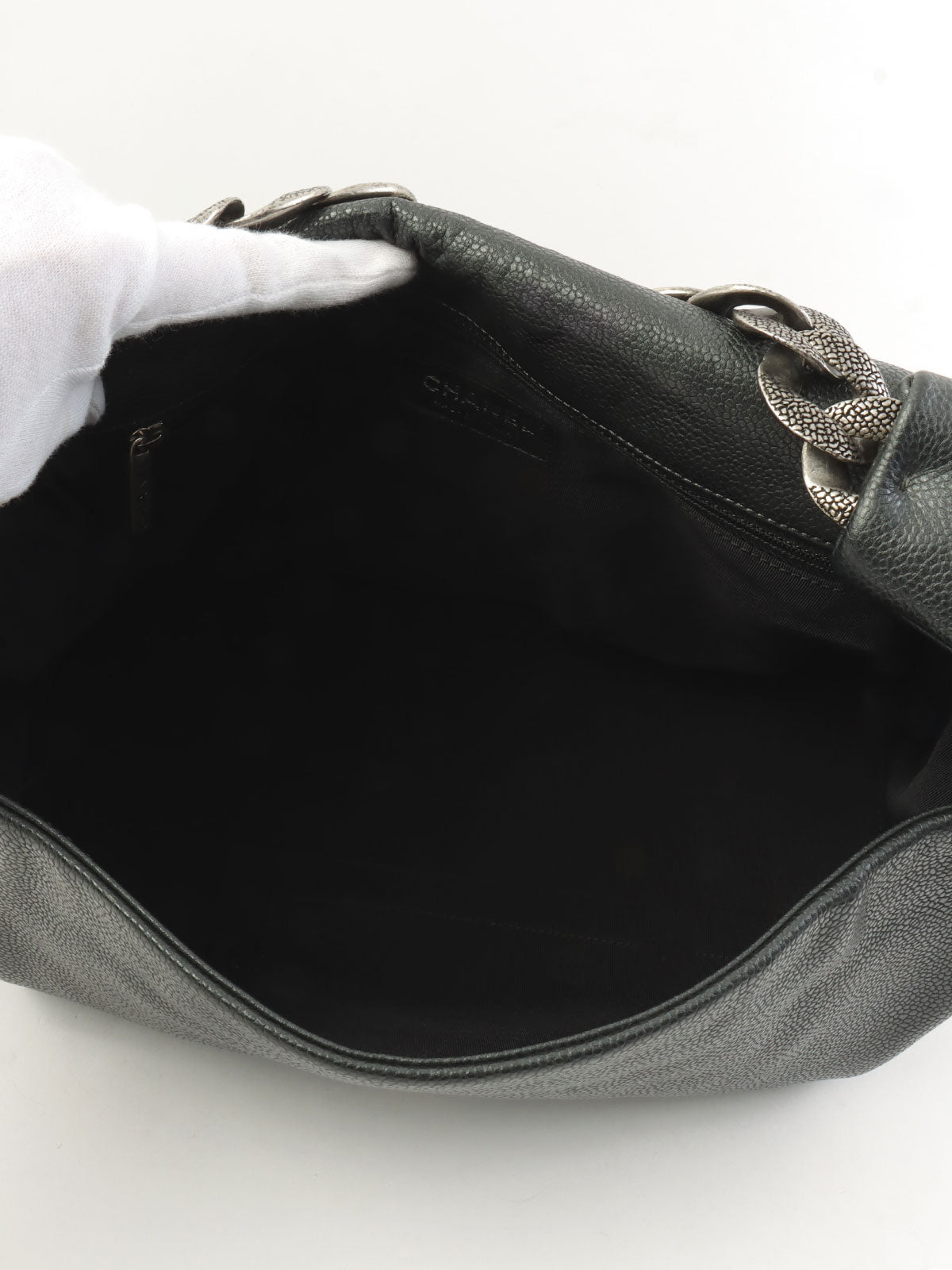 2009年頃製 キャビアスキンCCマークステッチチェーンワンショルダーバッグ ダークグレー