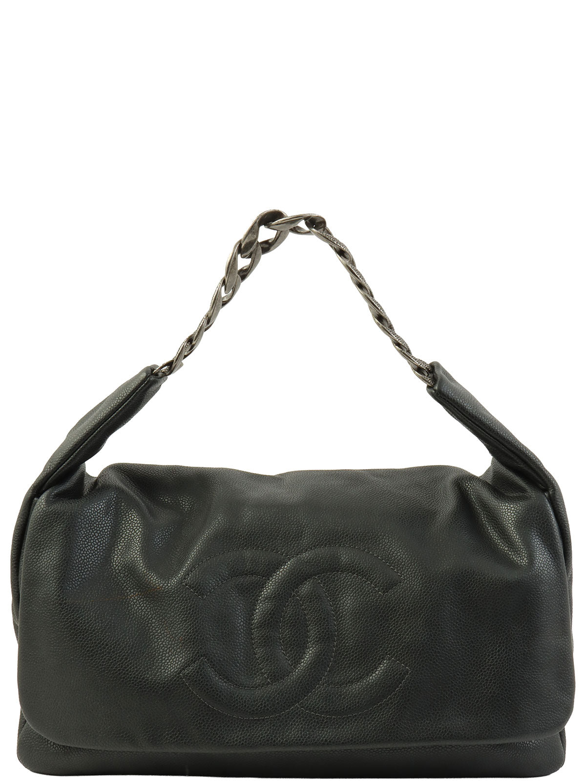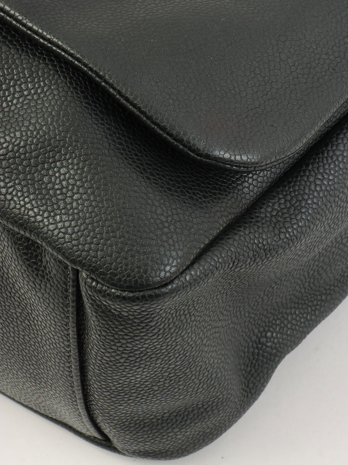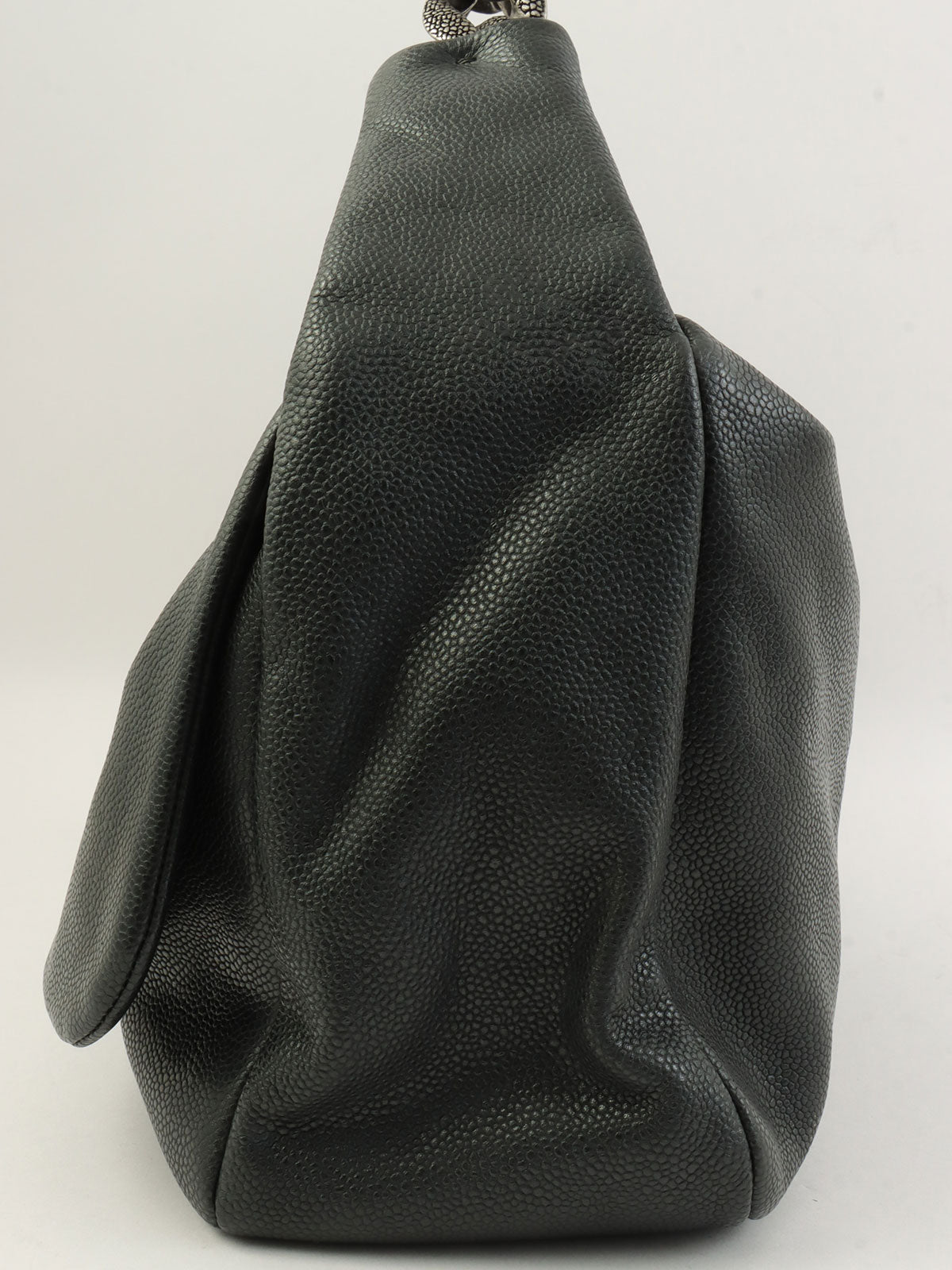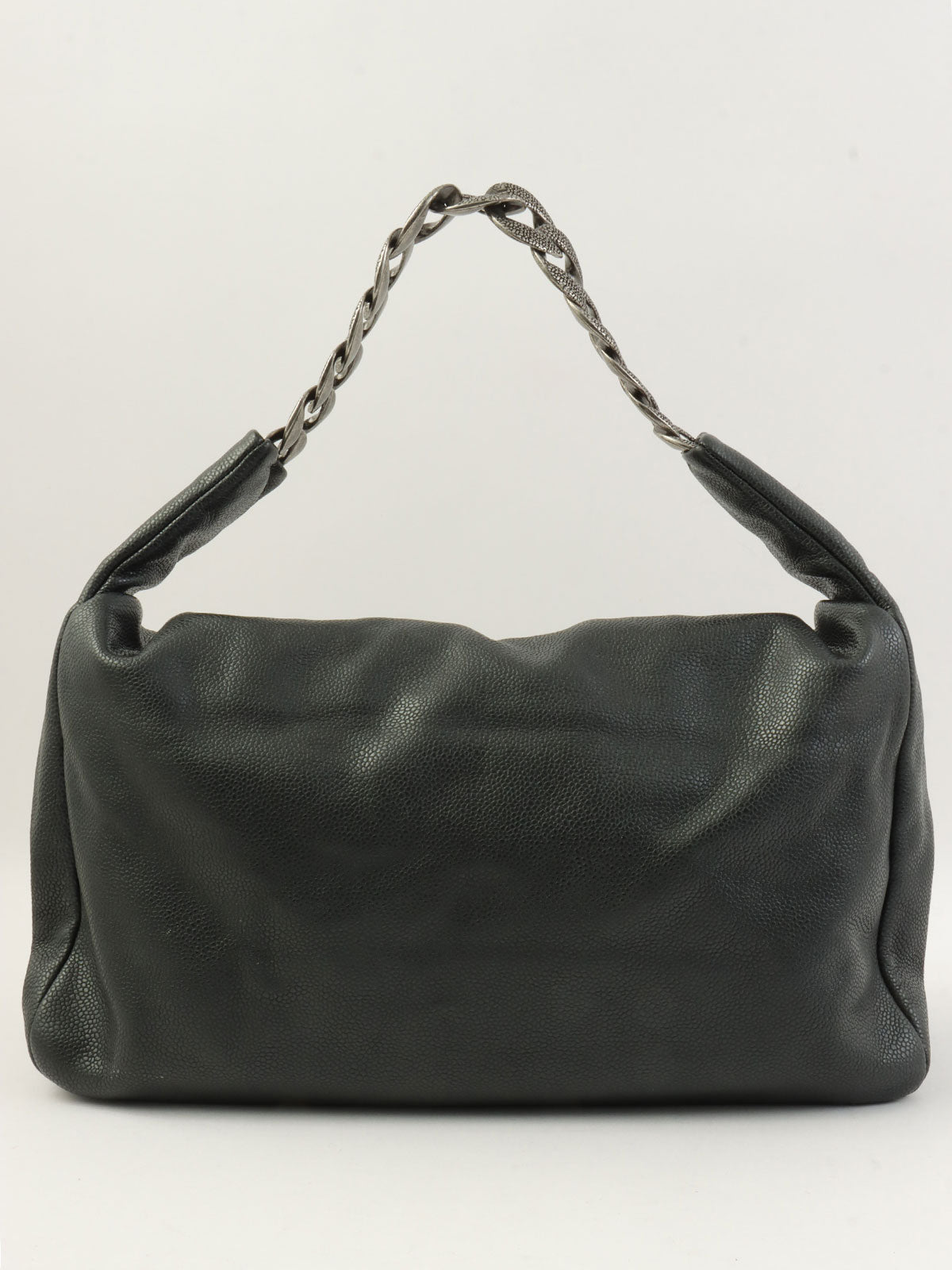 2009年頃製 キャビアスキンCCマークステッチチェーンワンショルダーバッグ ダークグレー