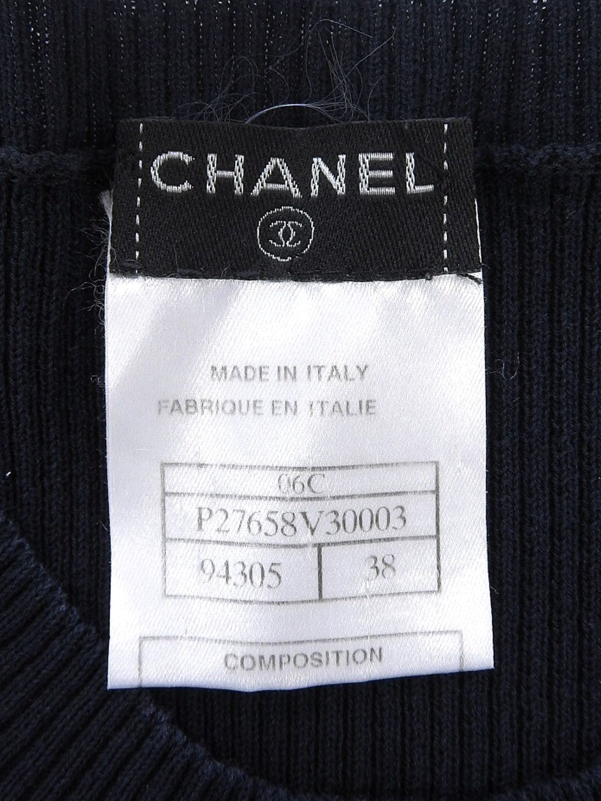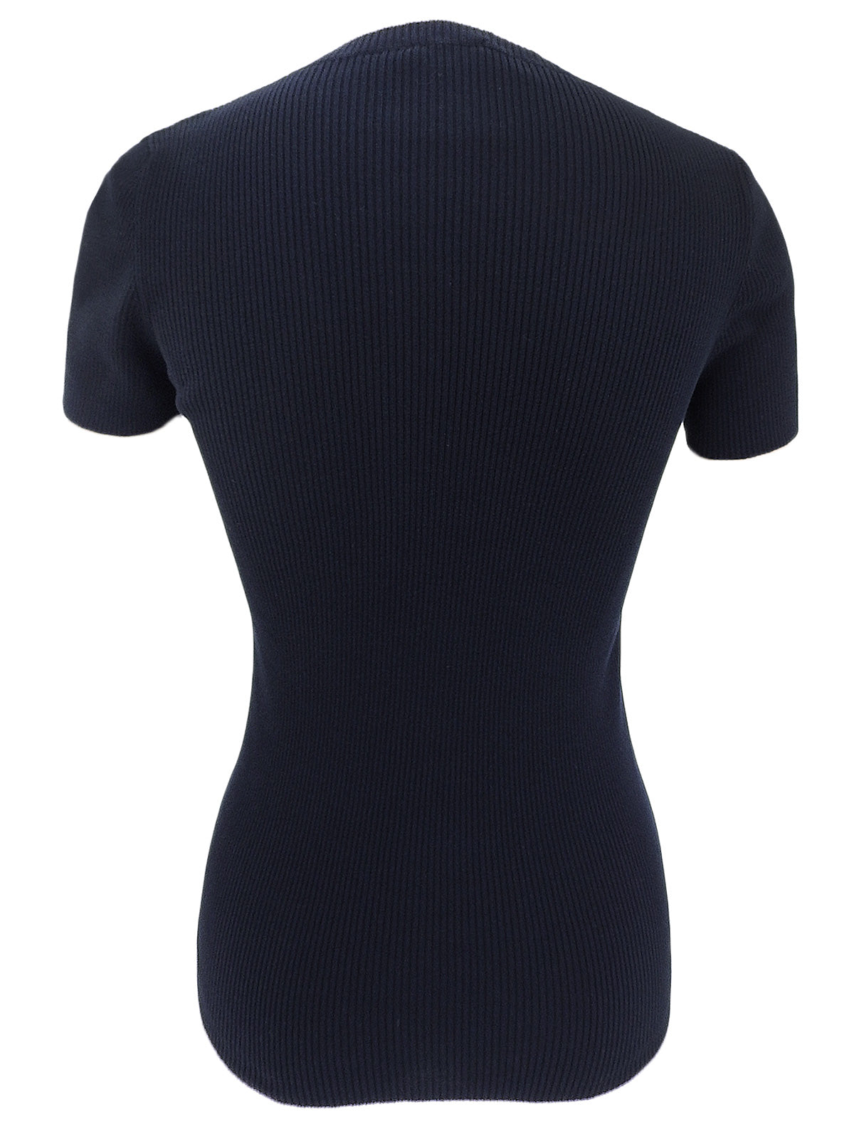 2008年製 カメリアボタンハーフスリーブニットトップス ネイビー