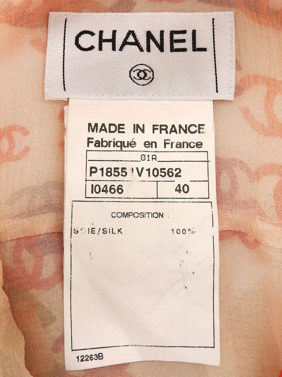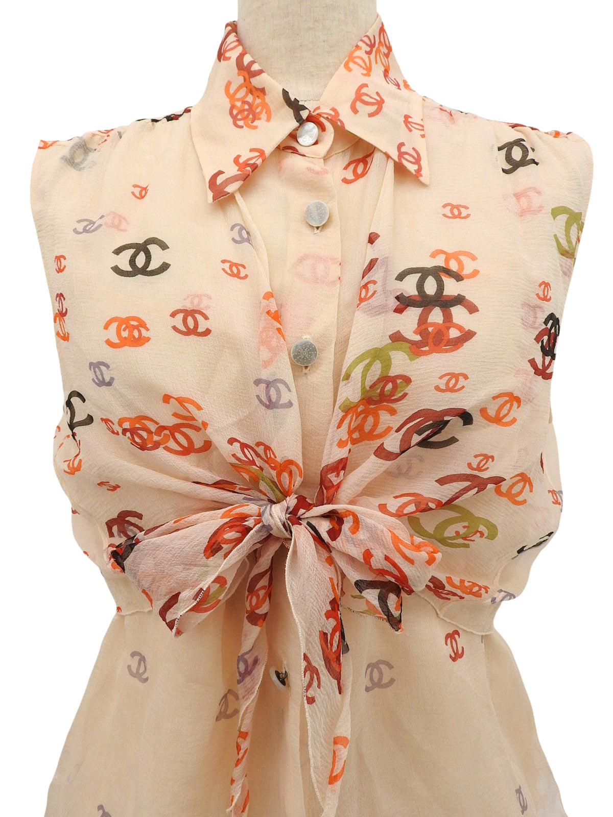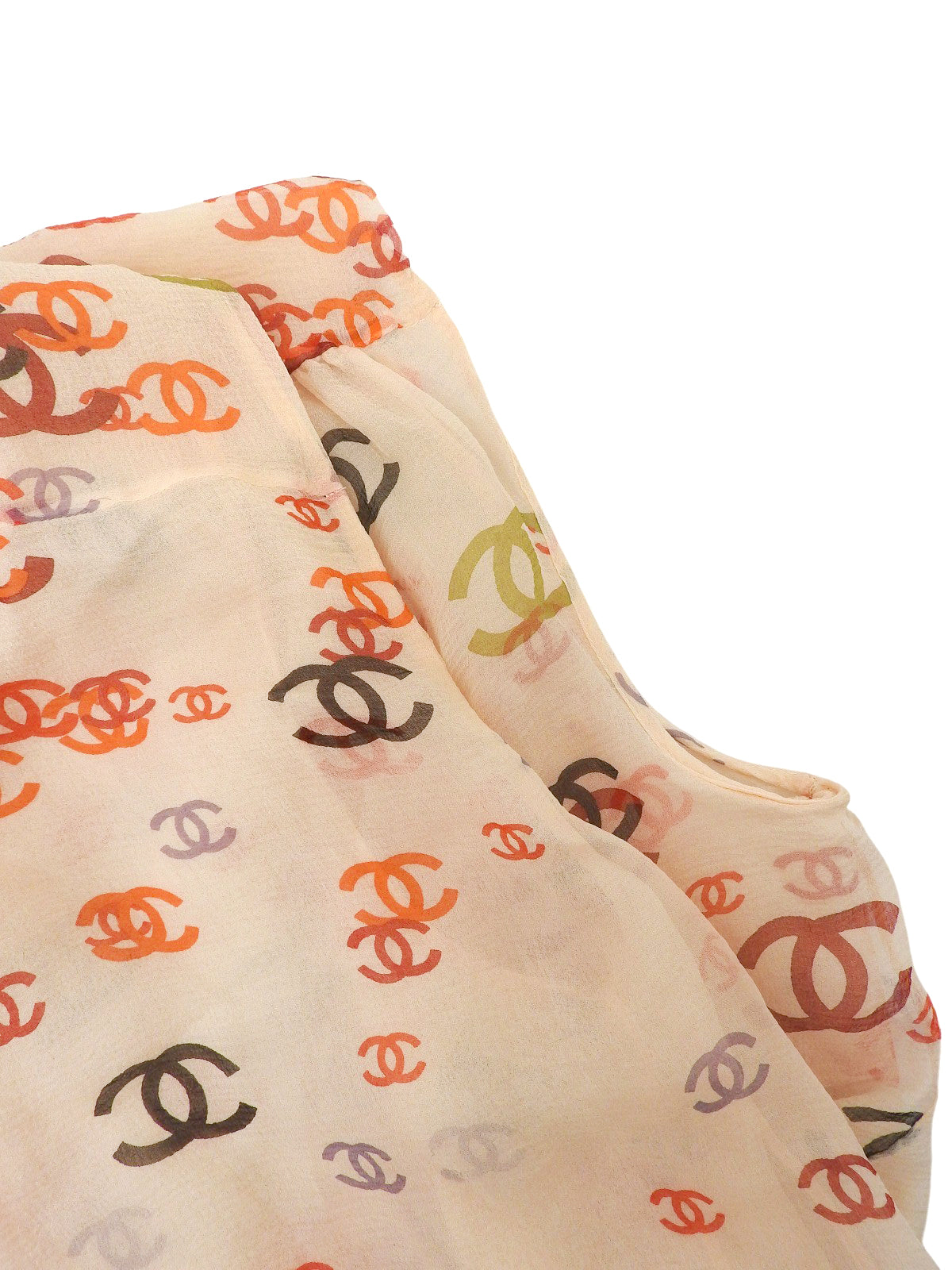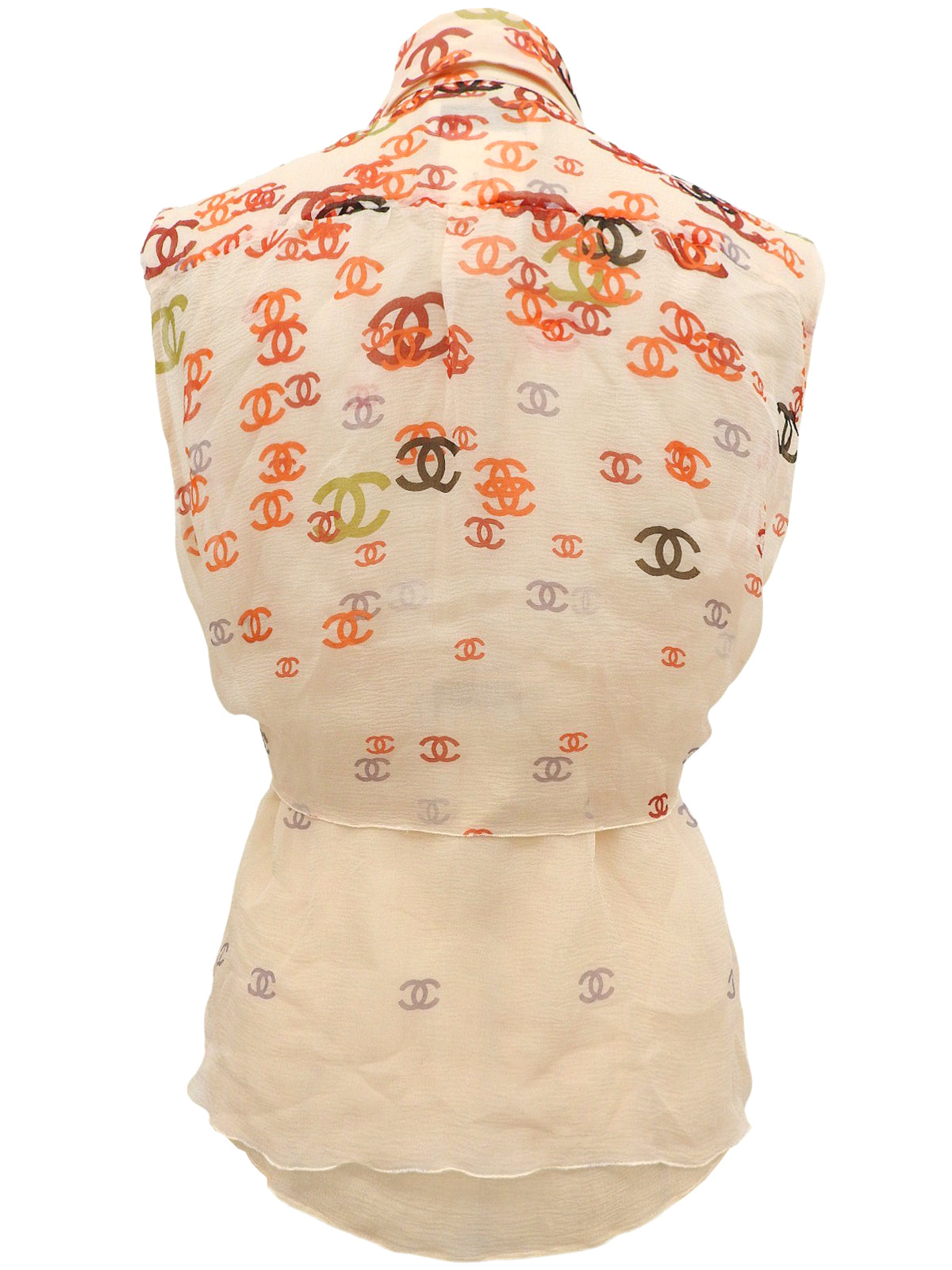 2001年製 シルクCCマークパターンシースルーノースリーブブラウス オレンジ/ベージュ