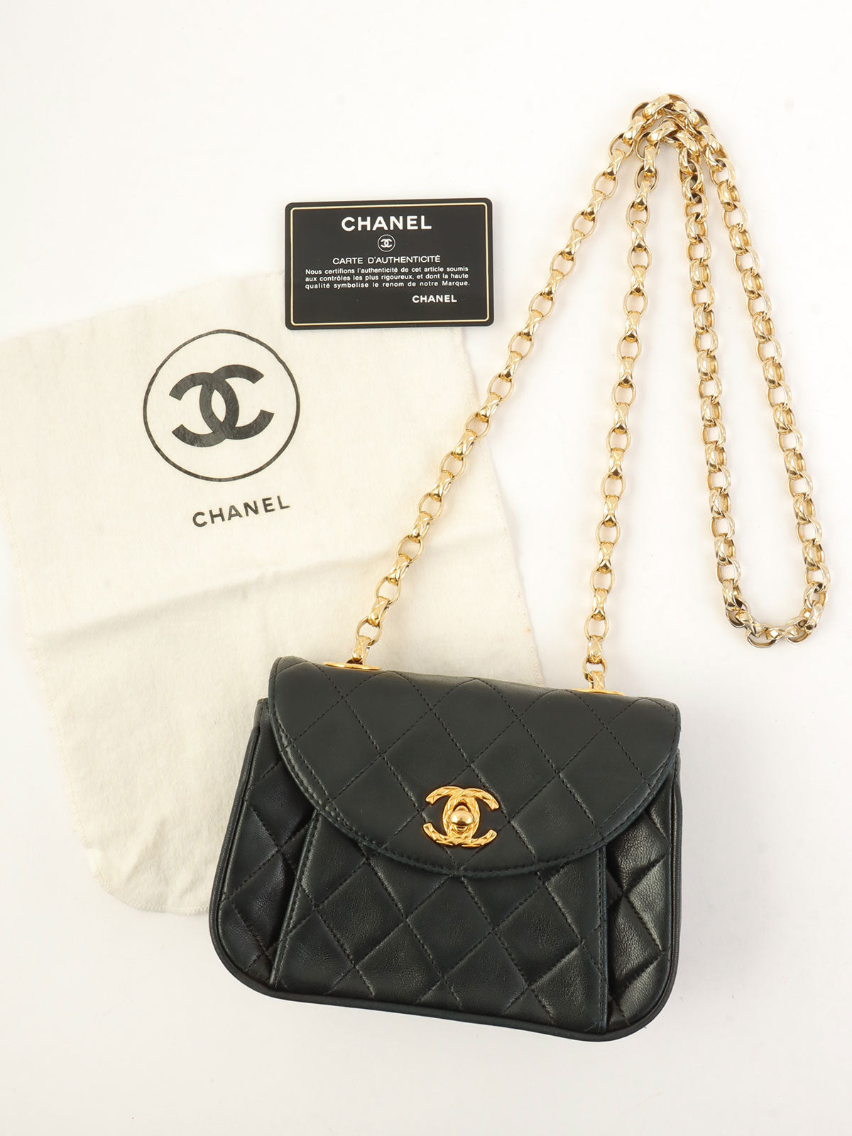 1992年頃製 マトラッセステッチCCターンロックビジューチェーンバッグミニ ブラック