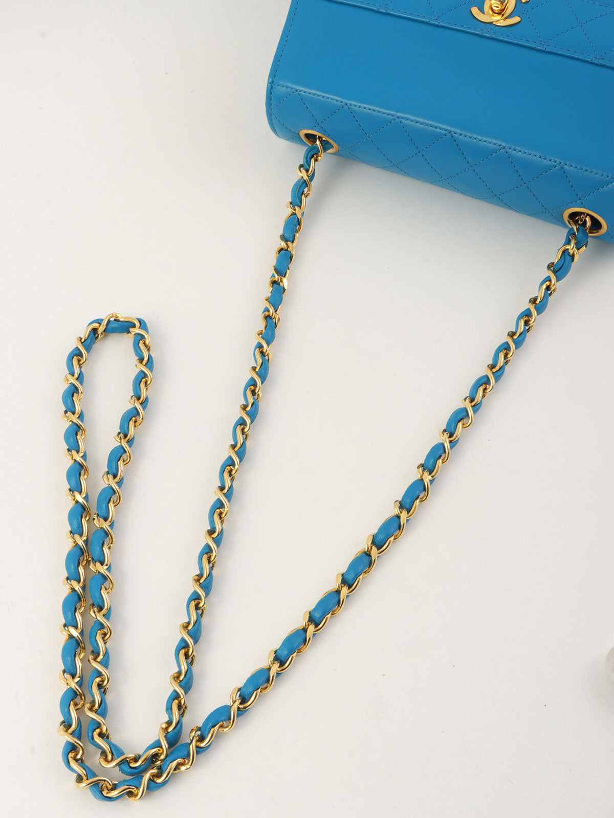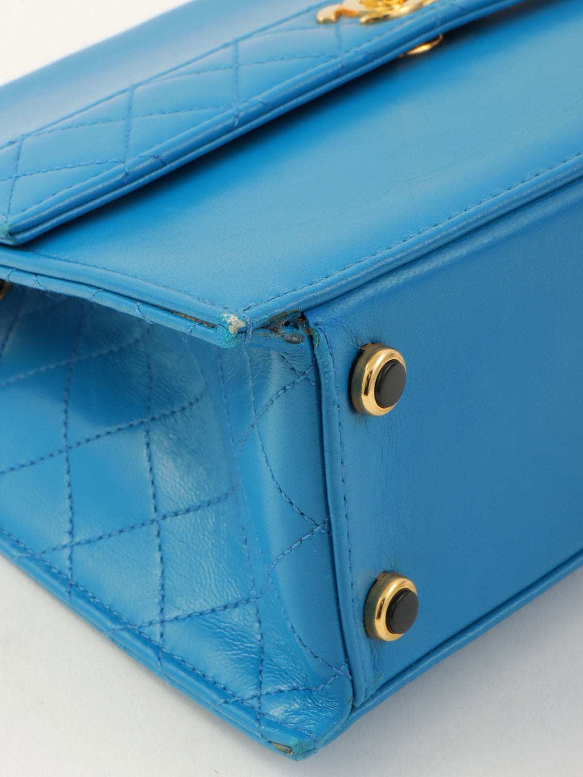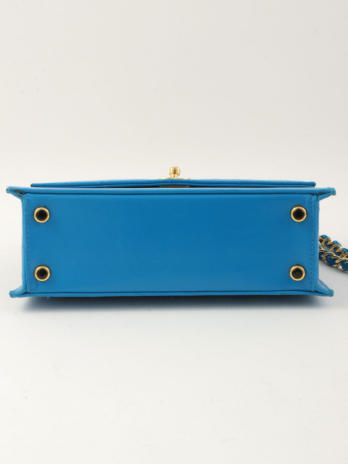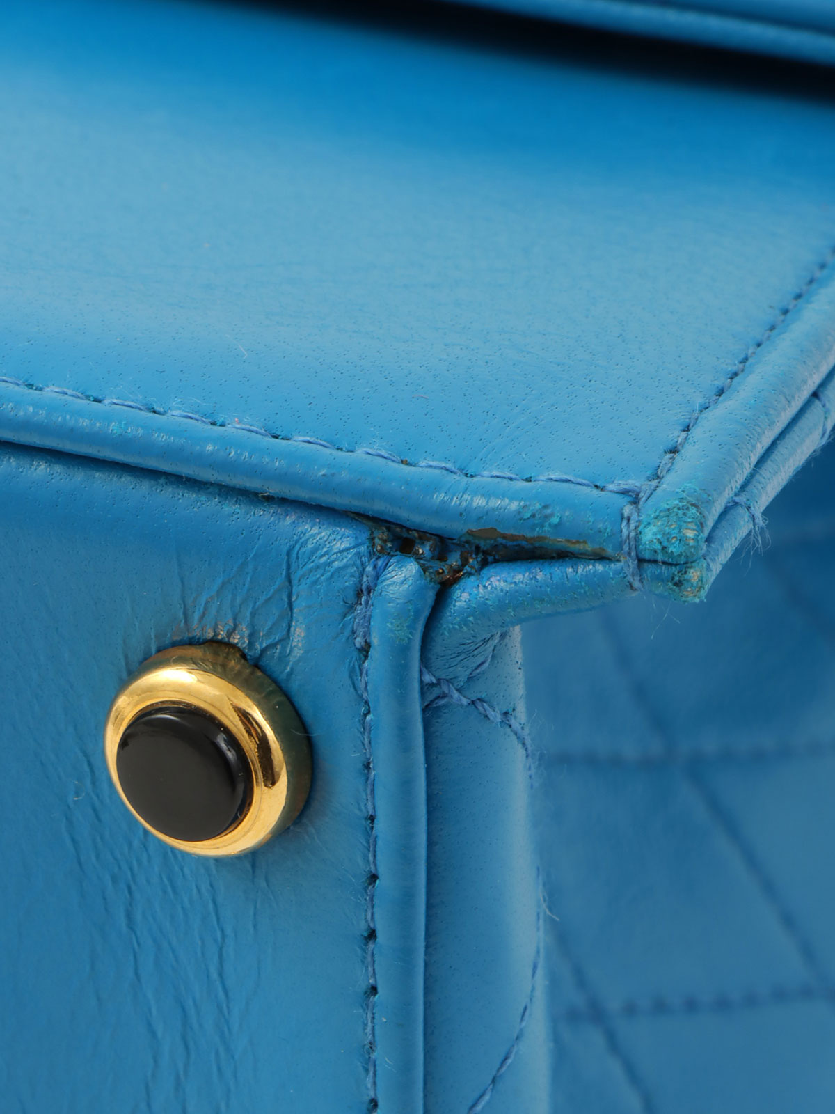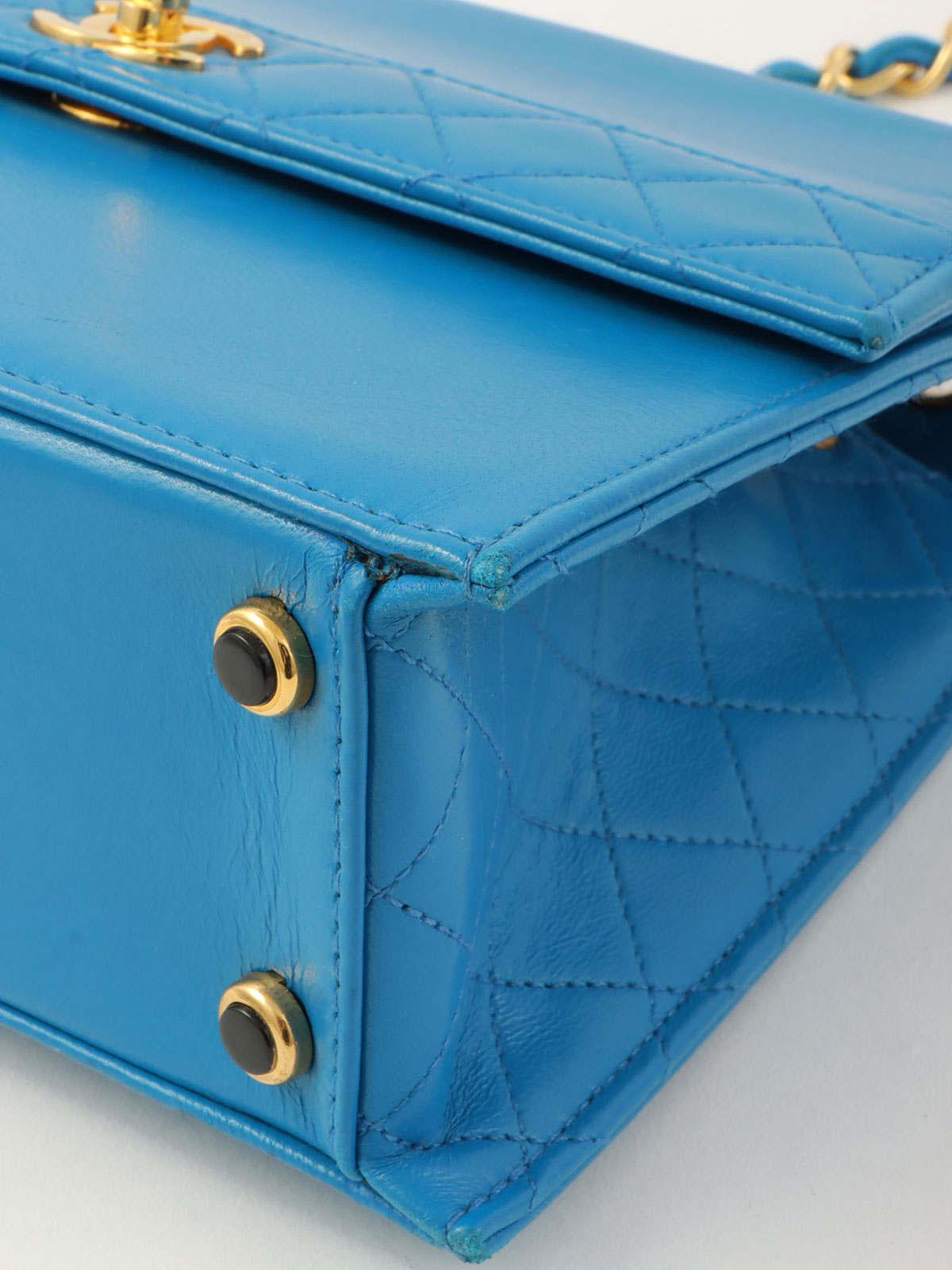 1990年頃製 ラムスキンCCターンロックチェーンバッグ ブルー