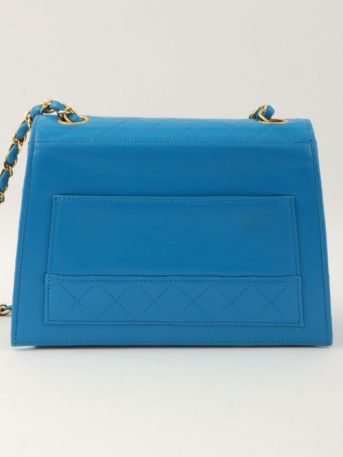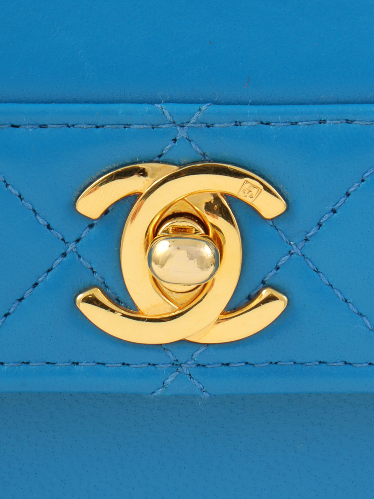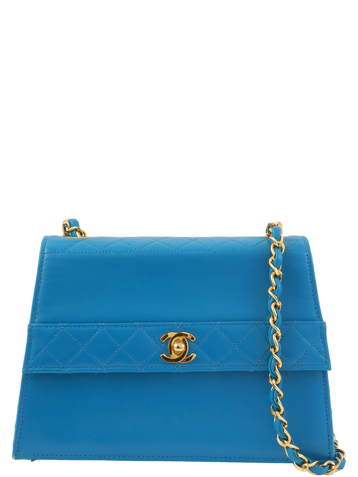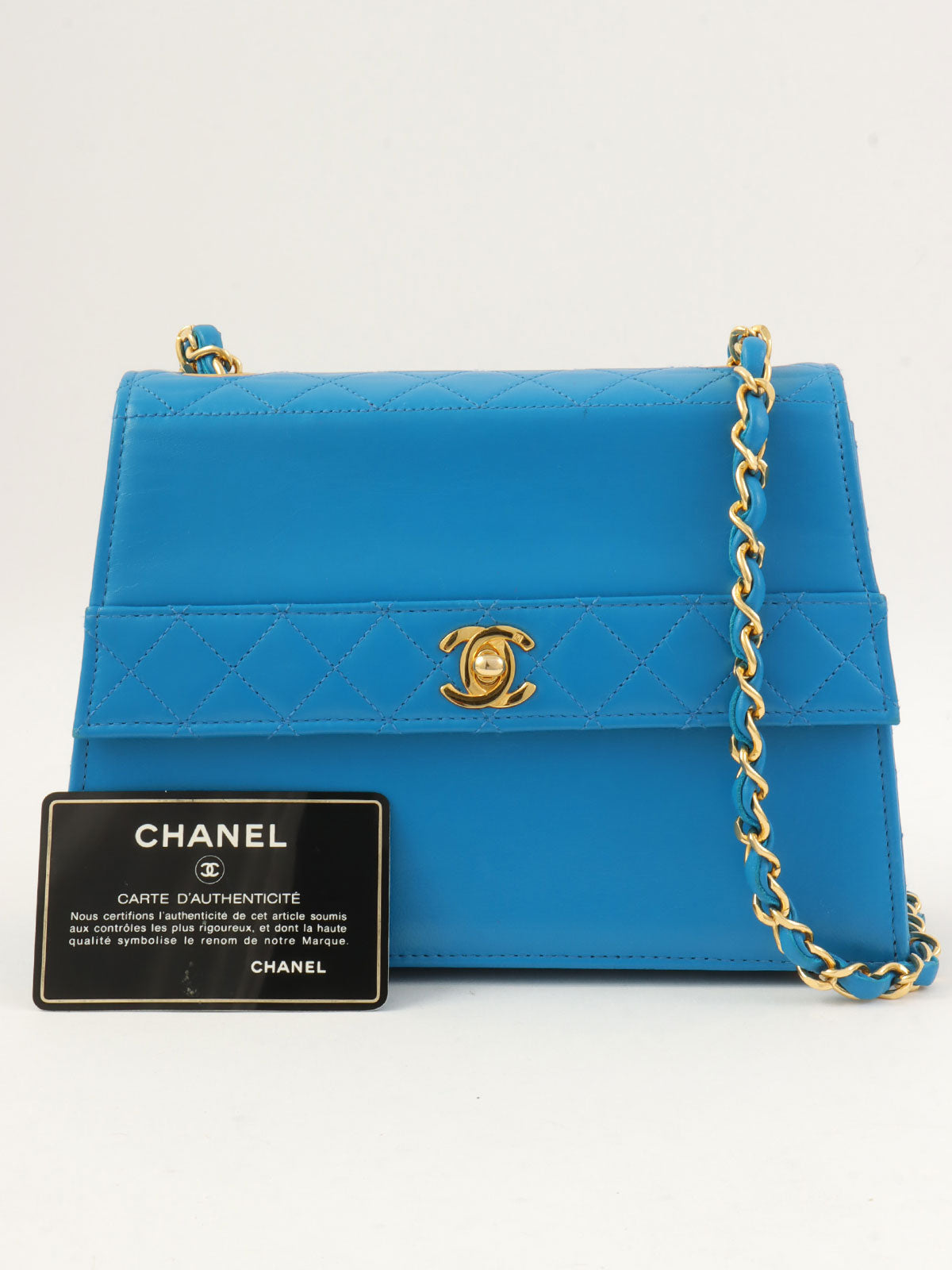 1990年頃製 ラムスキンCCターンロックチェーンバッグ ブルー