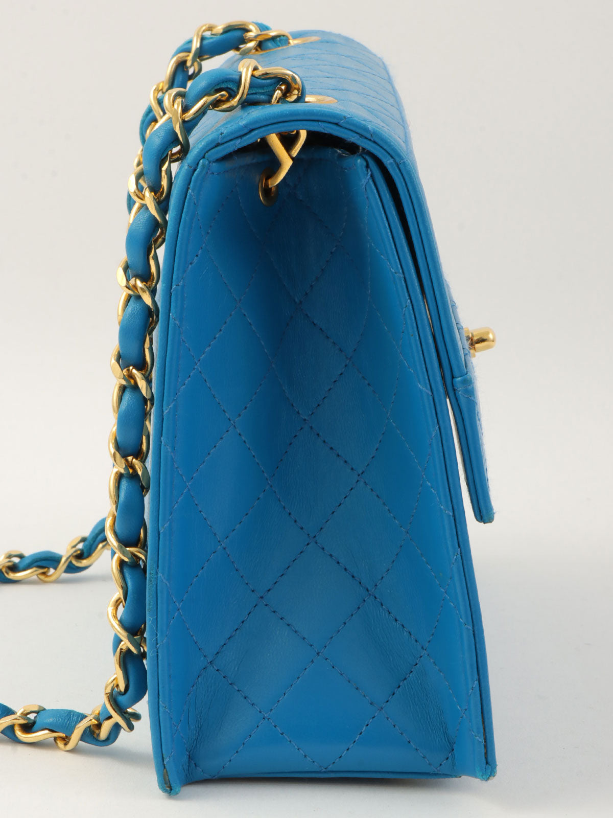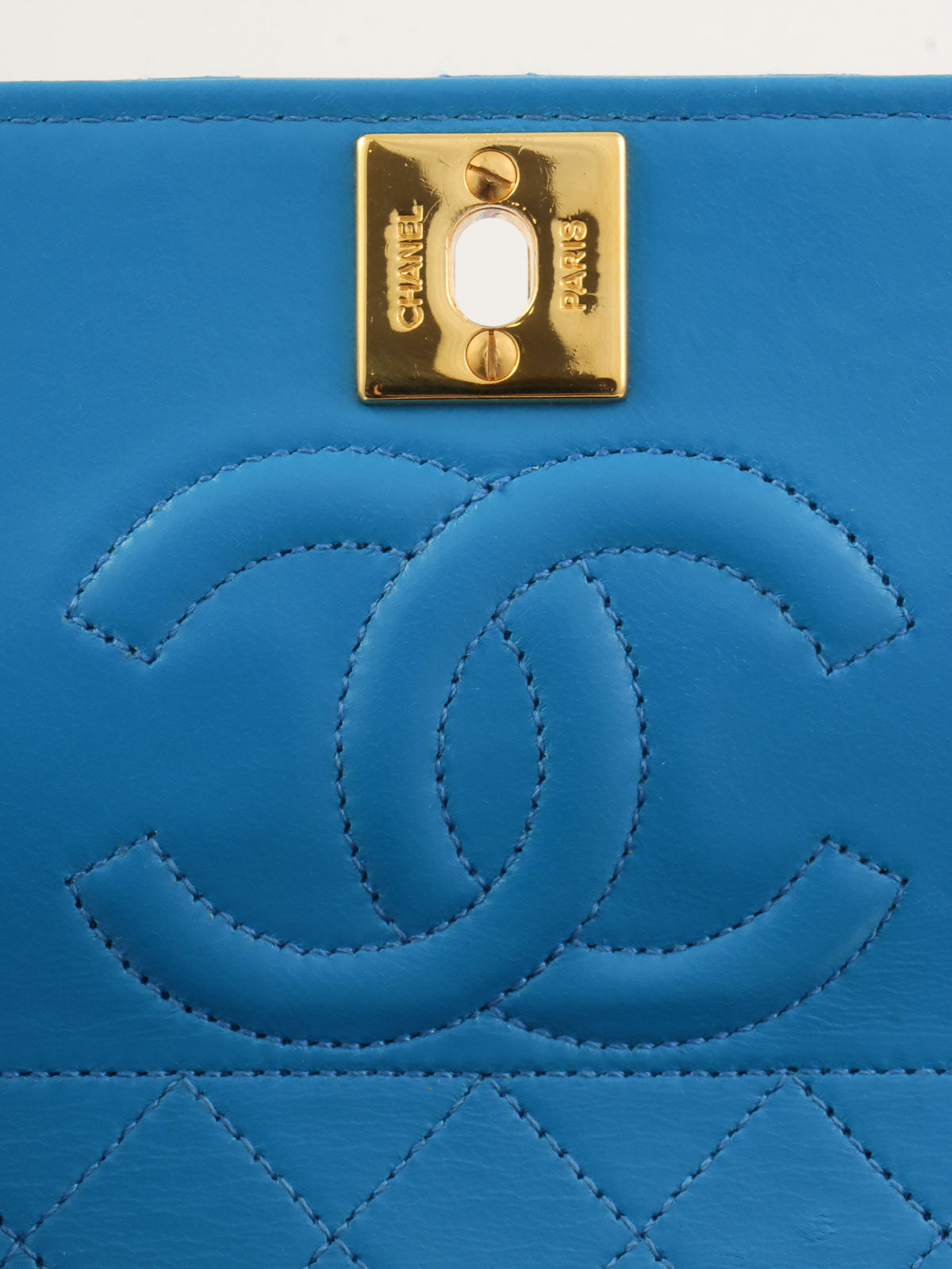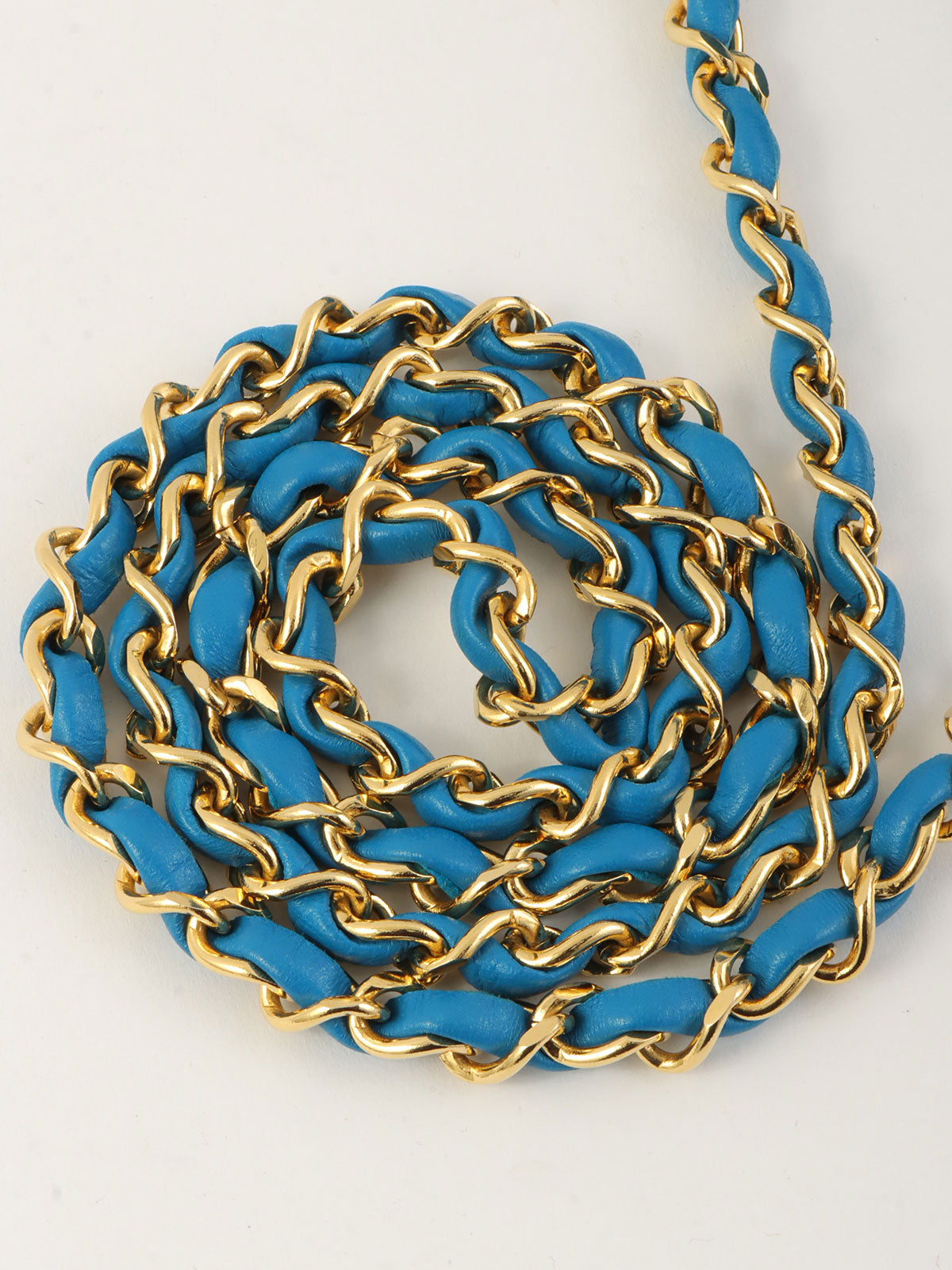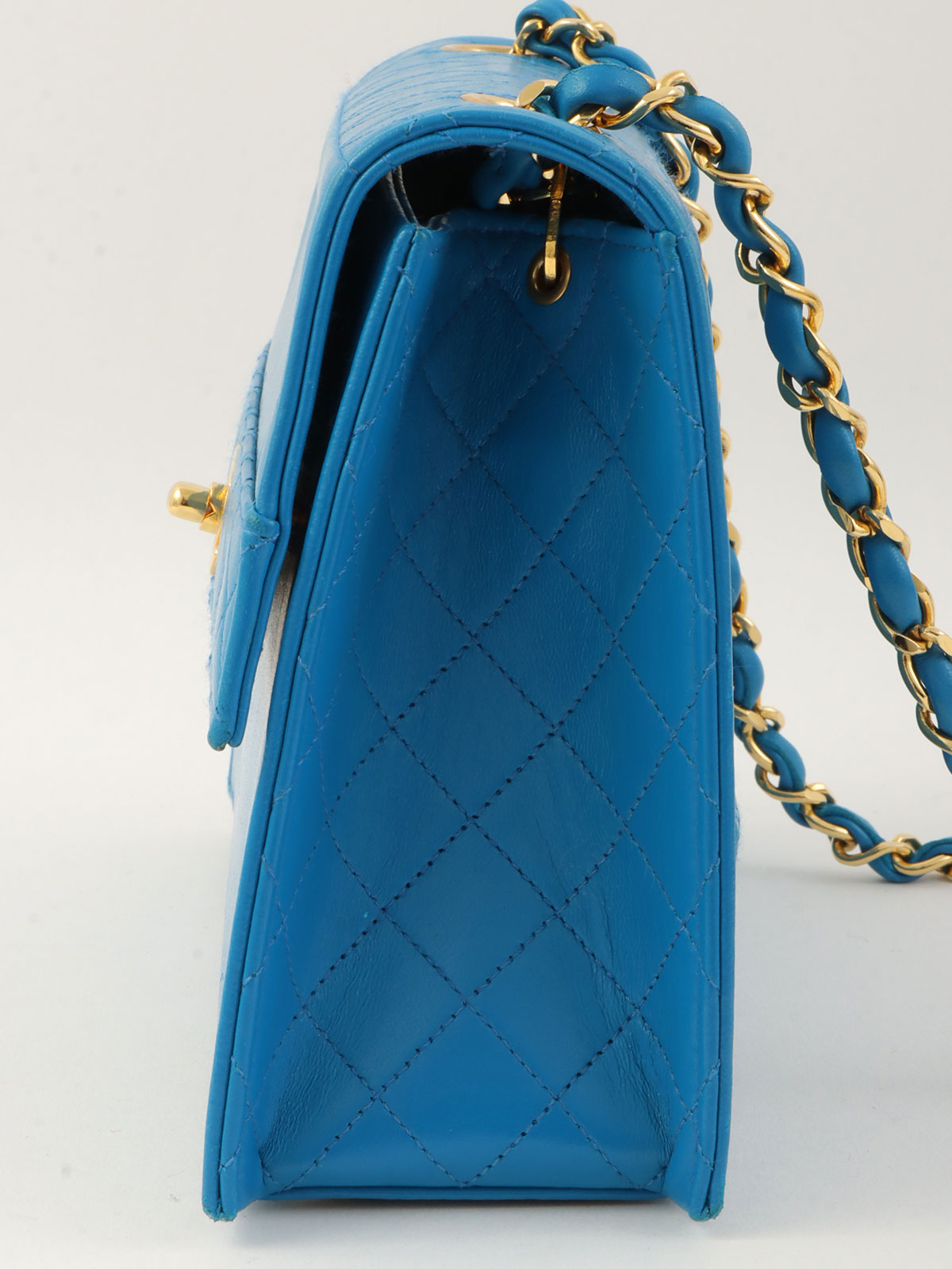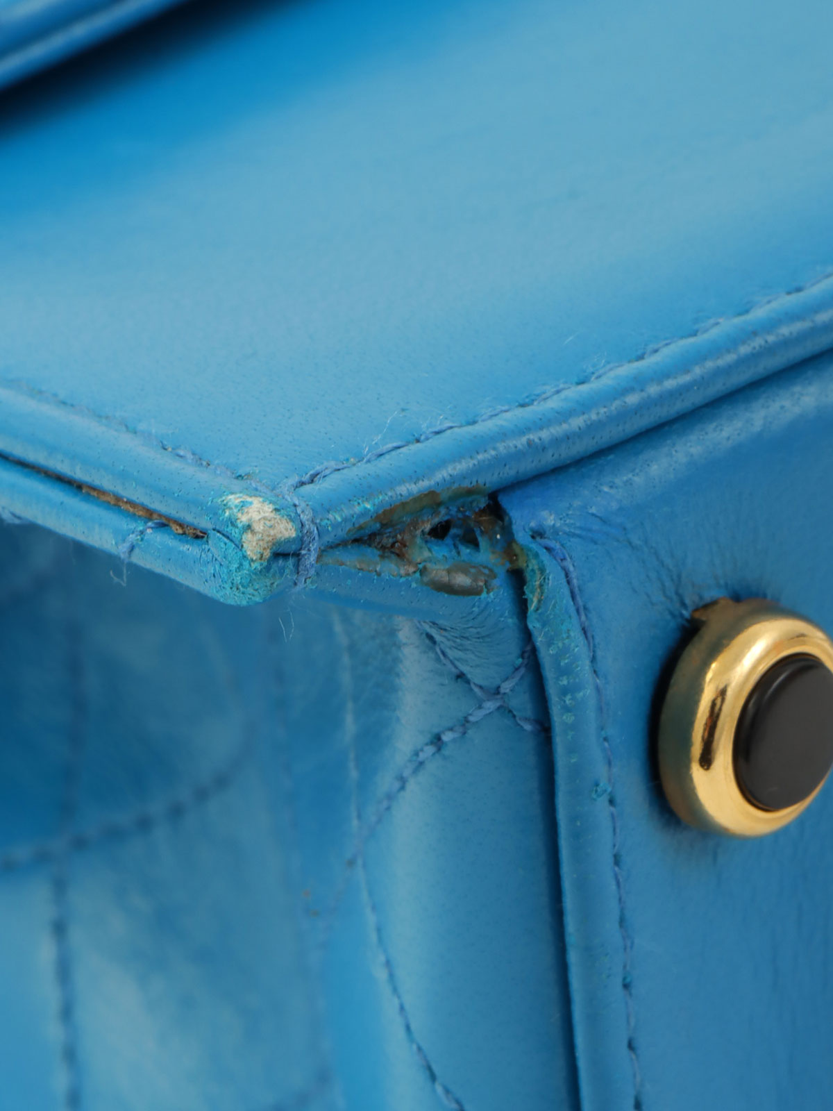 1990年頃製 ラムスキンCCターンロックチェーンバッグ ブルー