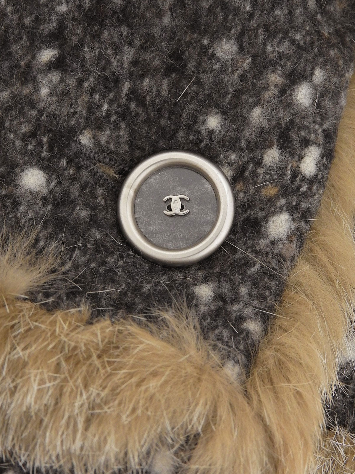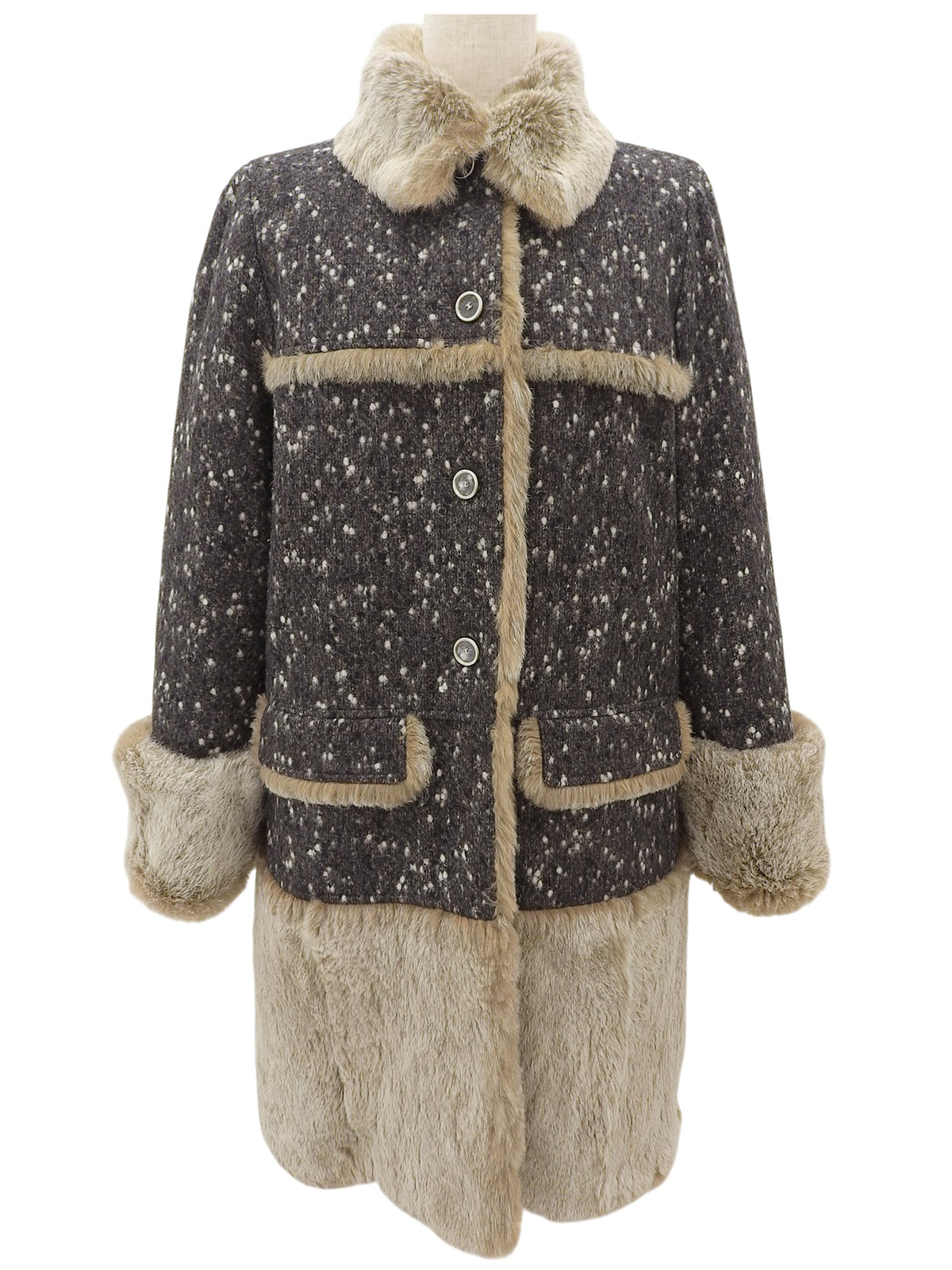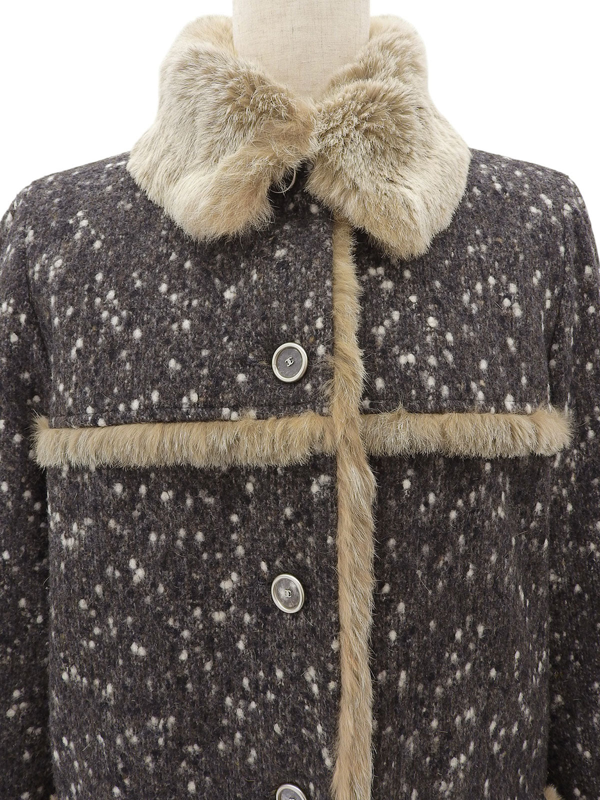 2001年製 ウールラパンファーCCマークボタンコート #36 グレー/ベージュ