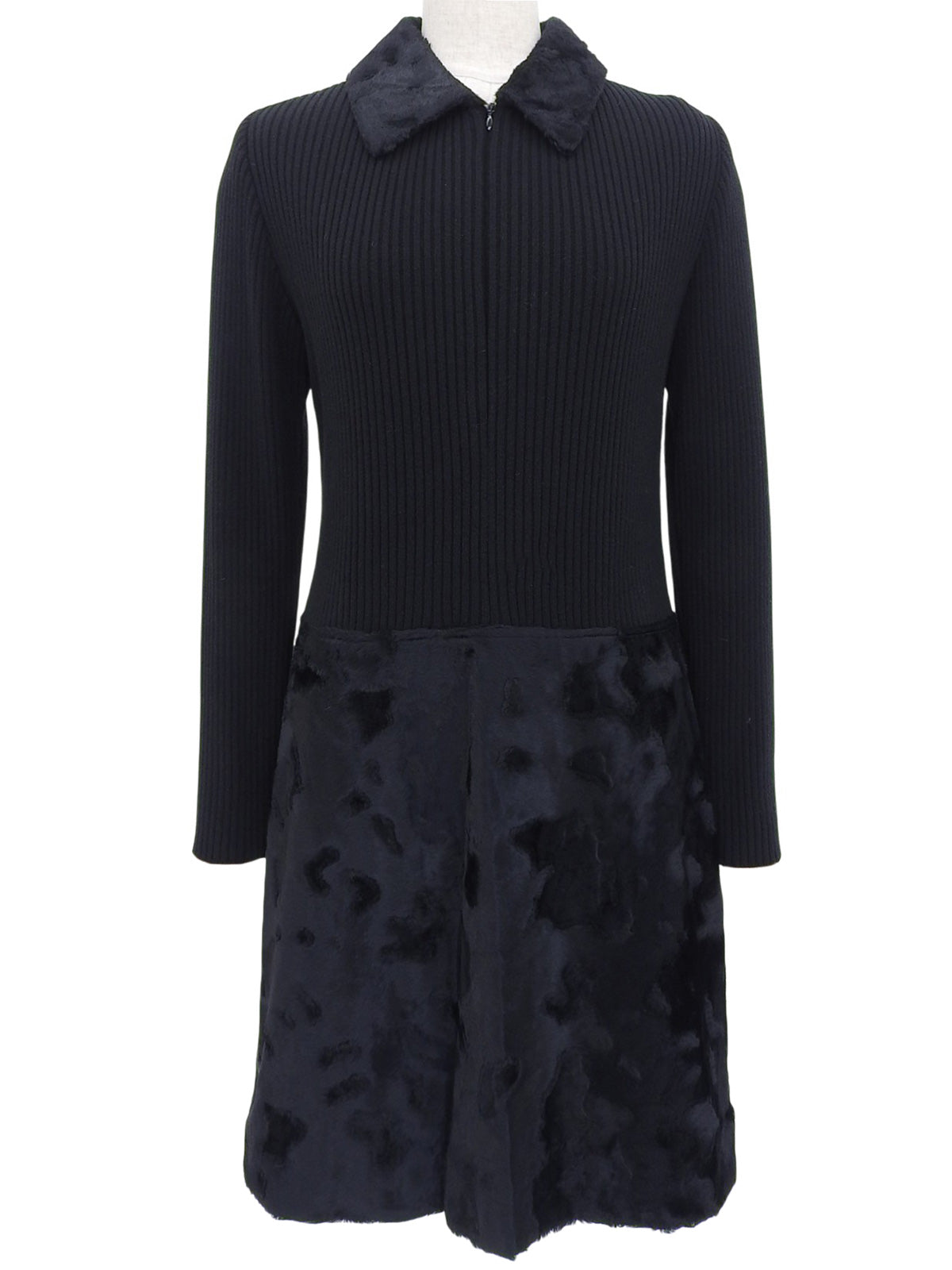 ニットファーコンビワンピース ブラック