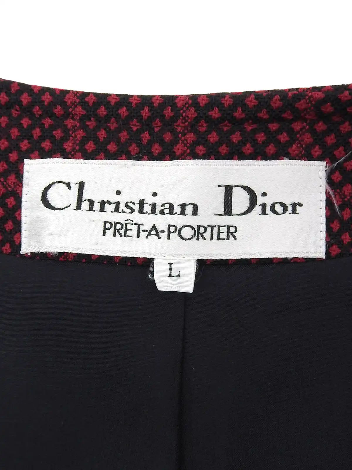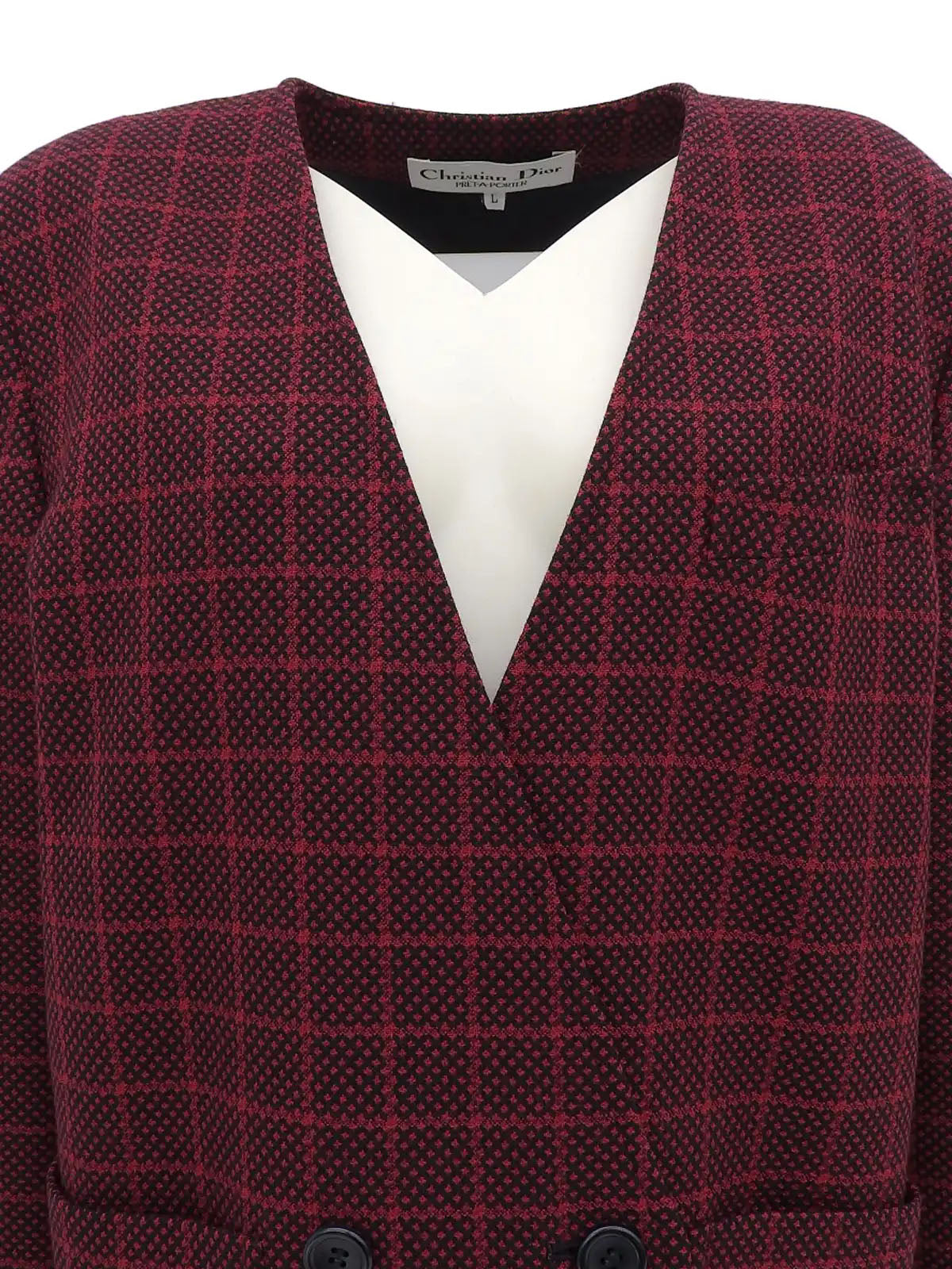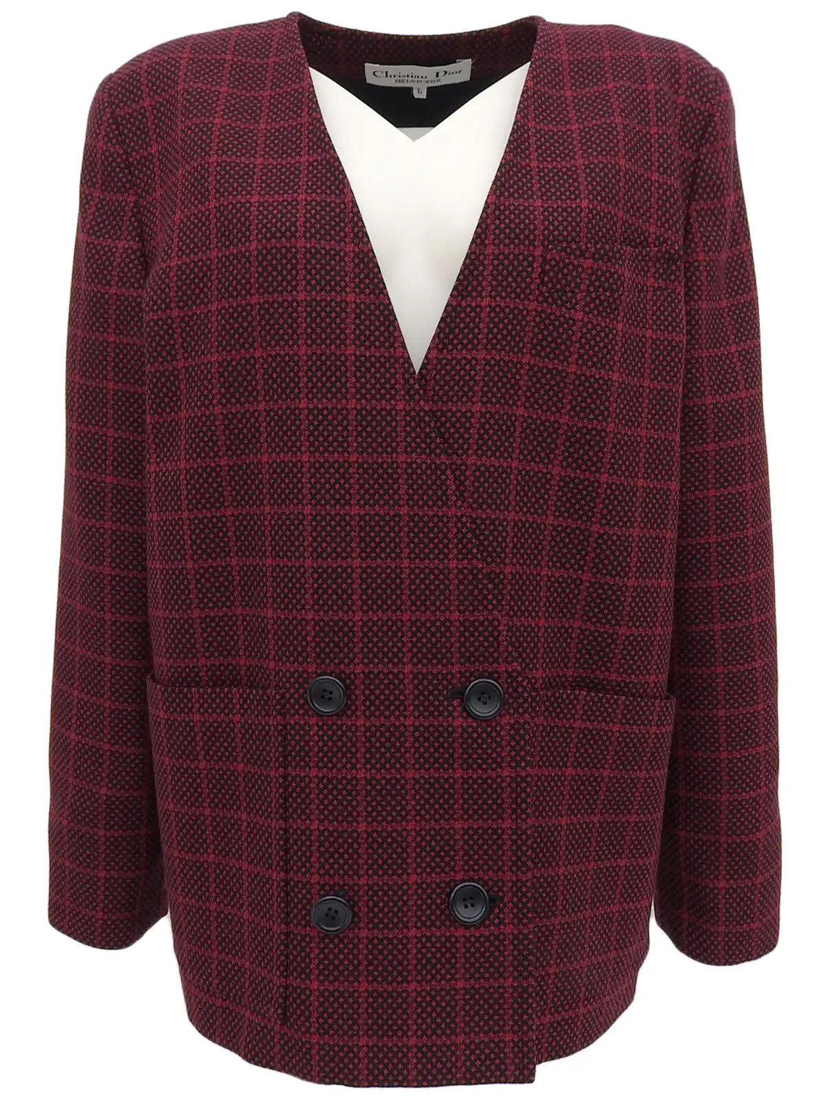 チェックパターンノーカラージャケット レッド/ブラック