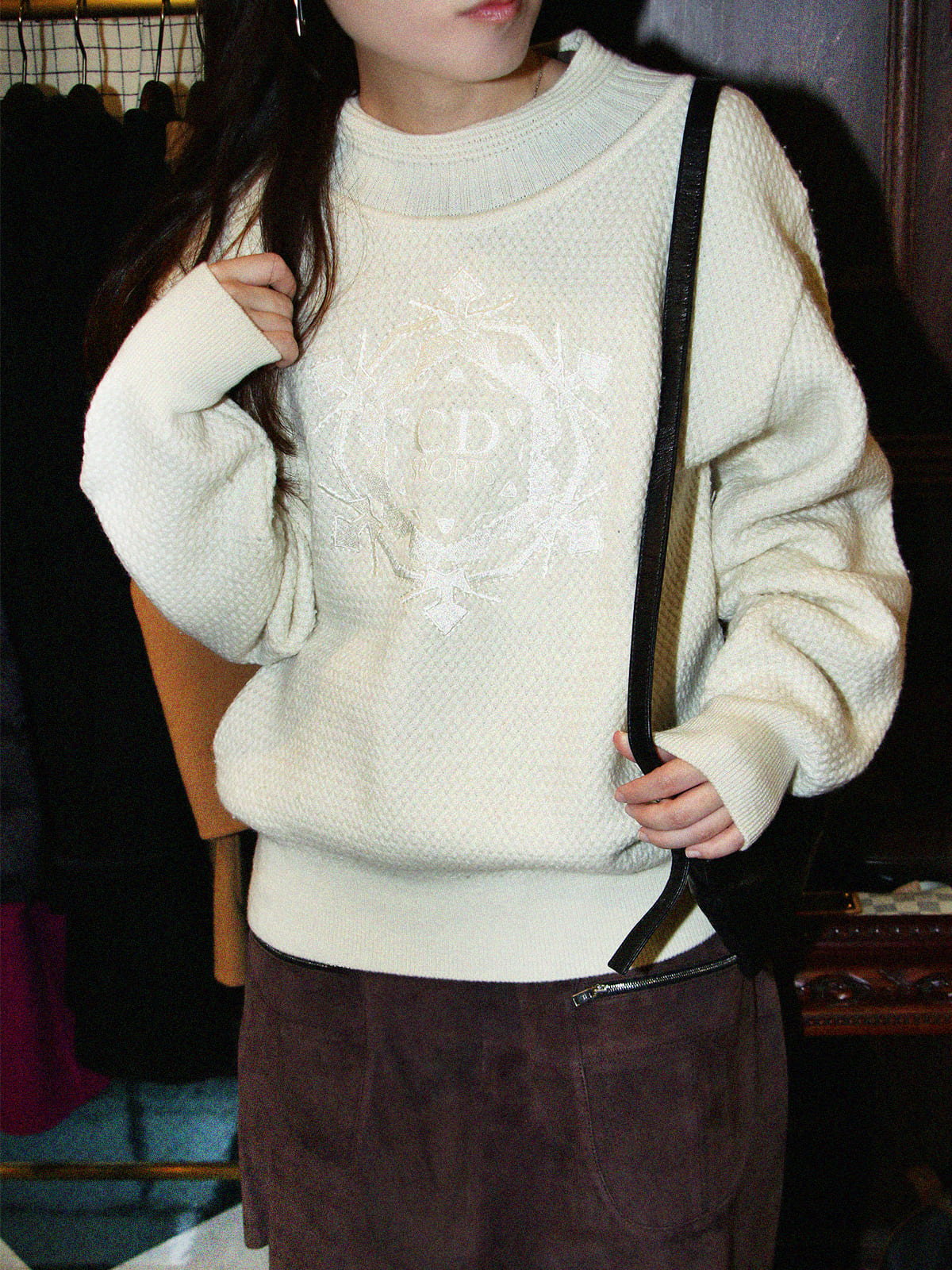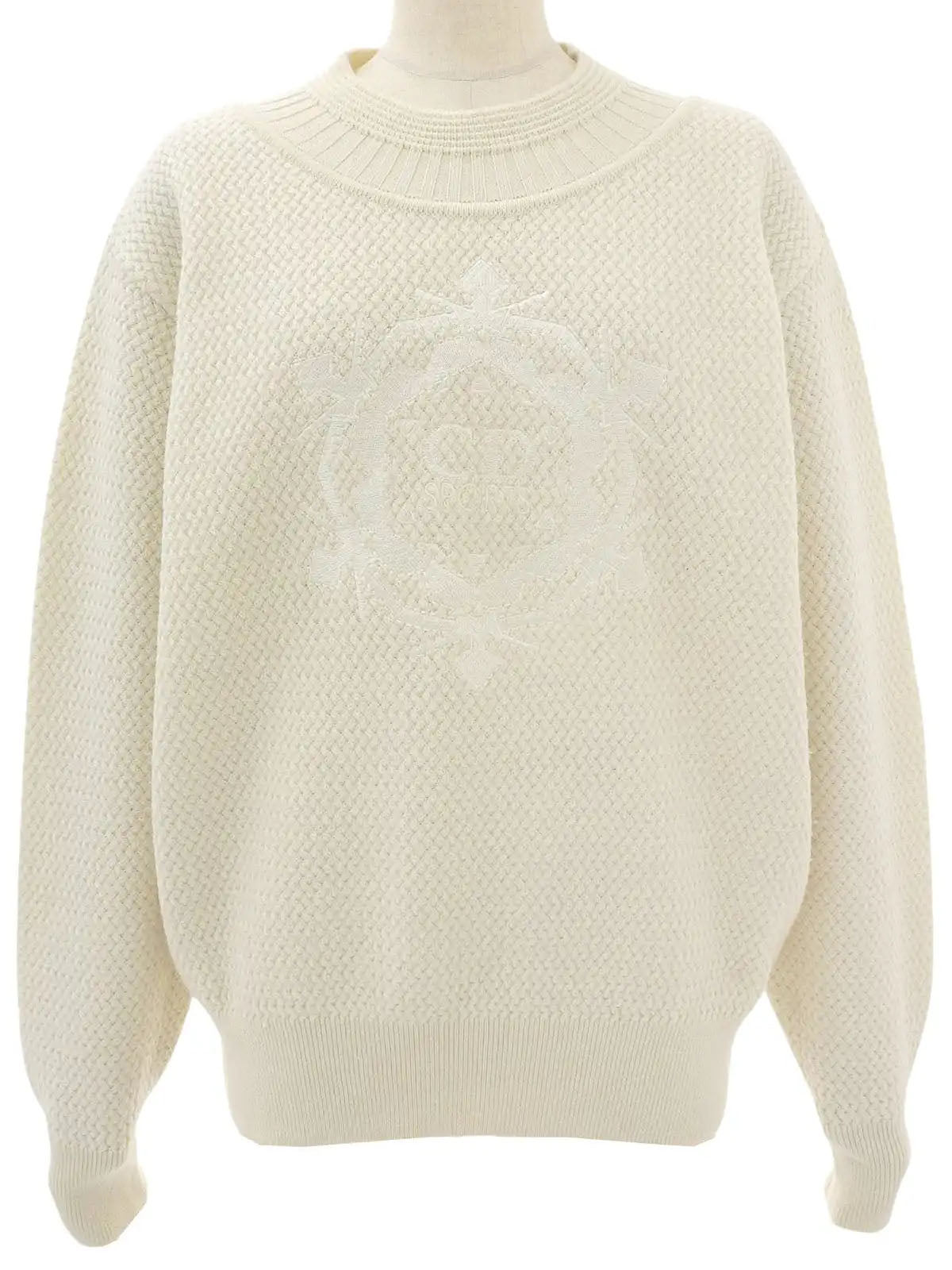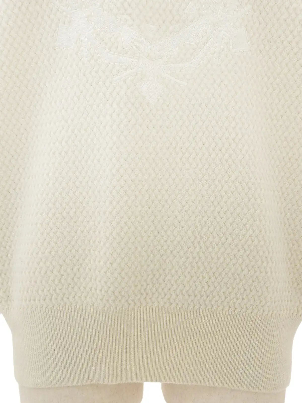 ロゴ刺繍ロングスリーブニットセーター アイボリー