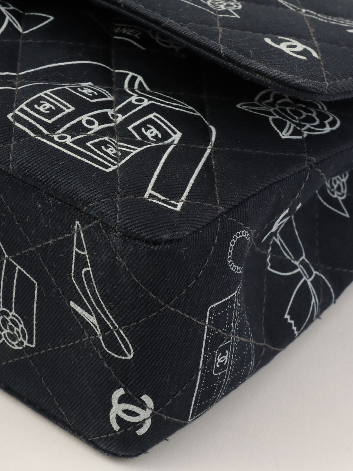2001年製 キャンバスアイコンパターンクラシックフラップチェーンバッグ25cm ブラック