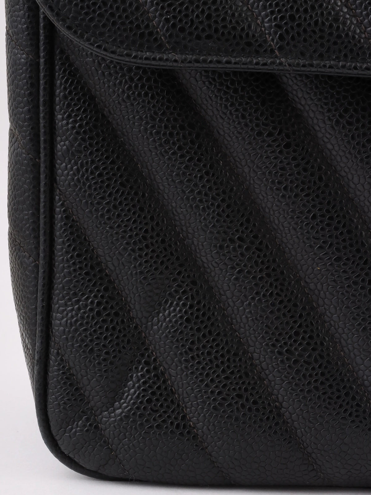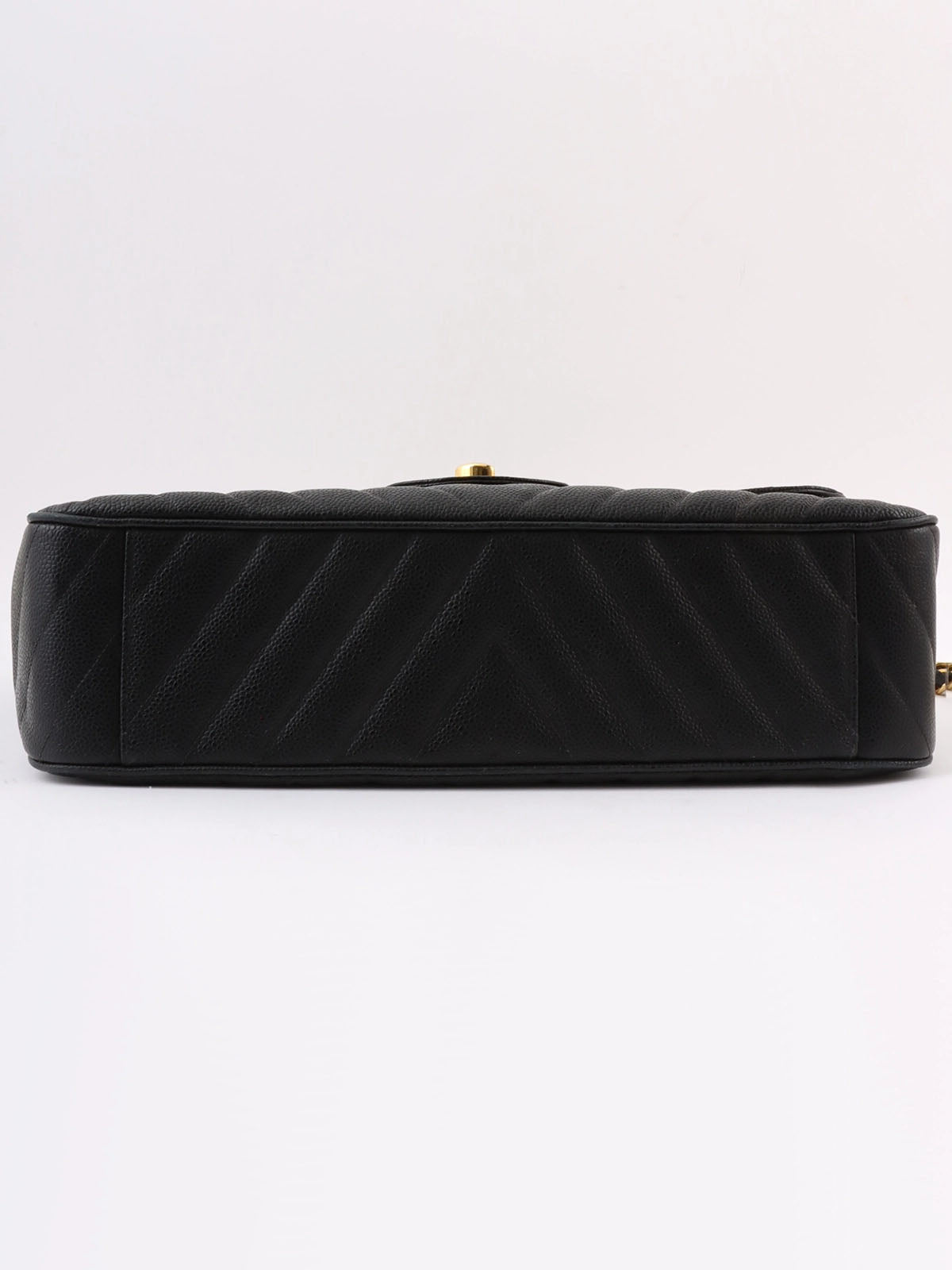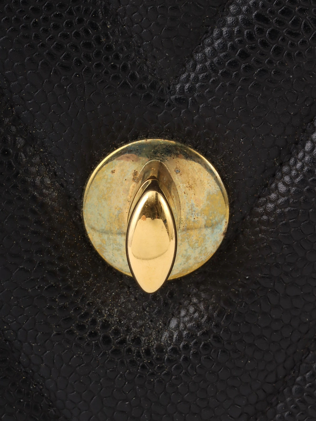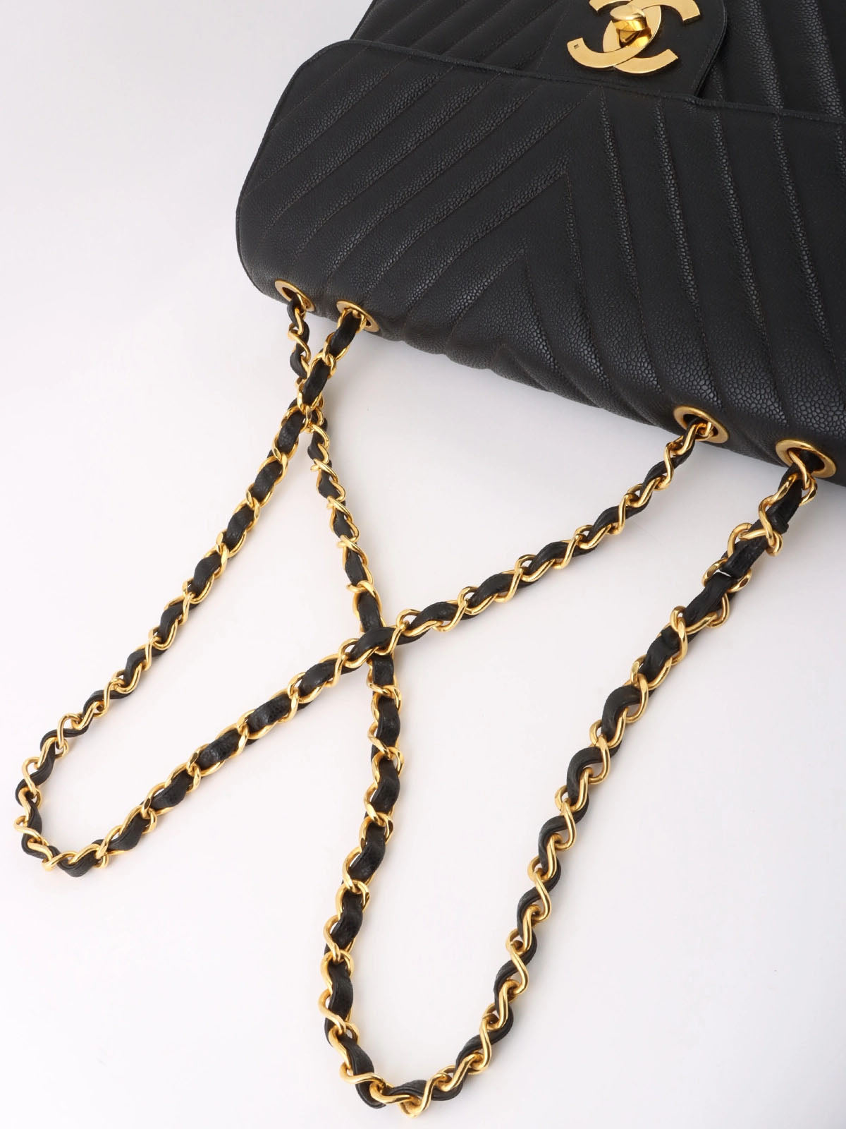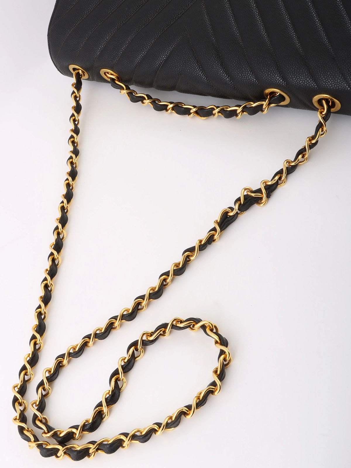 1992年頃製 キャビアスキンシェブロンCCターンロックチェーンバッグマキシ ブラック