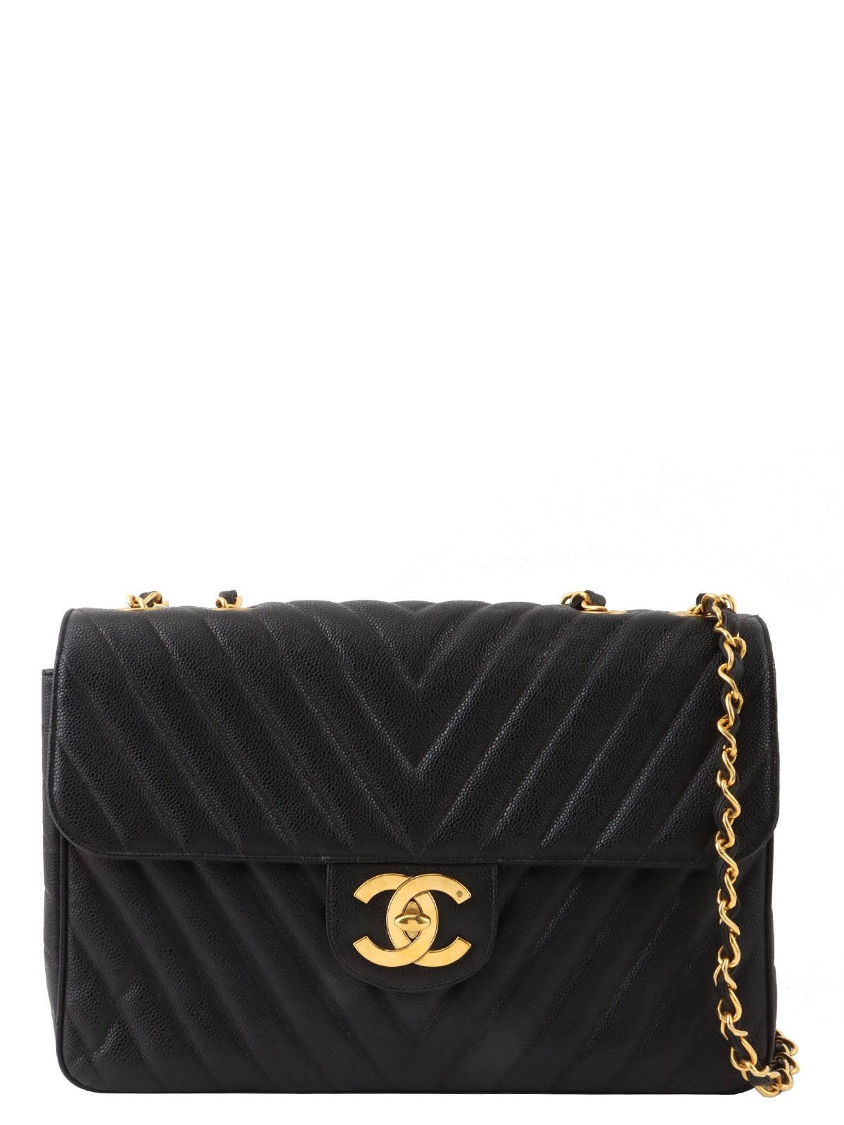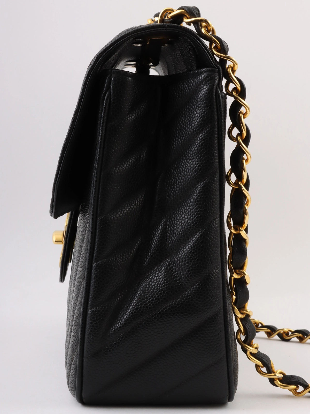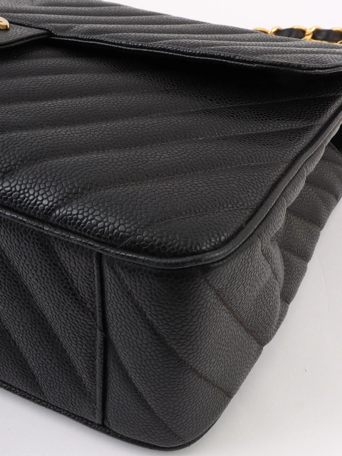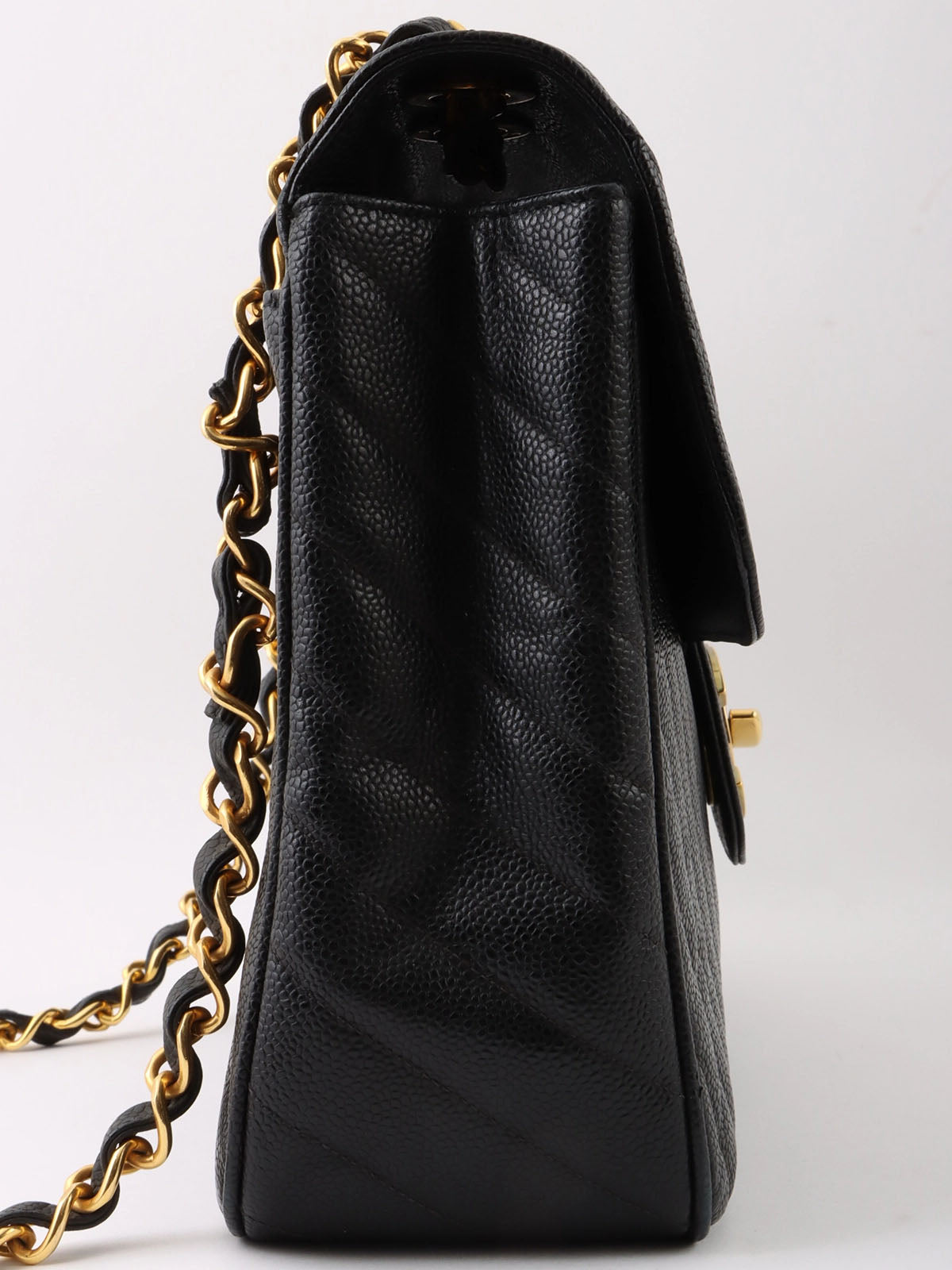 1992年頃製 キャビアスキンシェブロンCCターンロックチェーンバッグマキシ ブラック