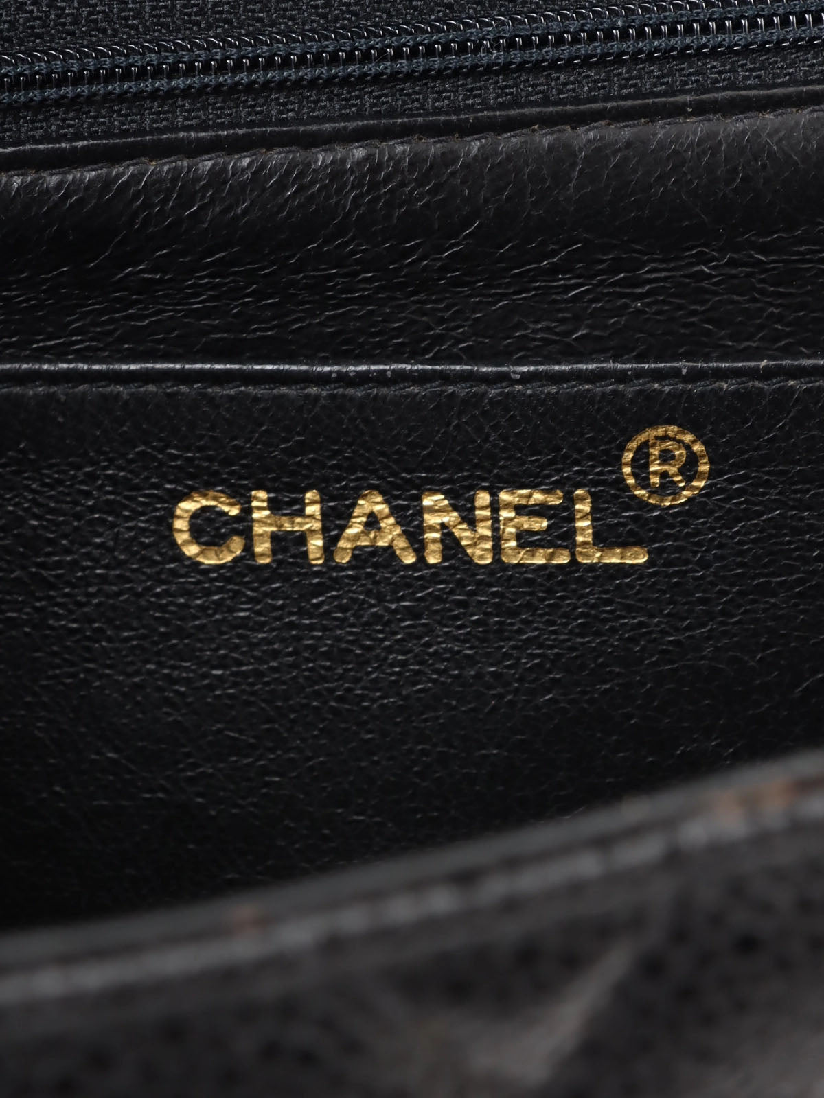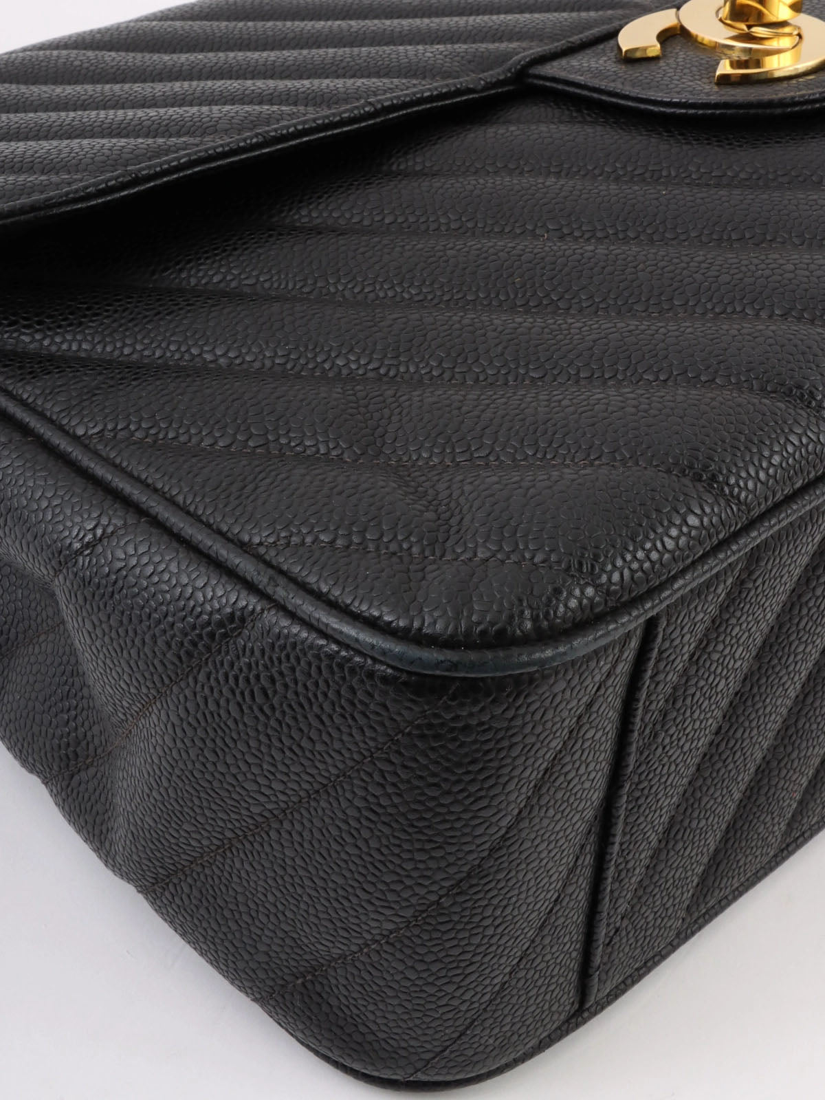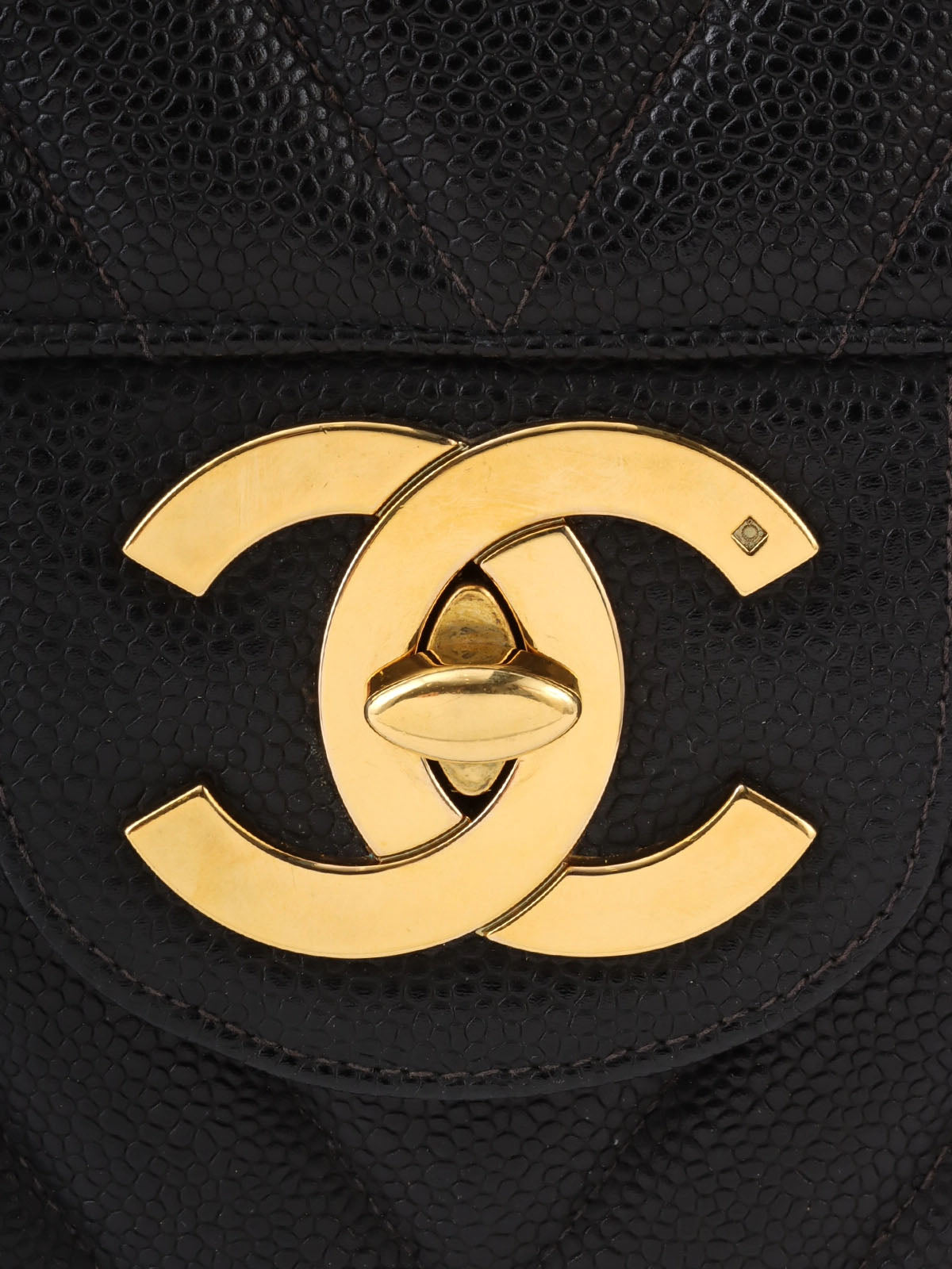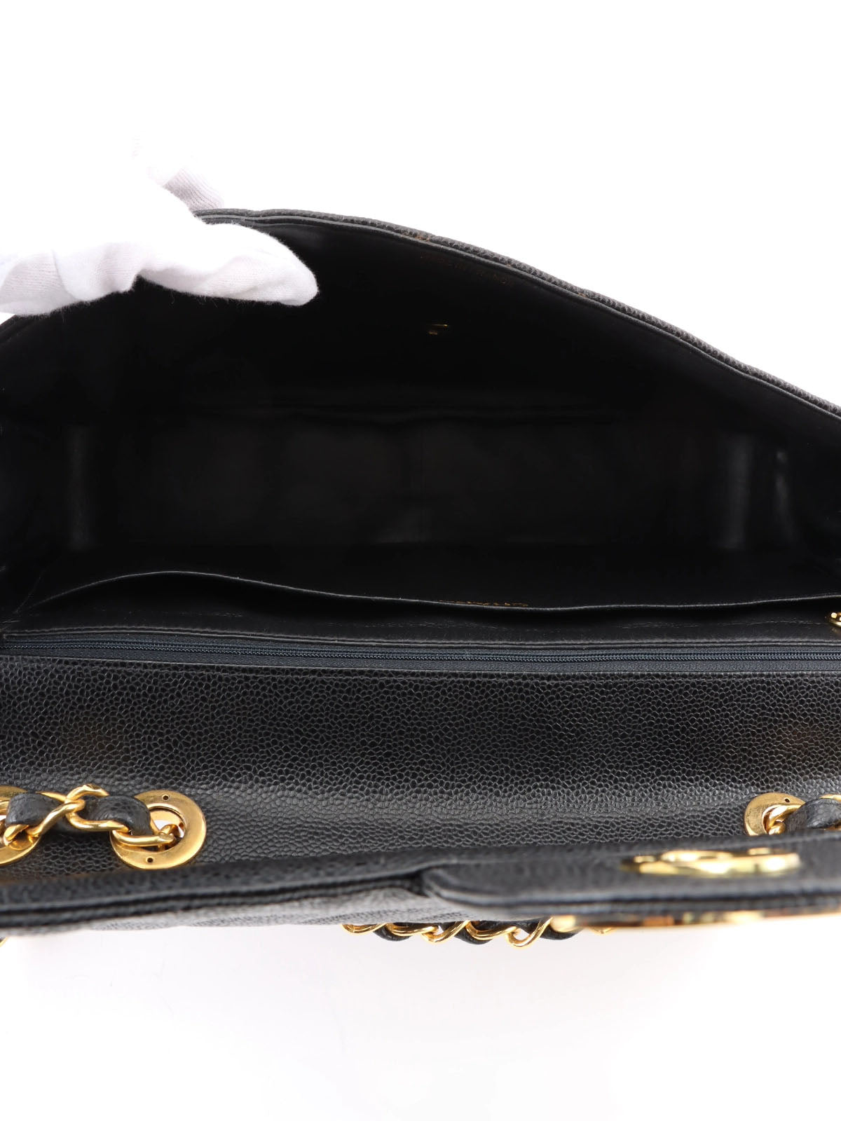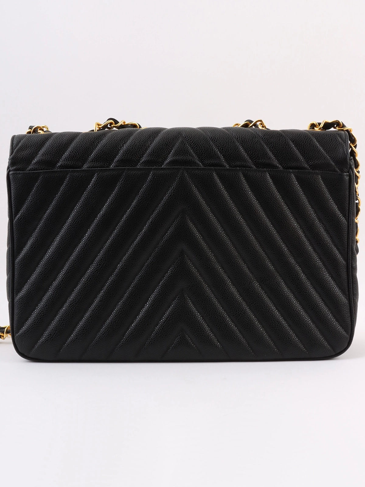 1992年頃製 キャビアスキンシェブロンCCターンロックチェーンバッグマキシ ブラック