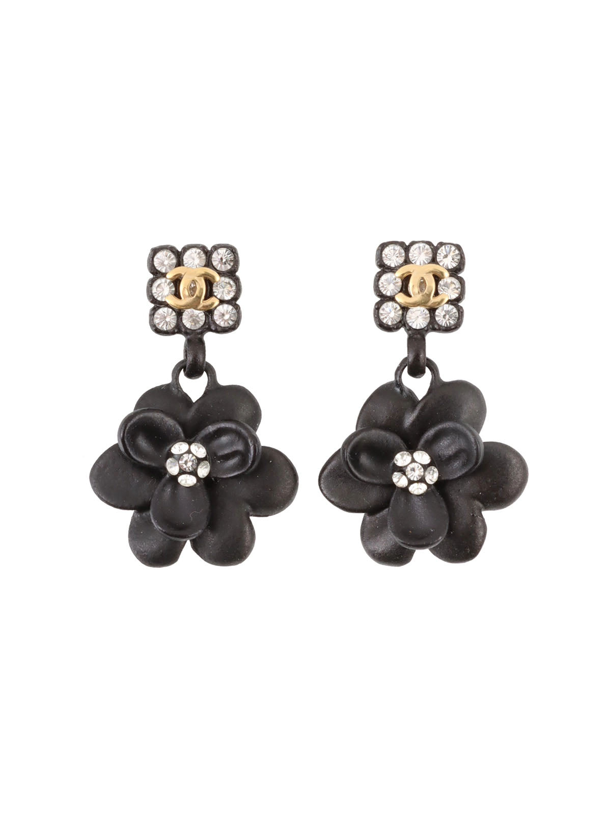 2002年製 ラインストーンCCマークカメリアスウィングイヤリング ブラック/ゴールド