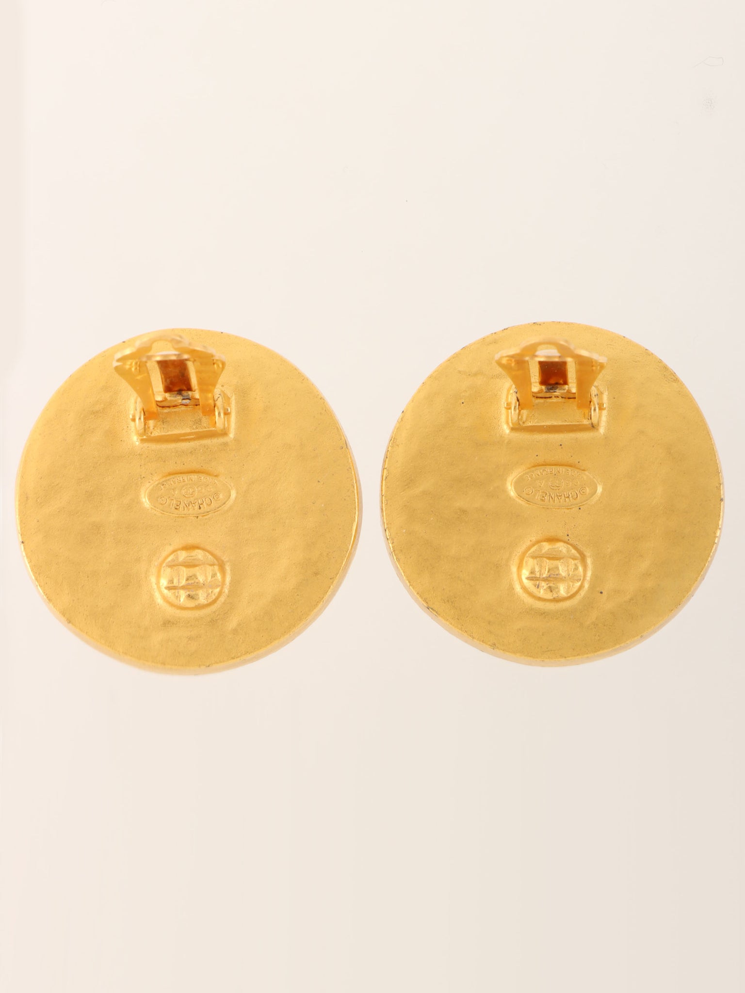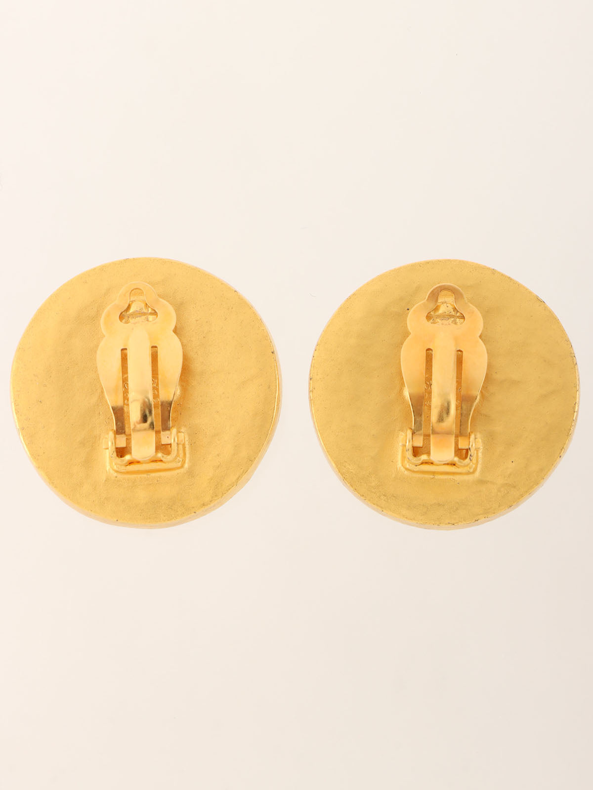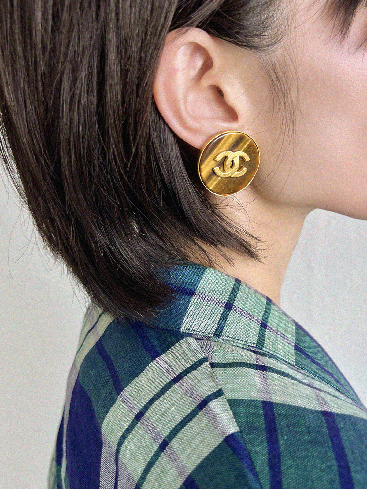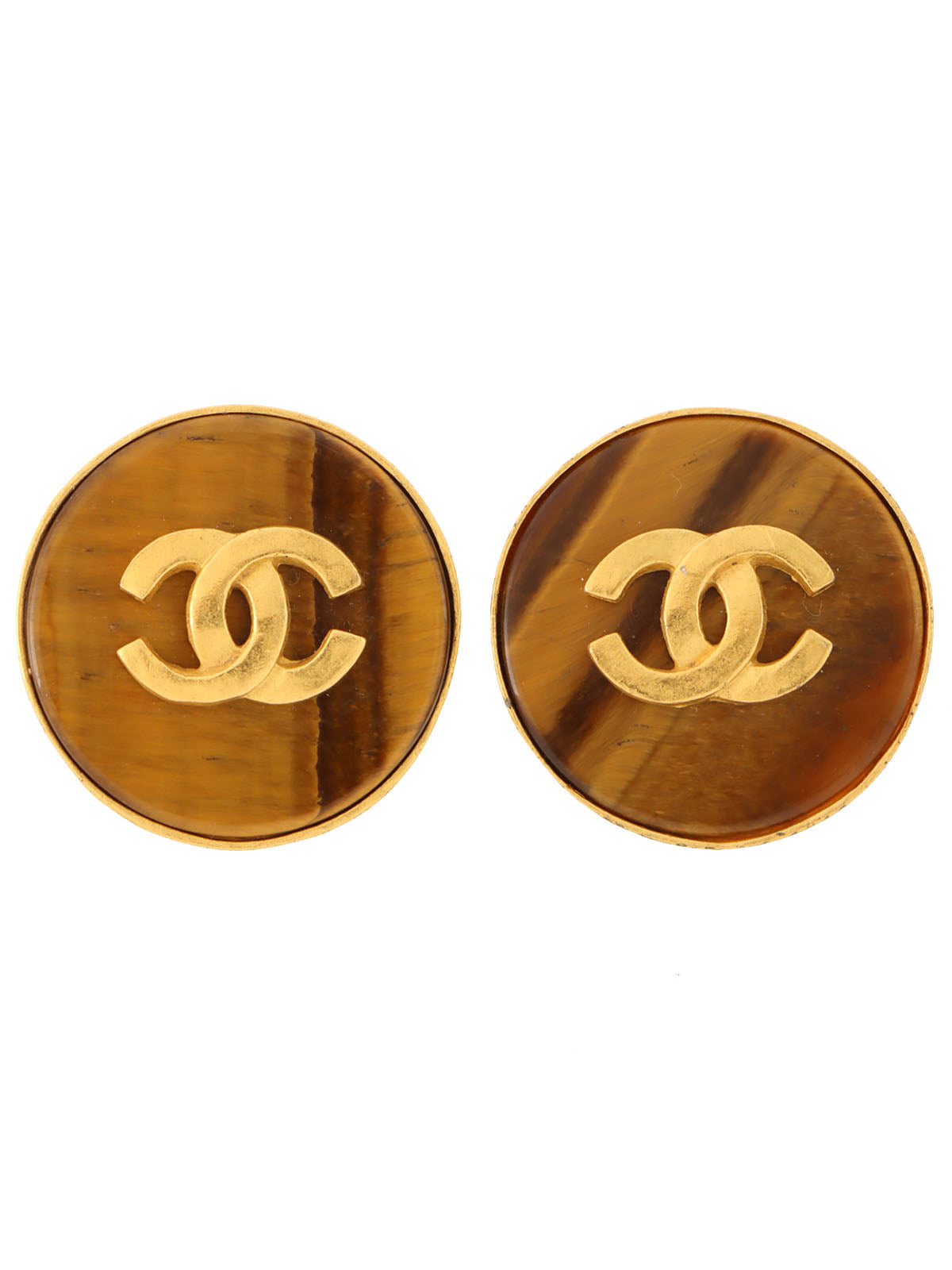 1995年製 タイガーアイラウンドCCマークイヤリング ゴールド/ブラウン