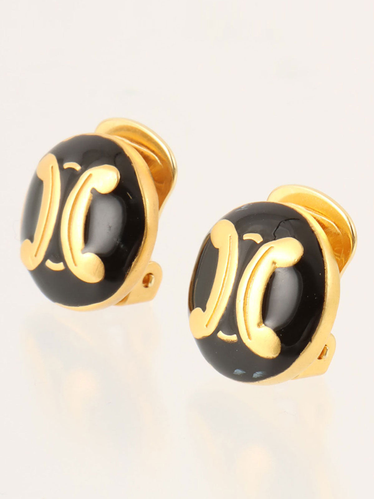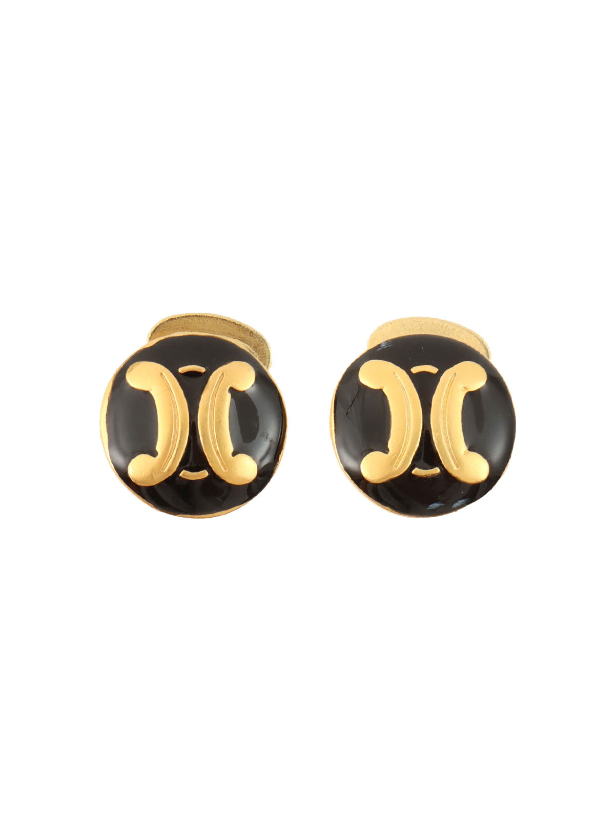 ラウンドマカダムイヤリング ブラック/ゴールド